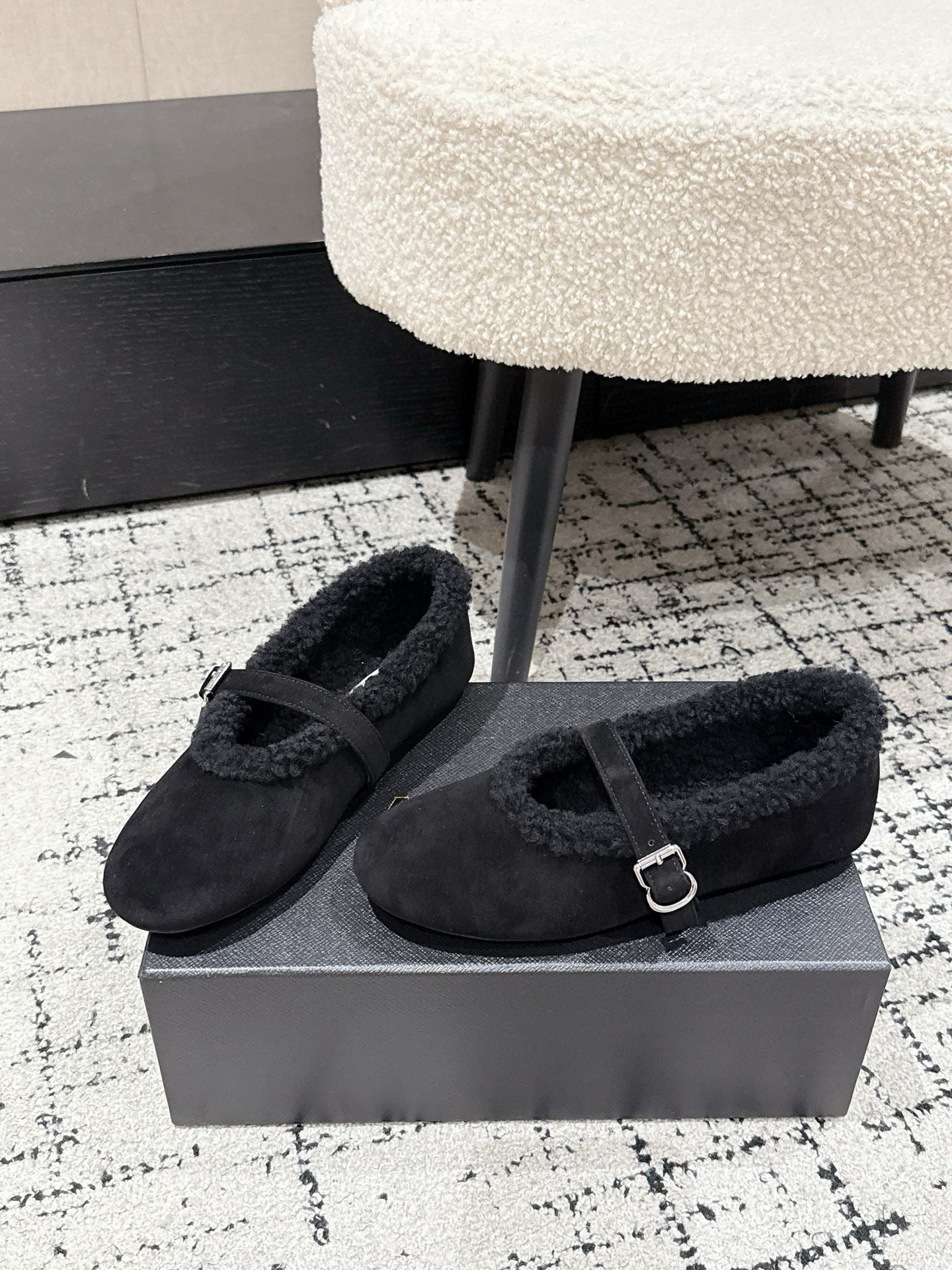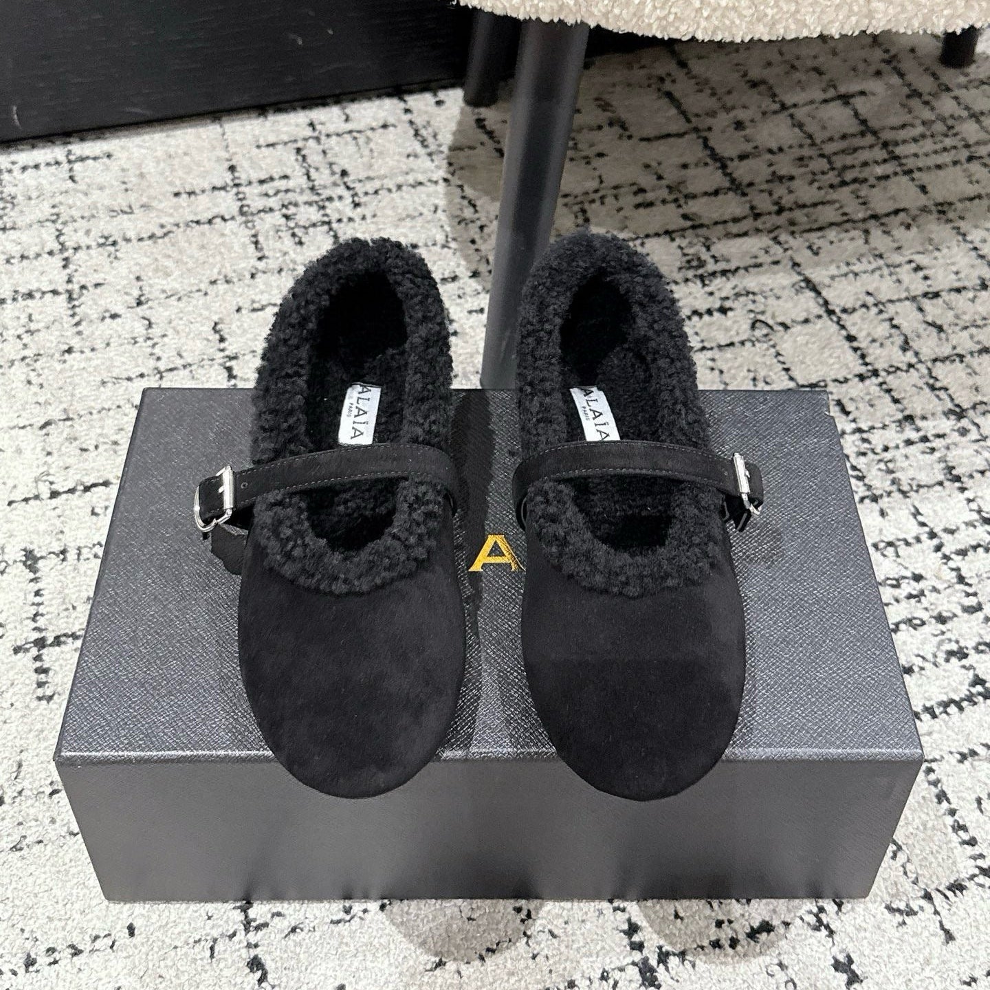 ALAIA 26S BALLET FLATS IN BLACK SUEDE AND WOOL