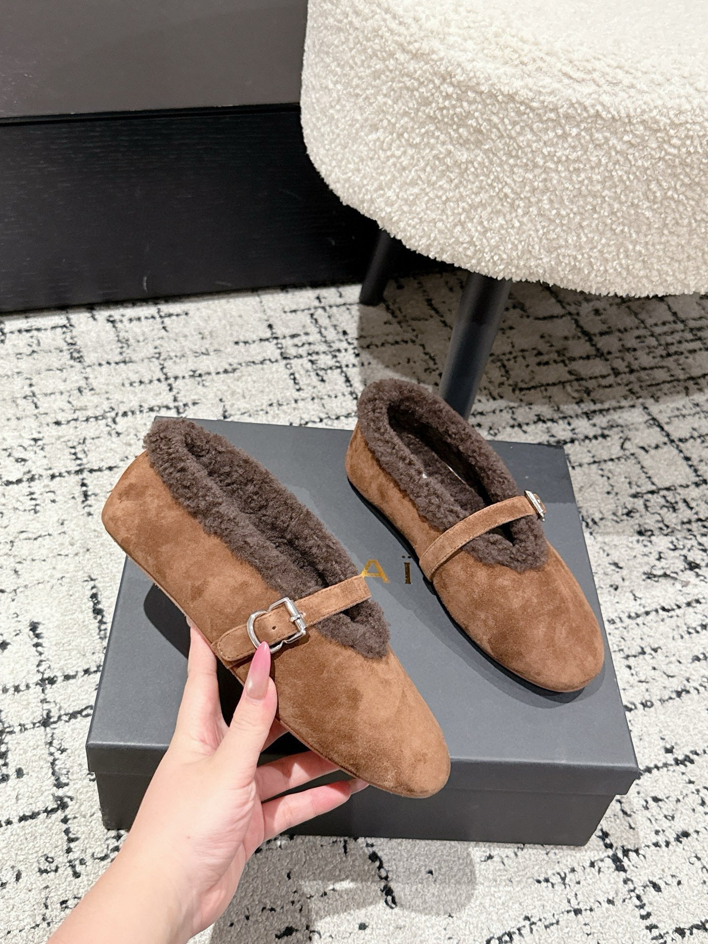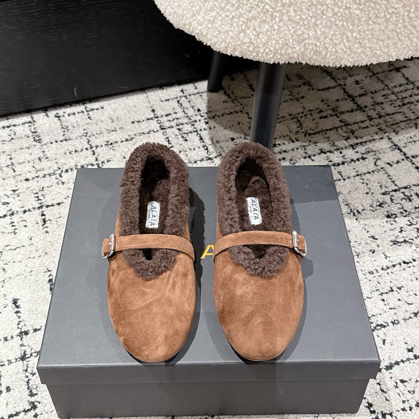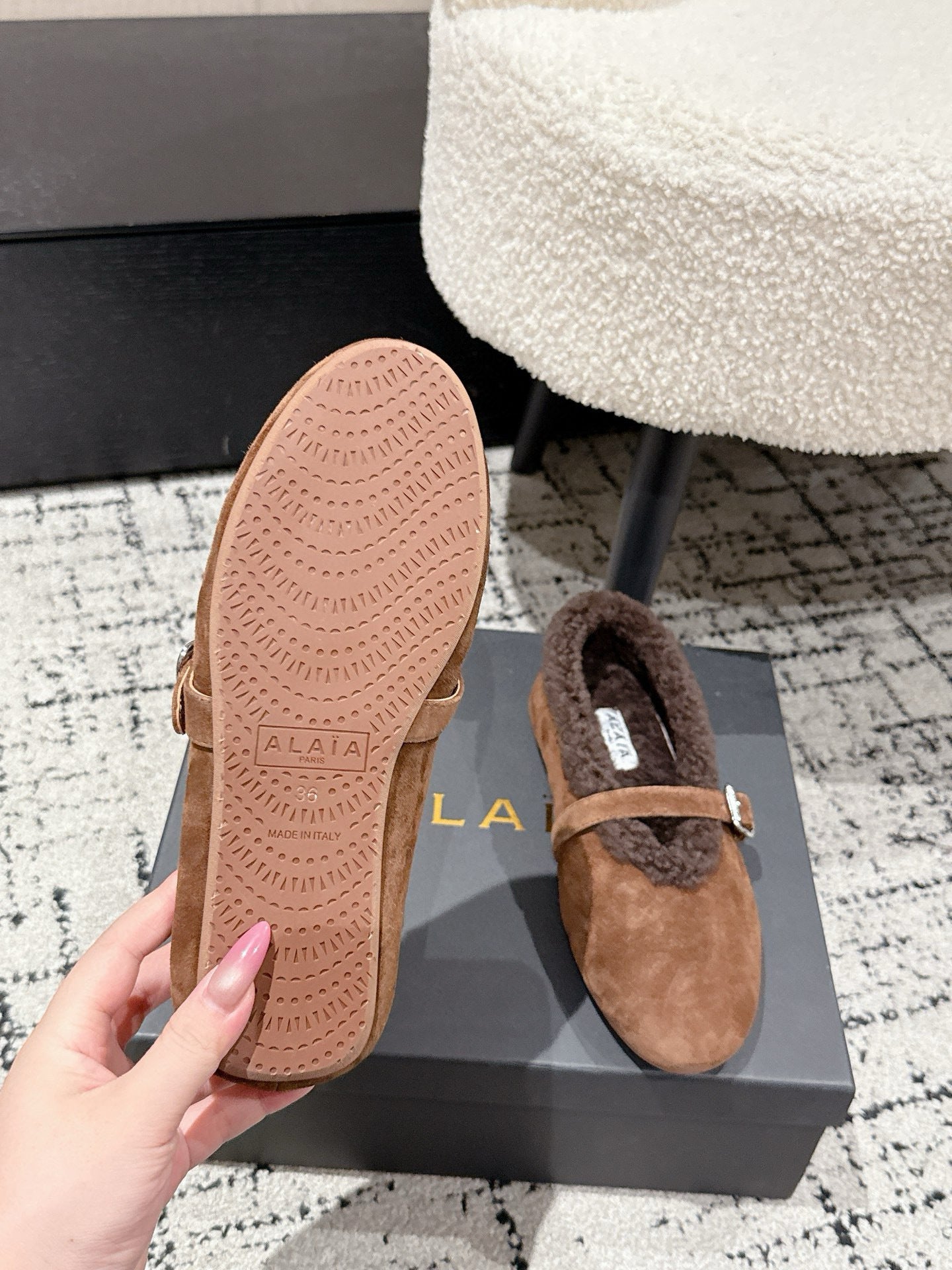ALAIA 26S BALLET FLATS IN BROWN SUEDE AND WOOL