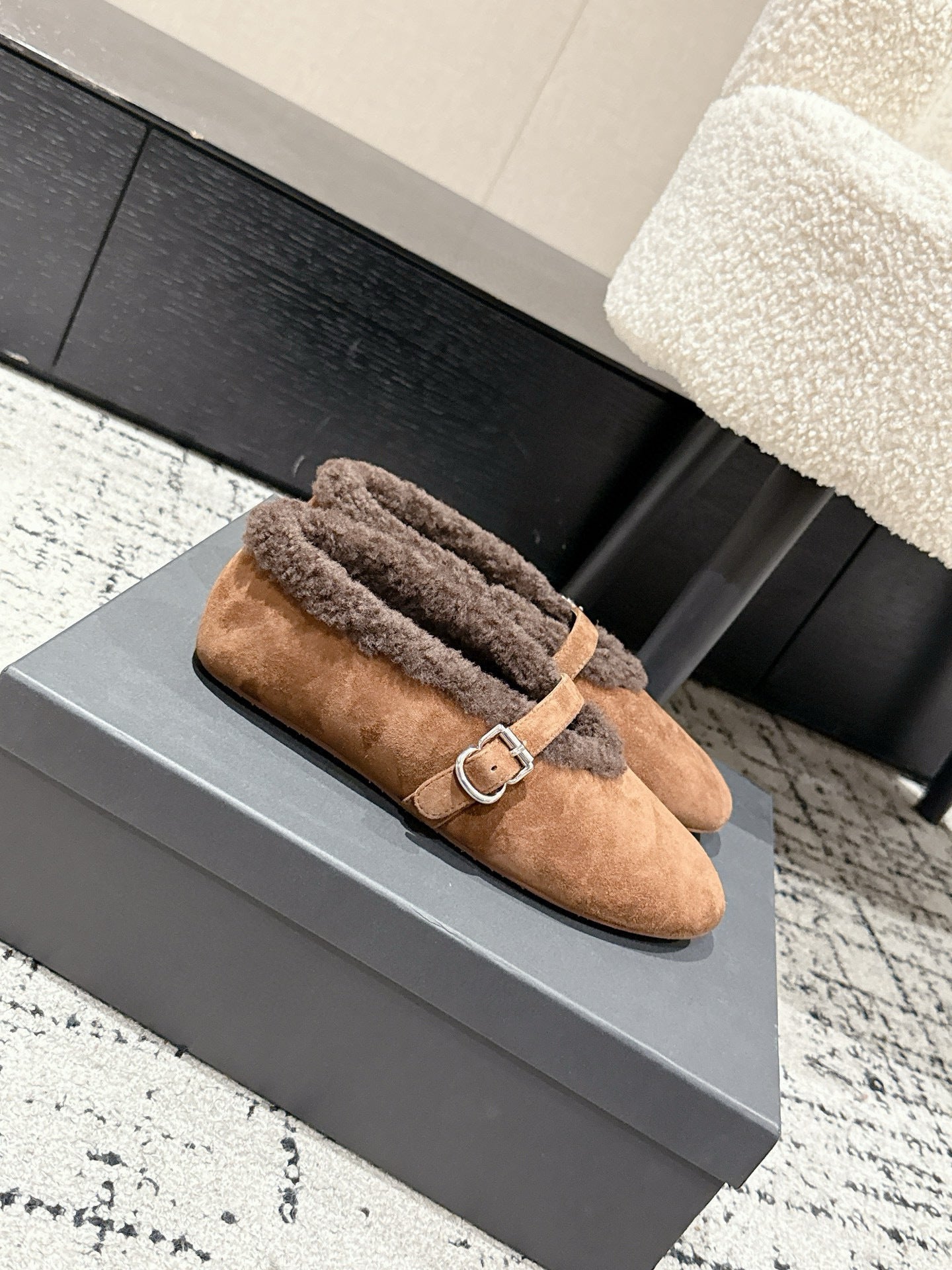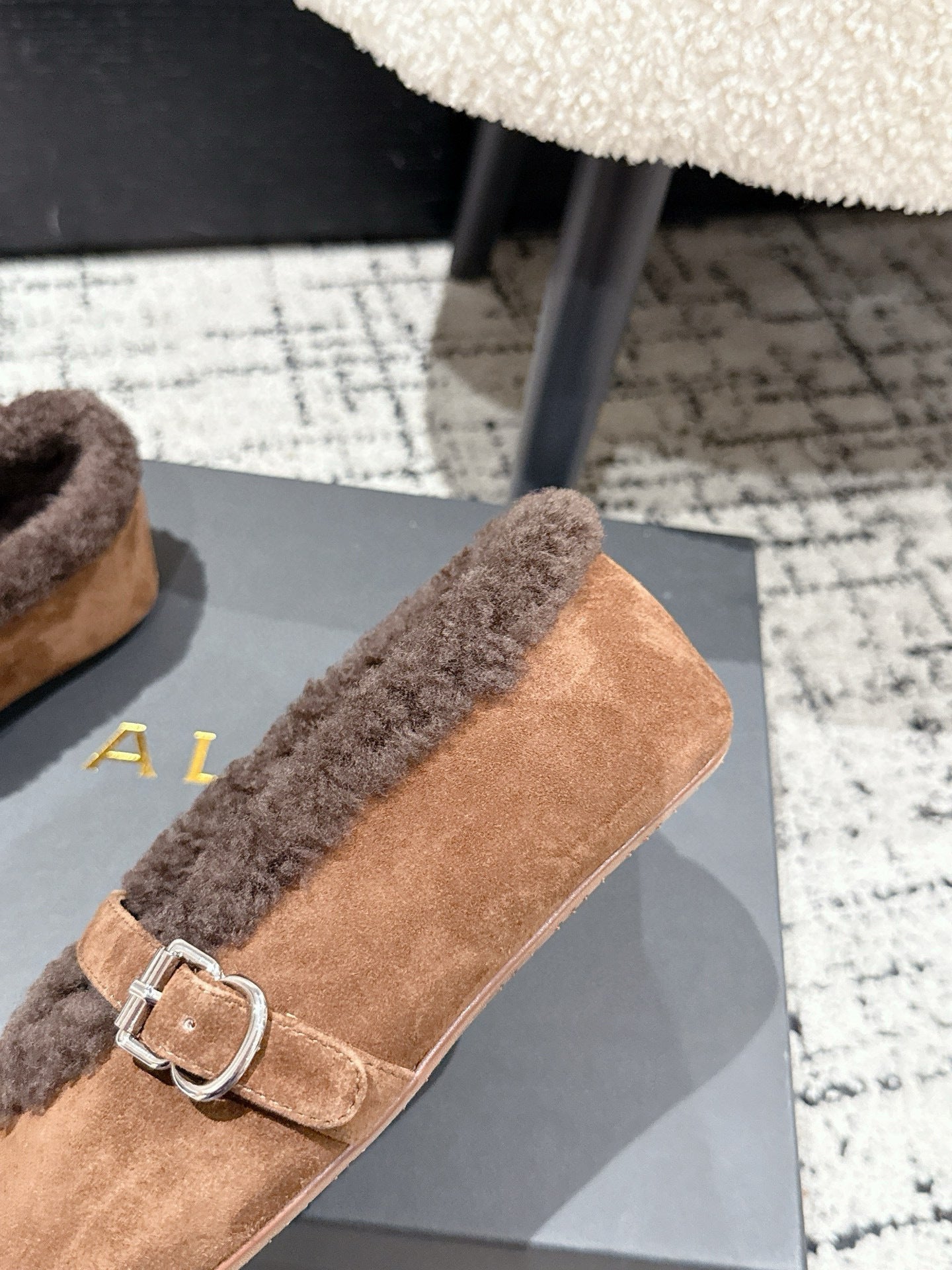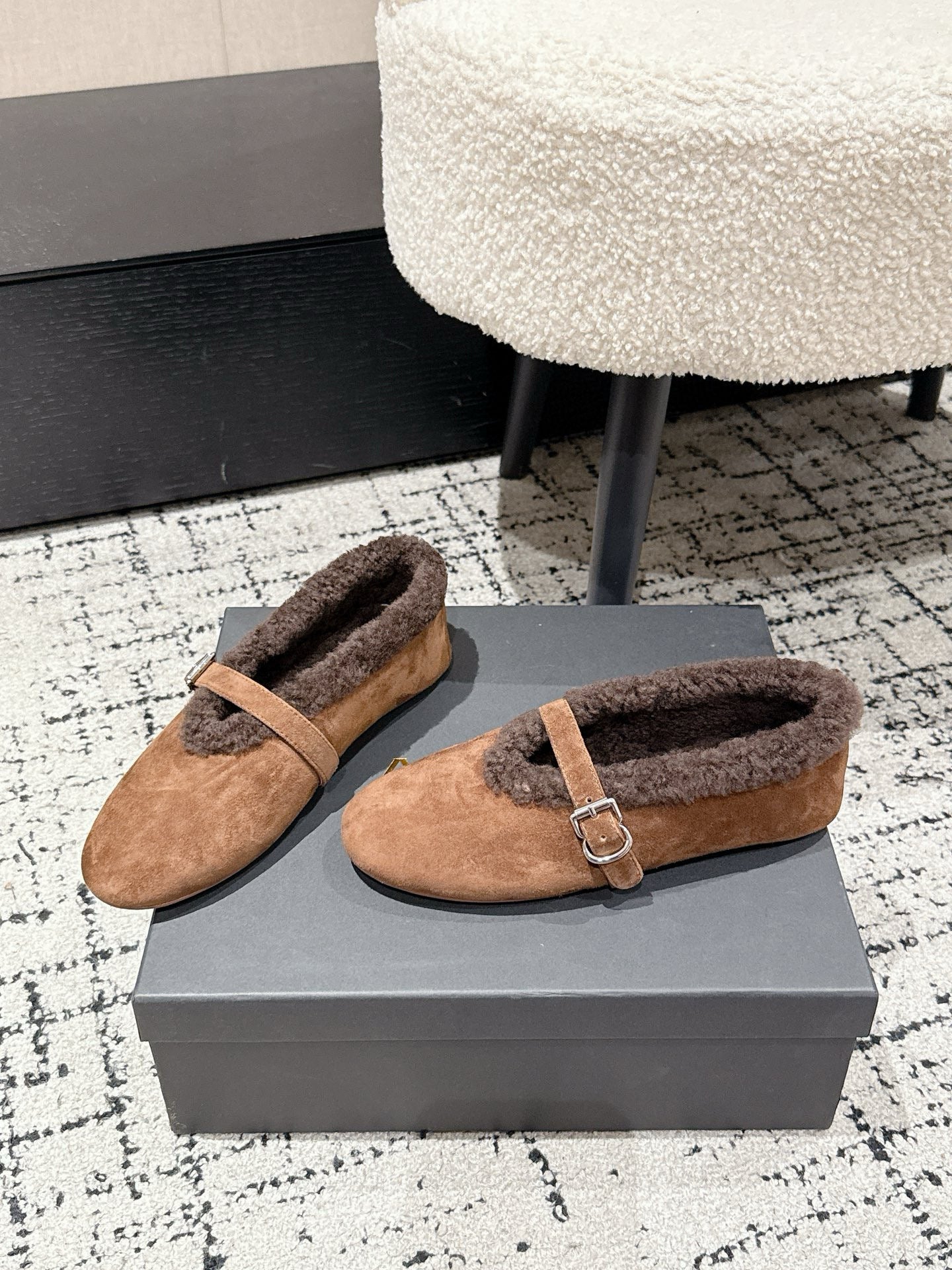 ALAIA 26S BALLET FLATS IN BROWN SUEDE AND WOOL