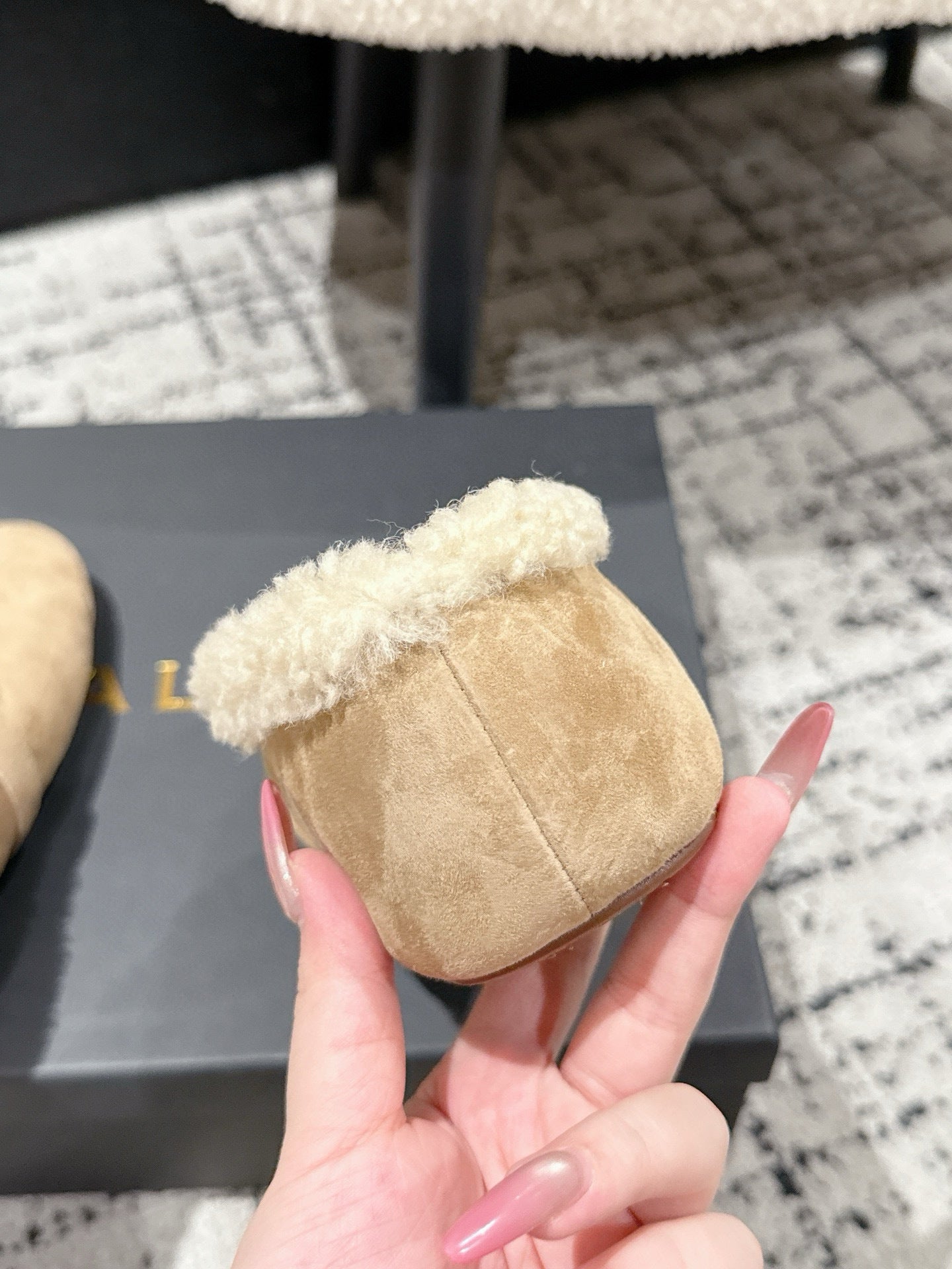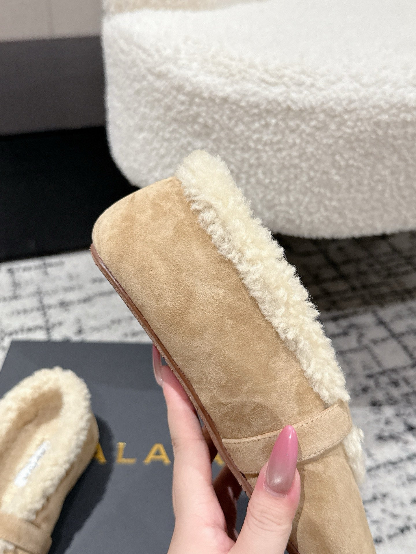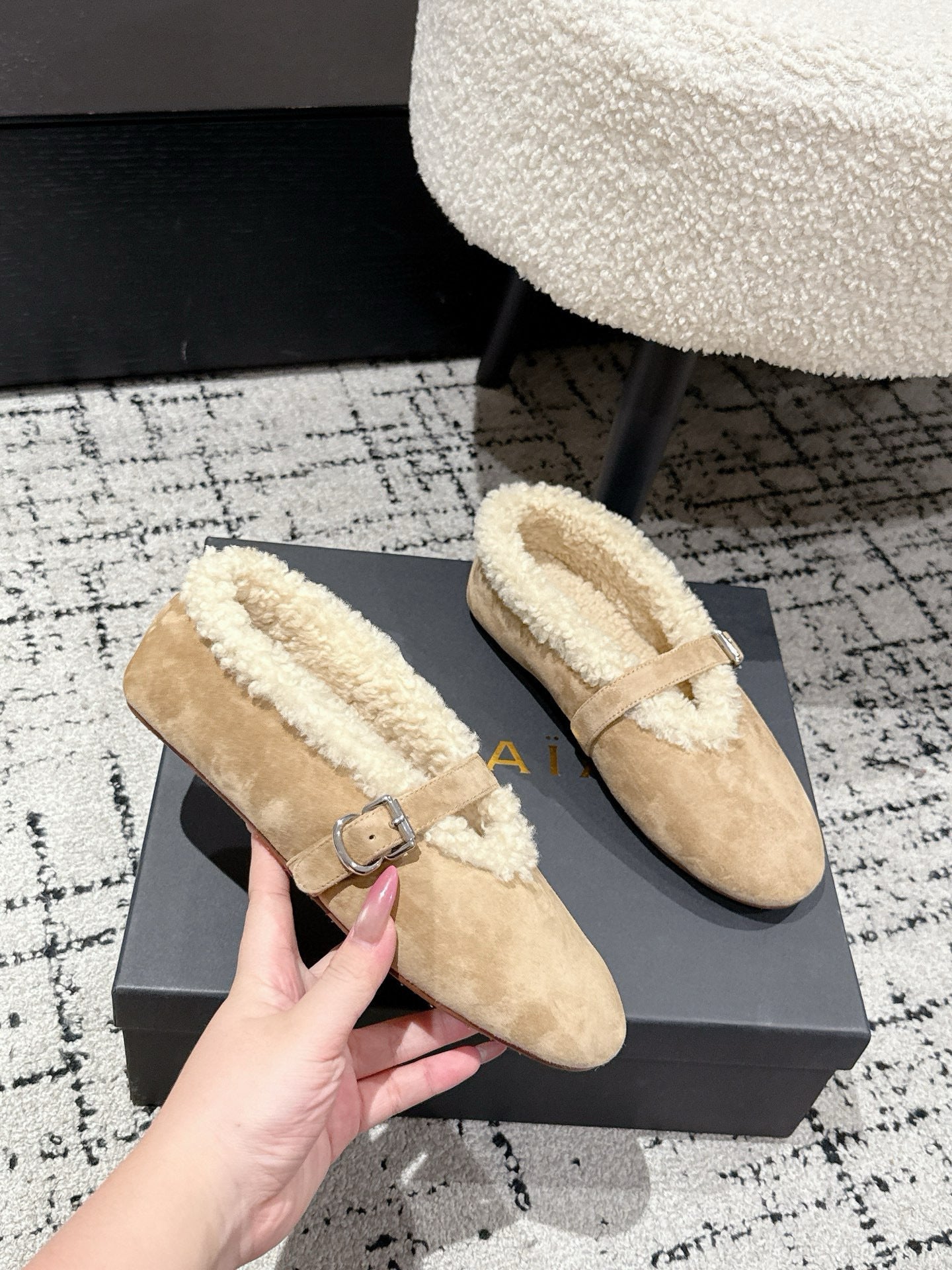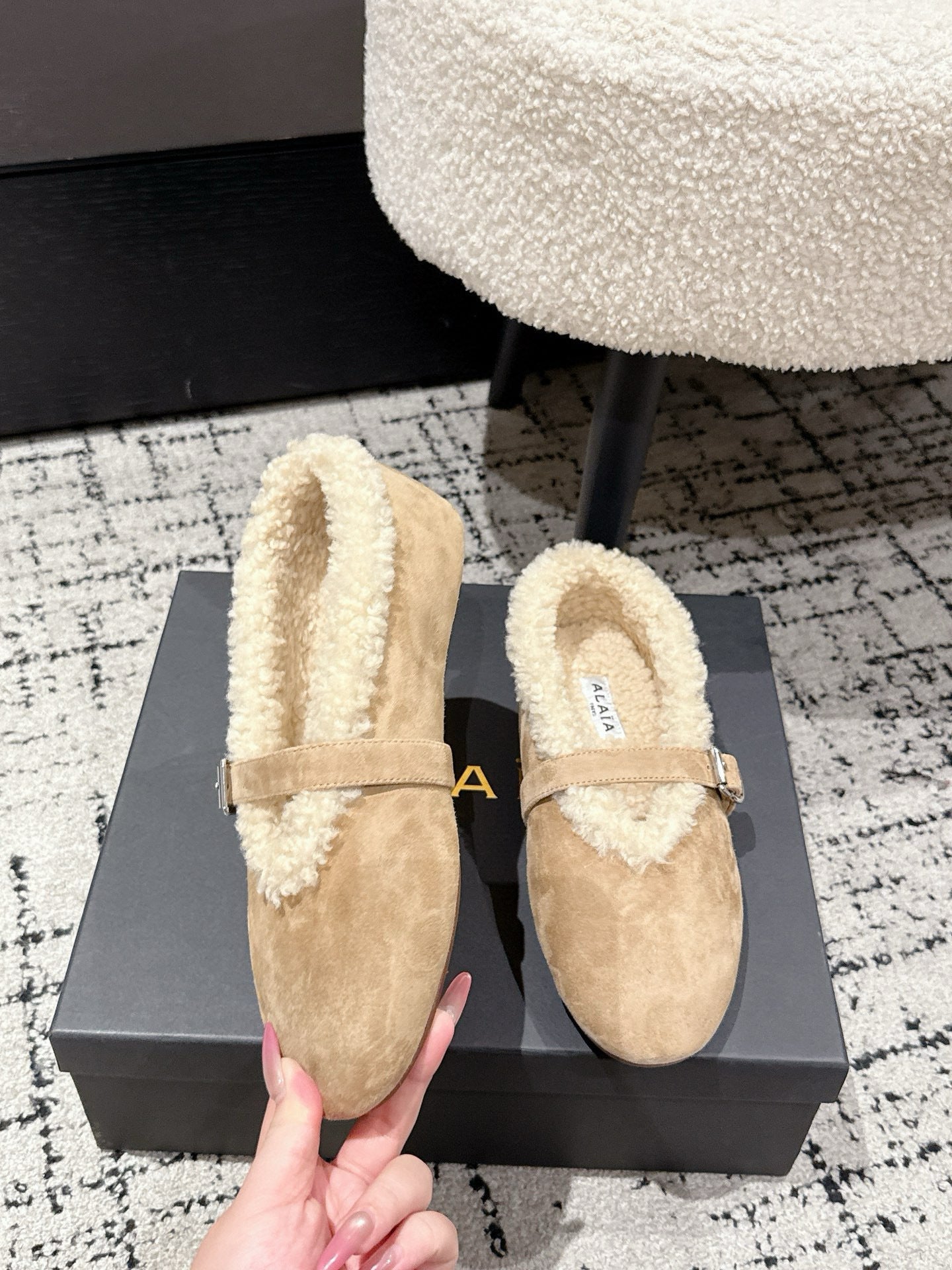 ALAIA 26S BALLET FLATS IN DARK BEIGE SUEDE AND WOOL