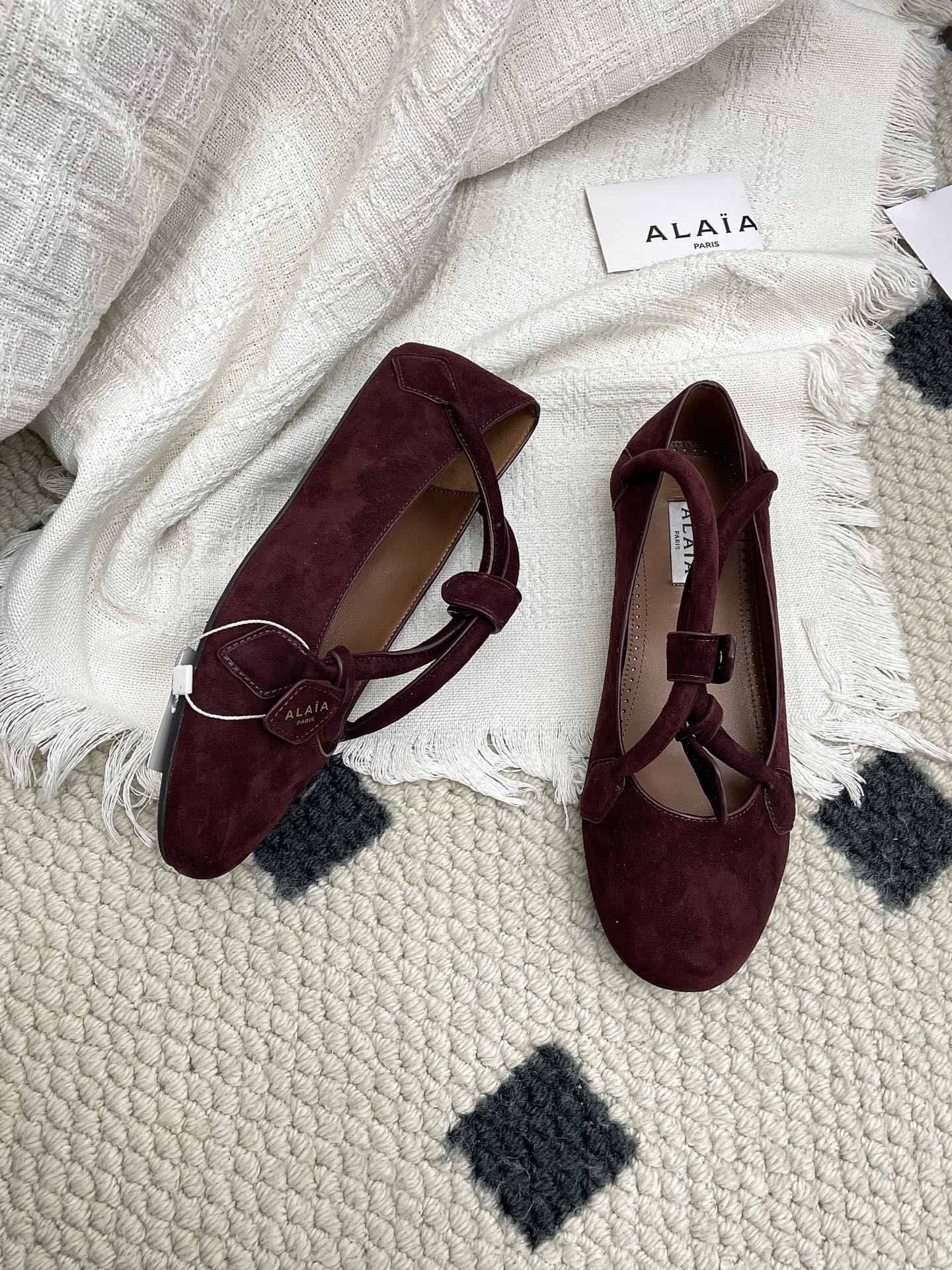 ALAIA 26S BALLET TECKEL IN DARK RED SUEDE