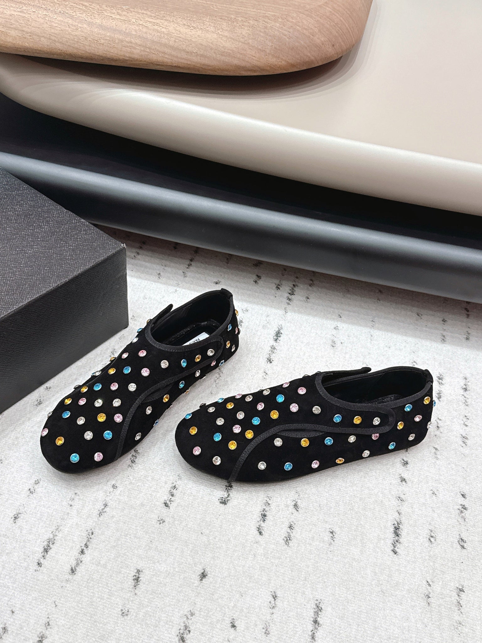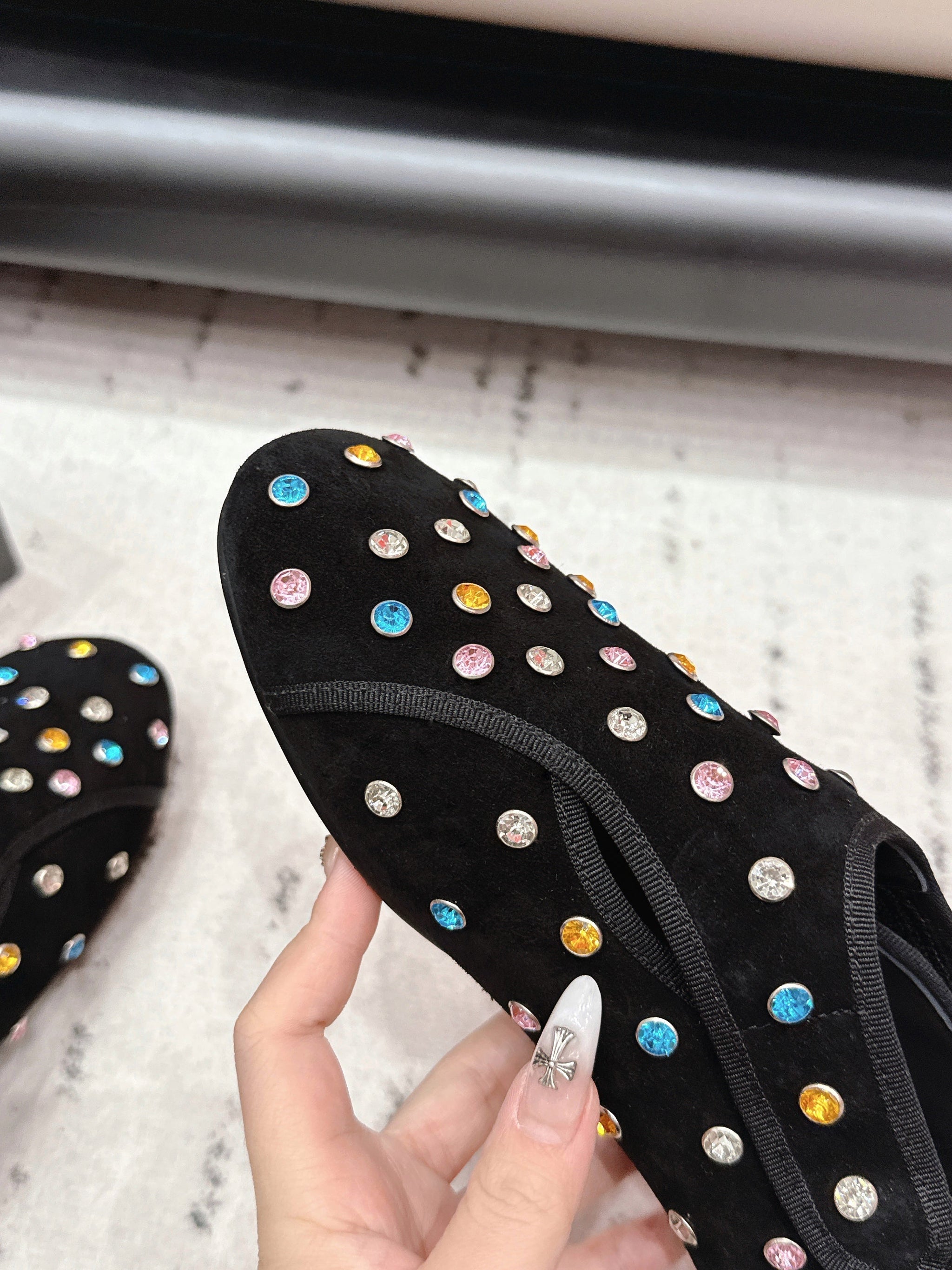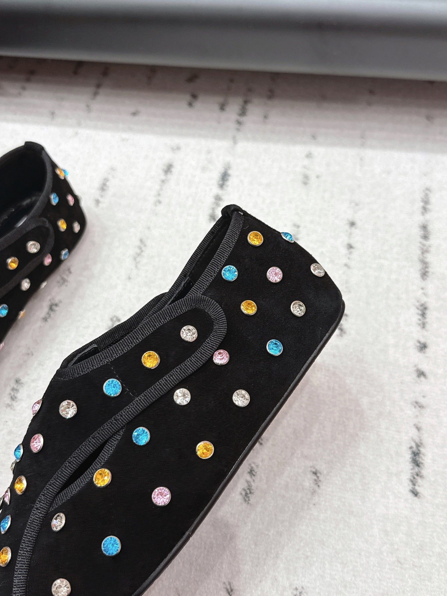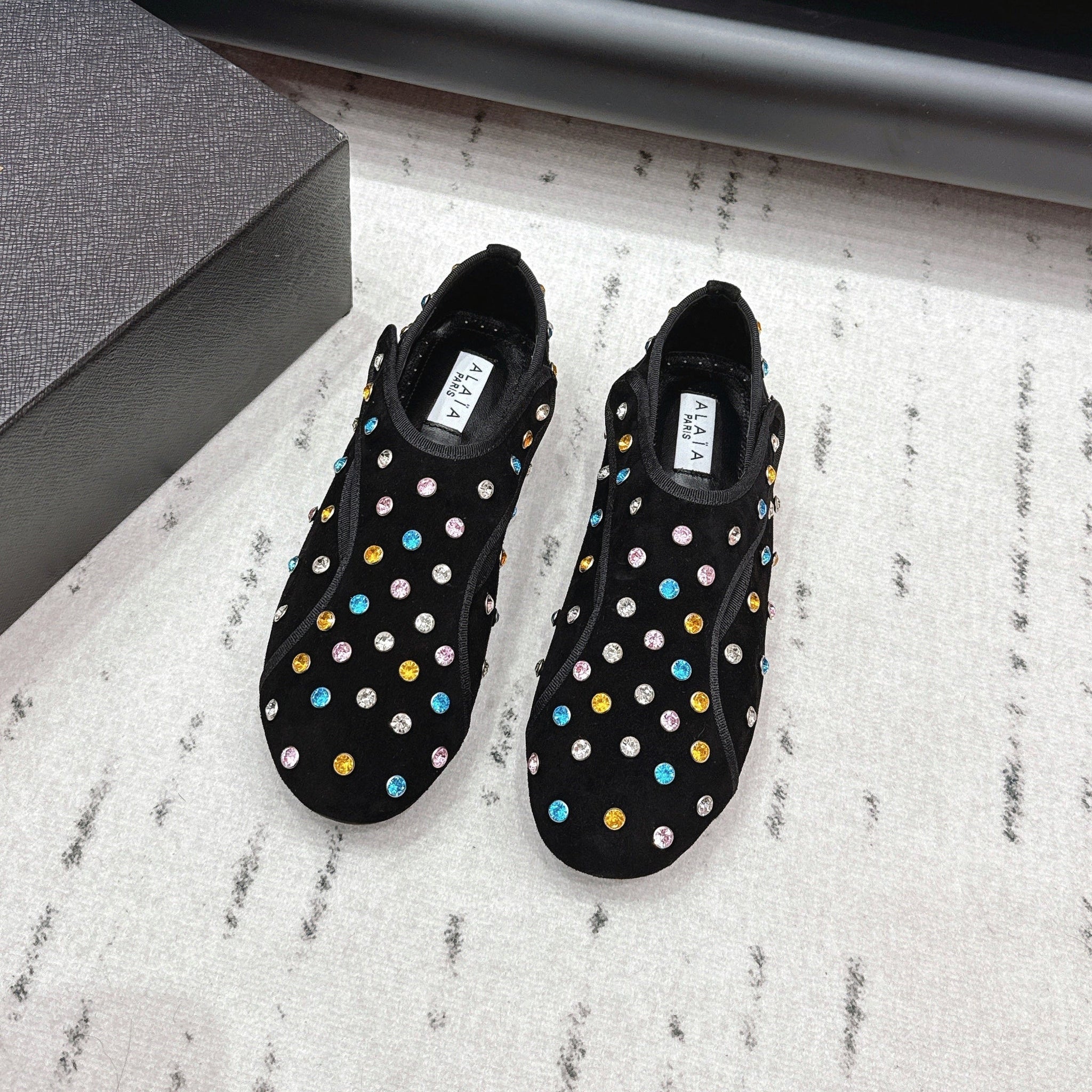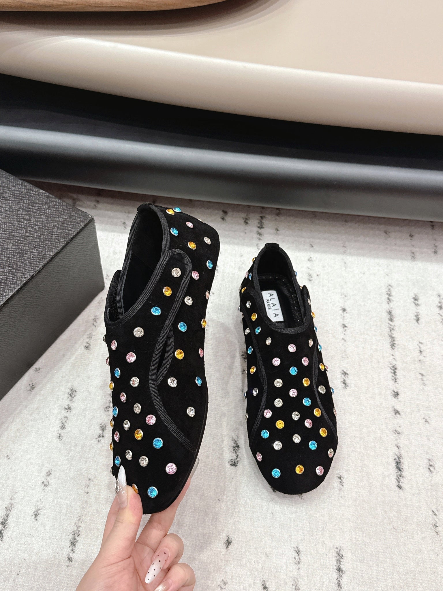 ALAIA 26S EMBELLISHED FLATS IN BLACK SUEDE