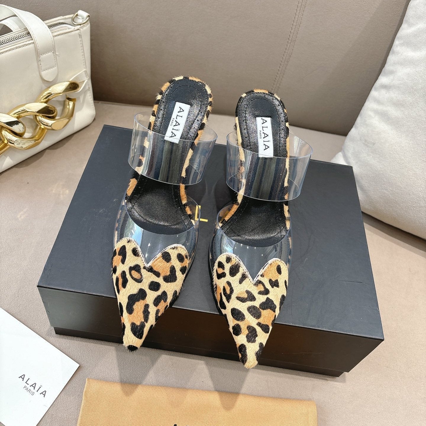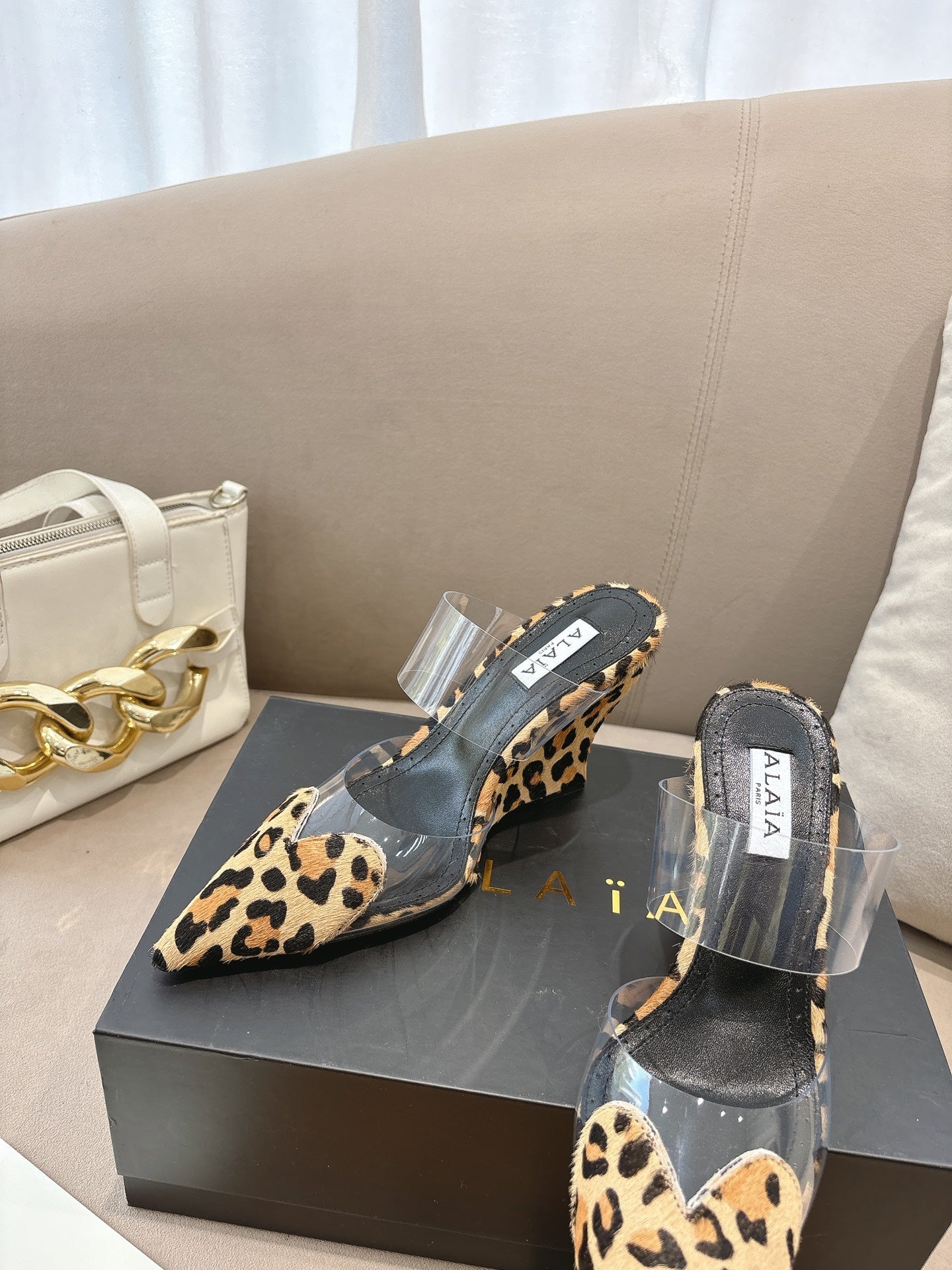 ALAIA 26S HIGH-HEEL WEDGE MULES 95 MM IN LEOPARD PRINT PONY HAIR