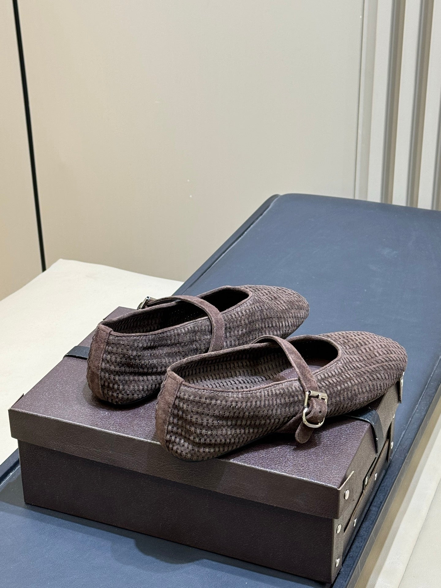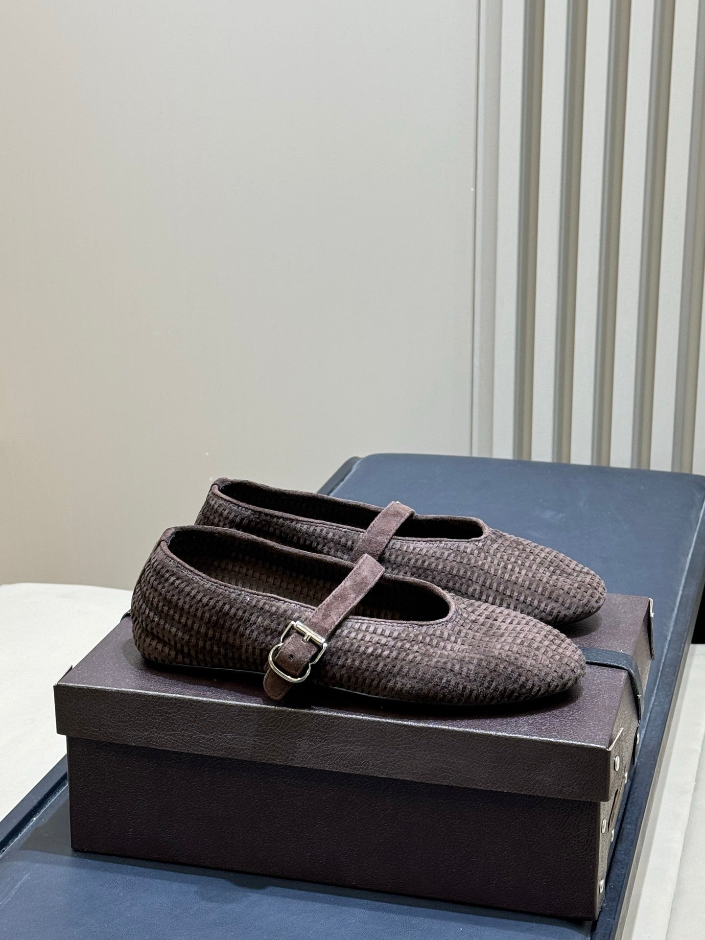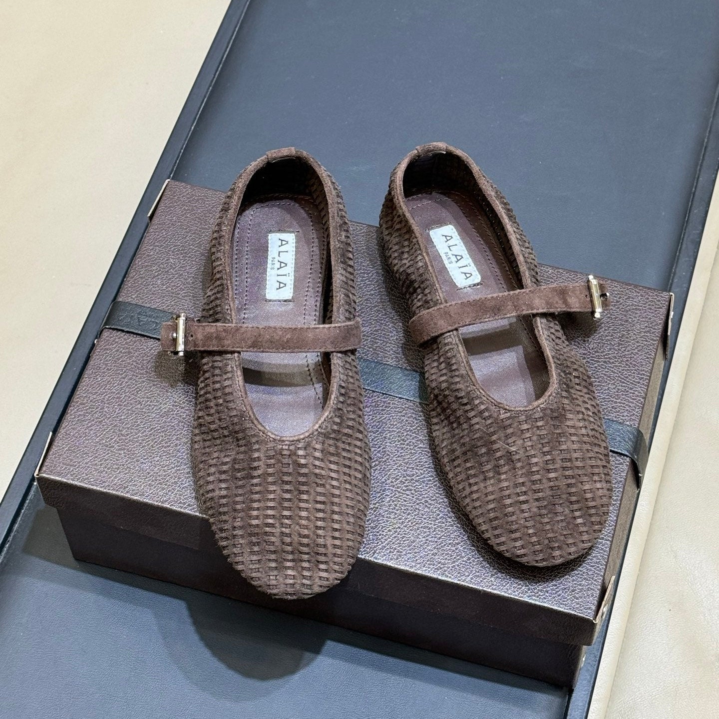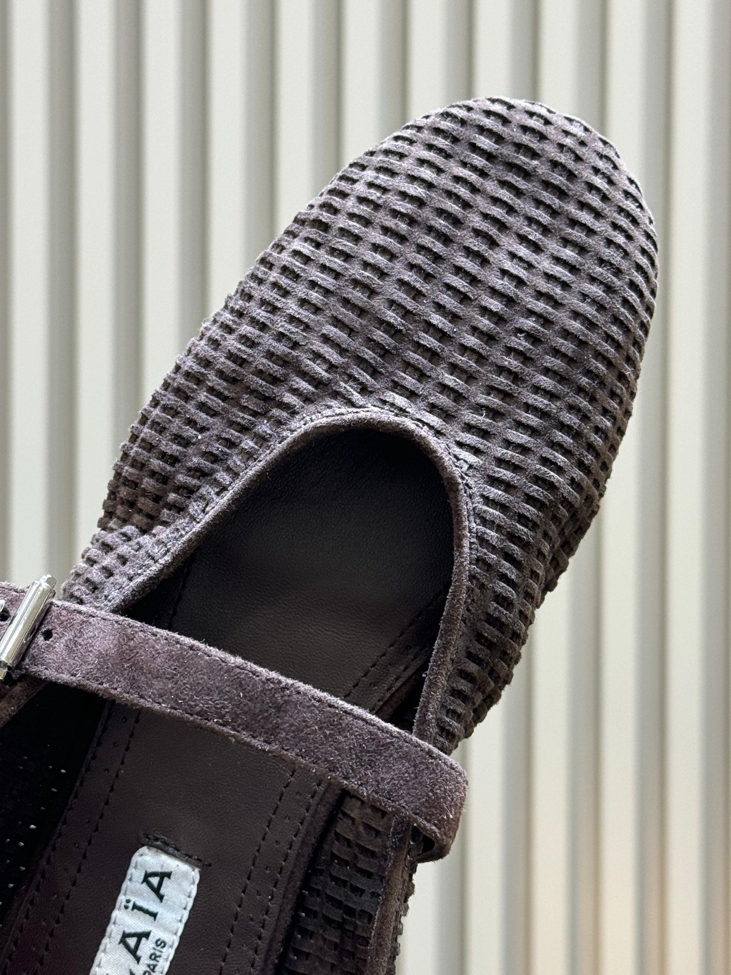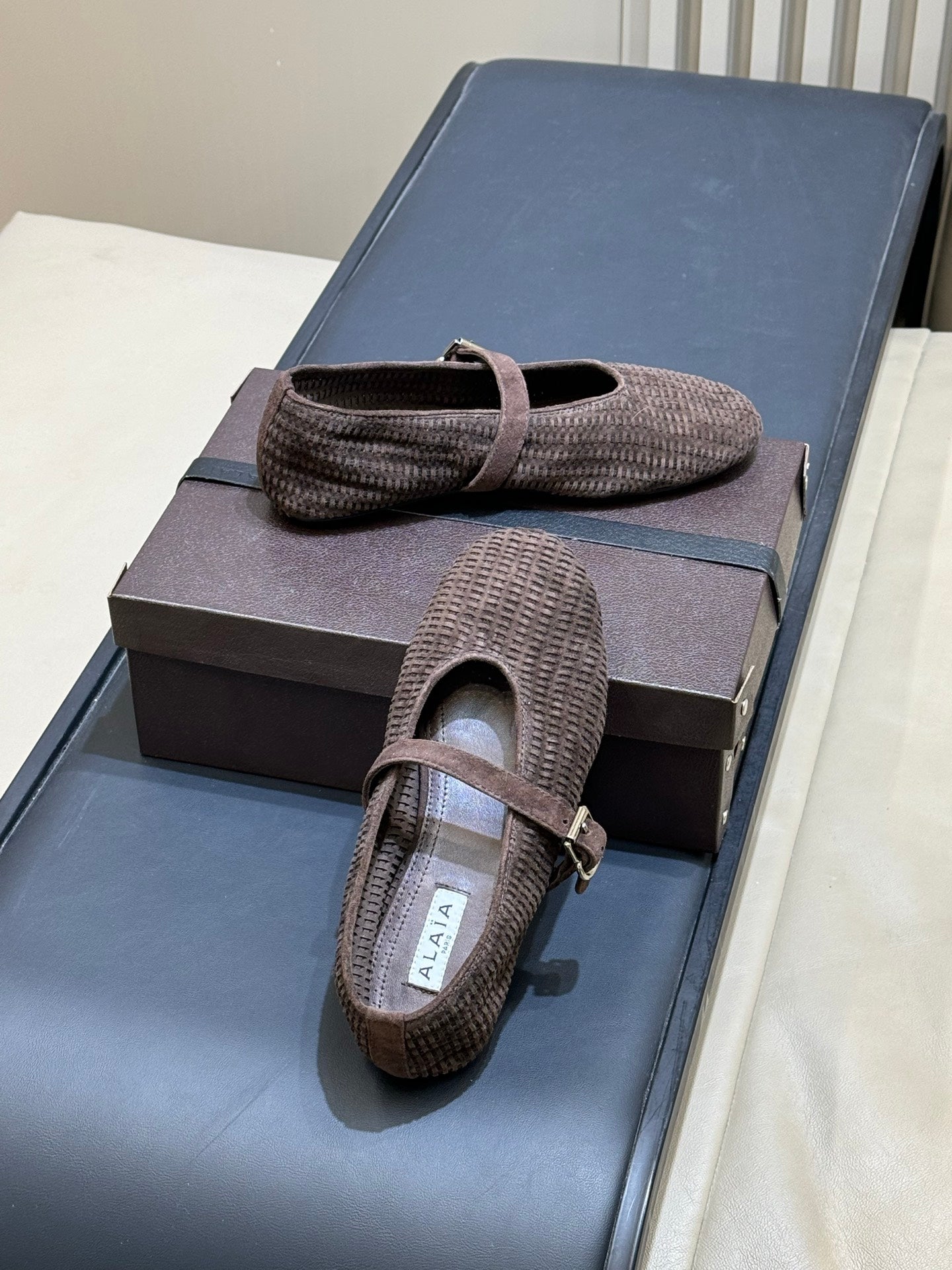 ALAIA 26S KNIT BALLET FLATS IN DARK BROWN SUEDE