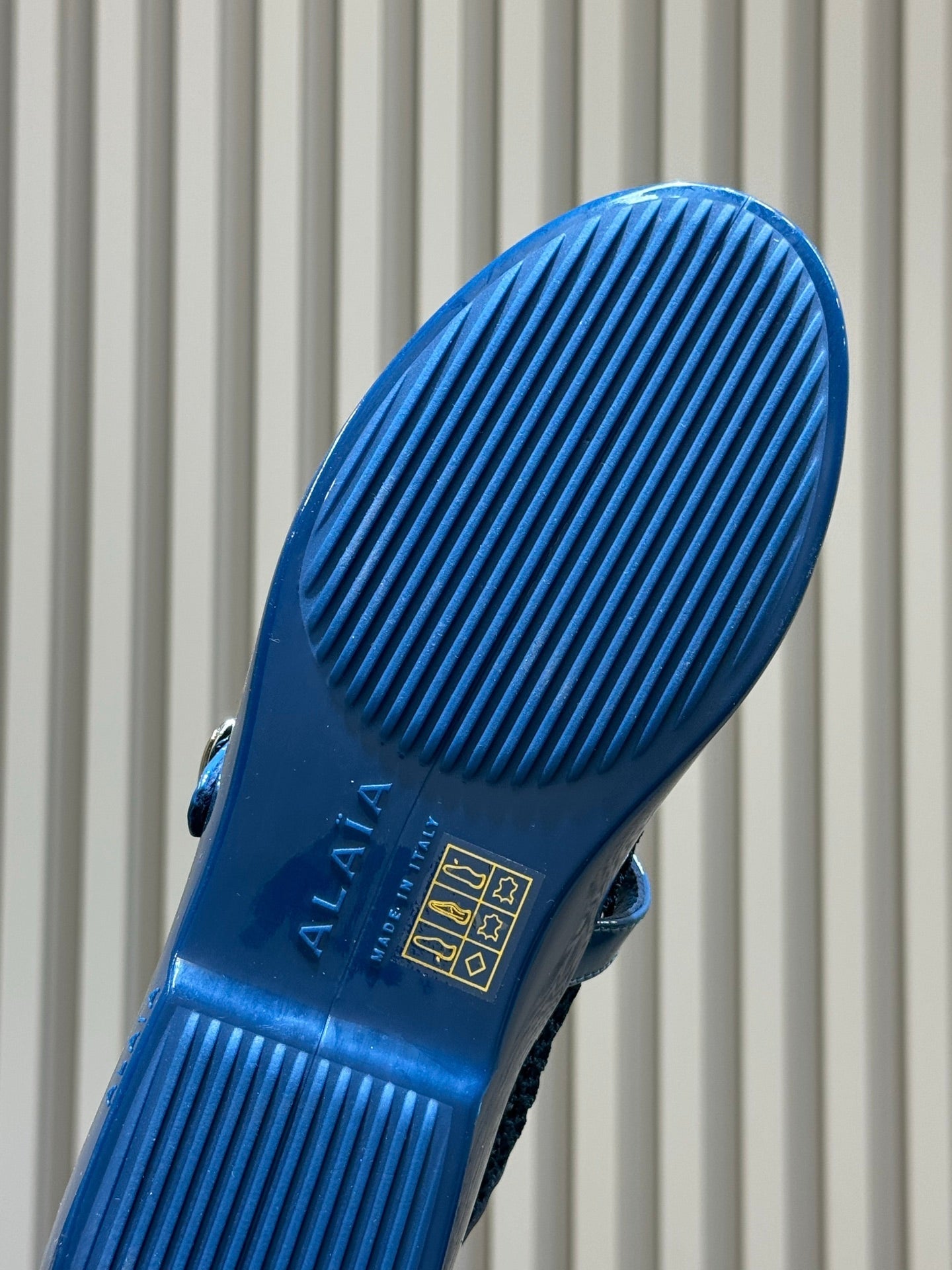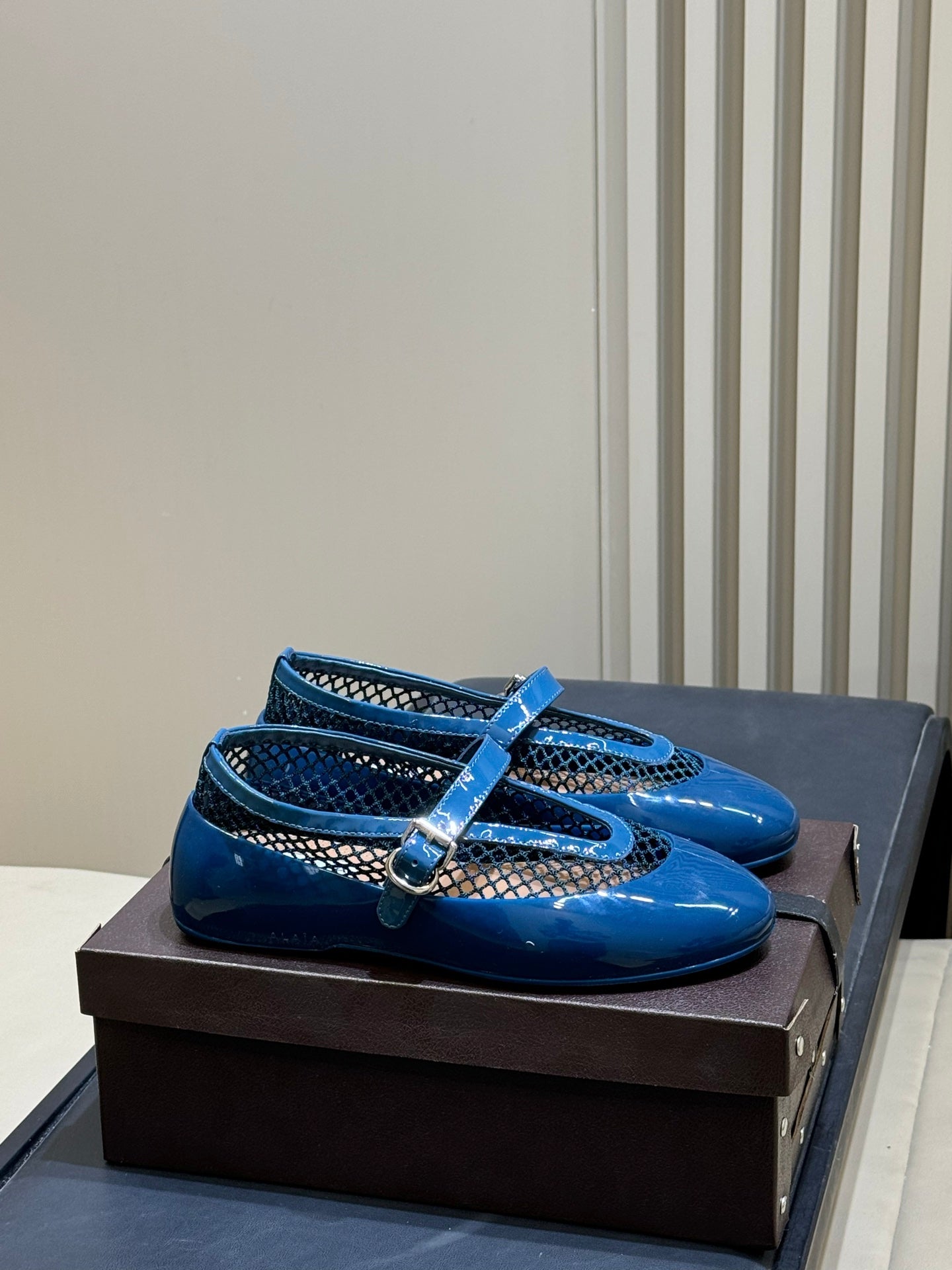 ALAIA 26S MARY JANE BALLET FLATS IN DARK BLUE MESH AND GLOSSY CALFSKIN