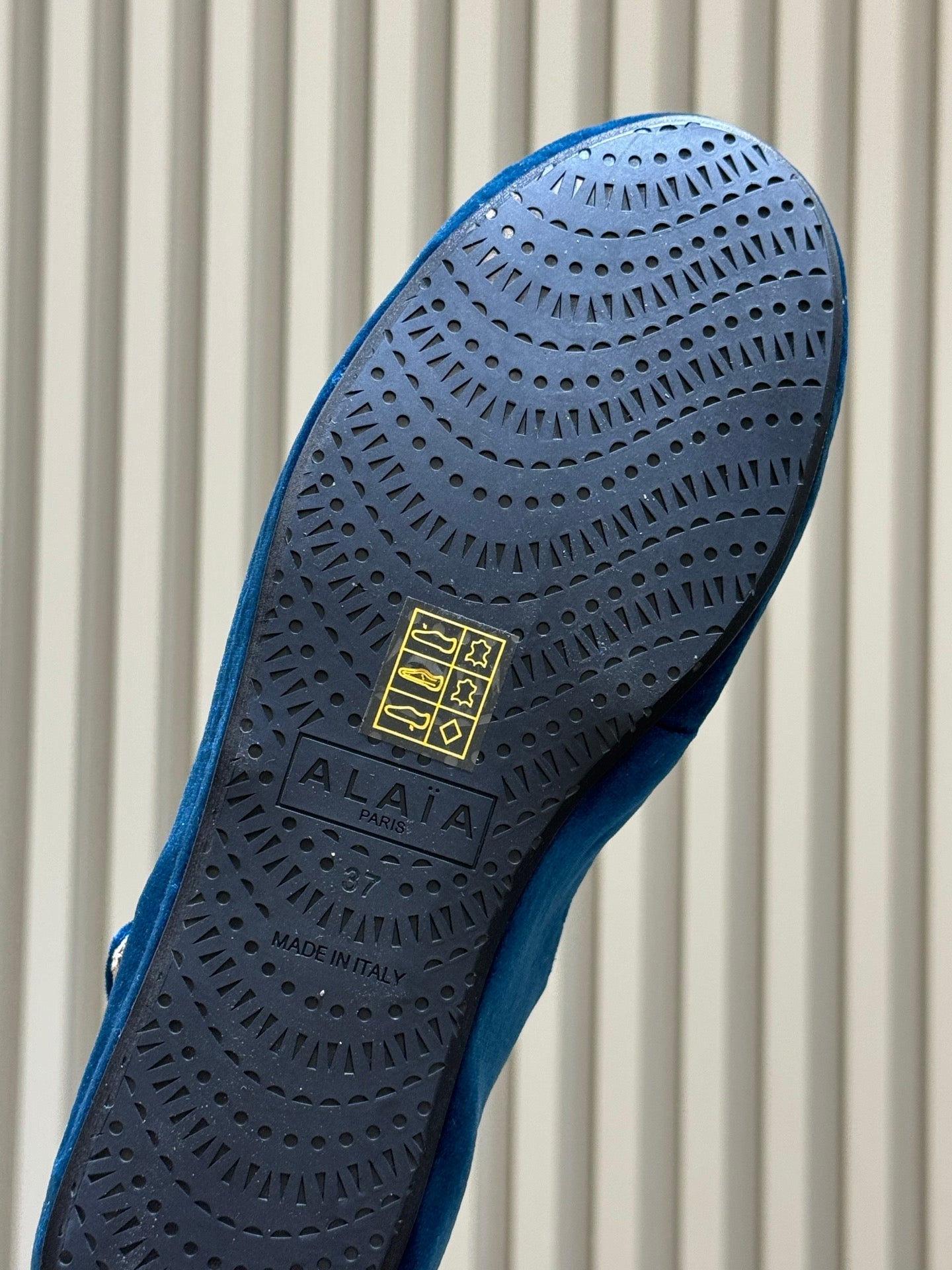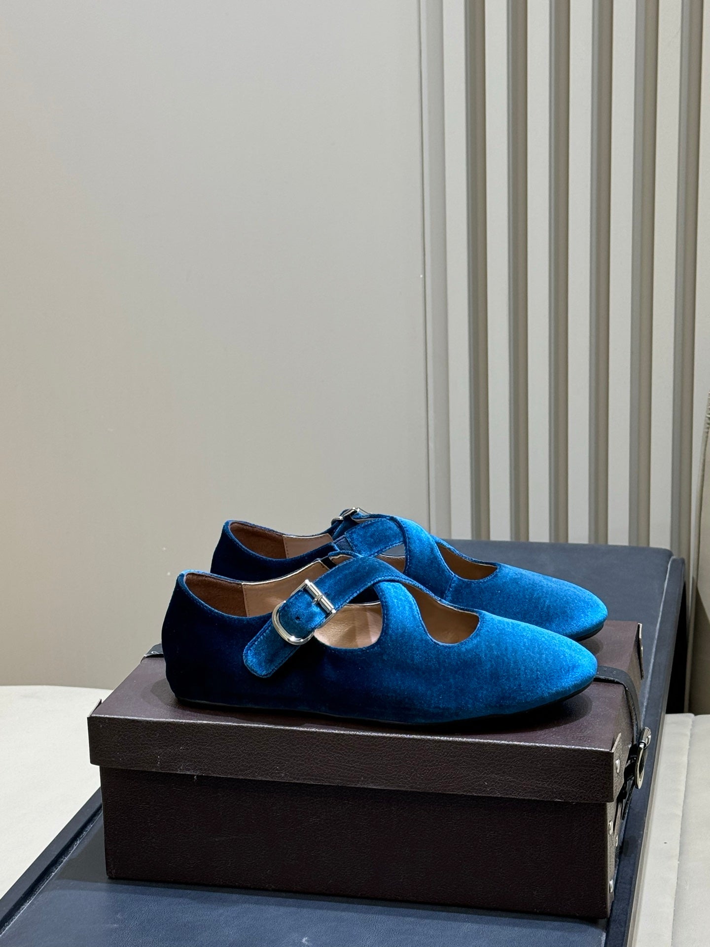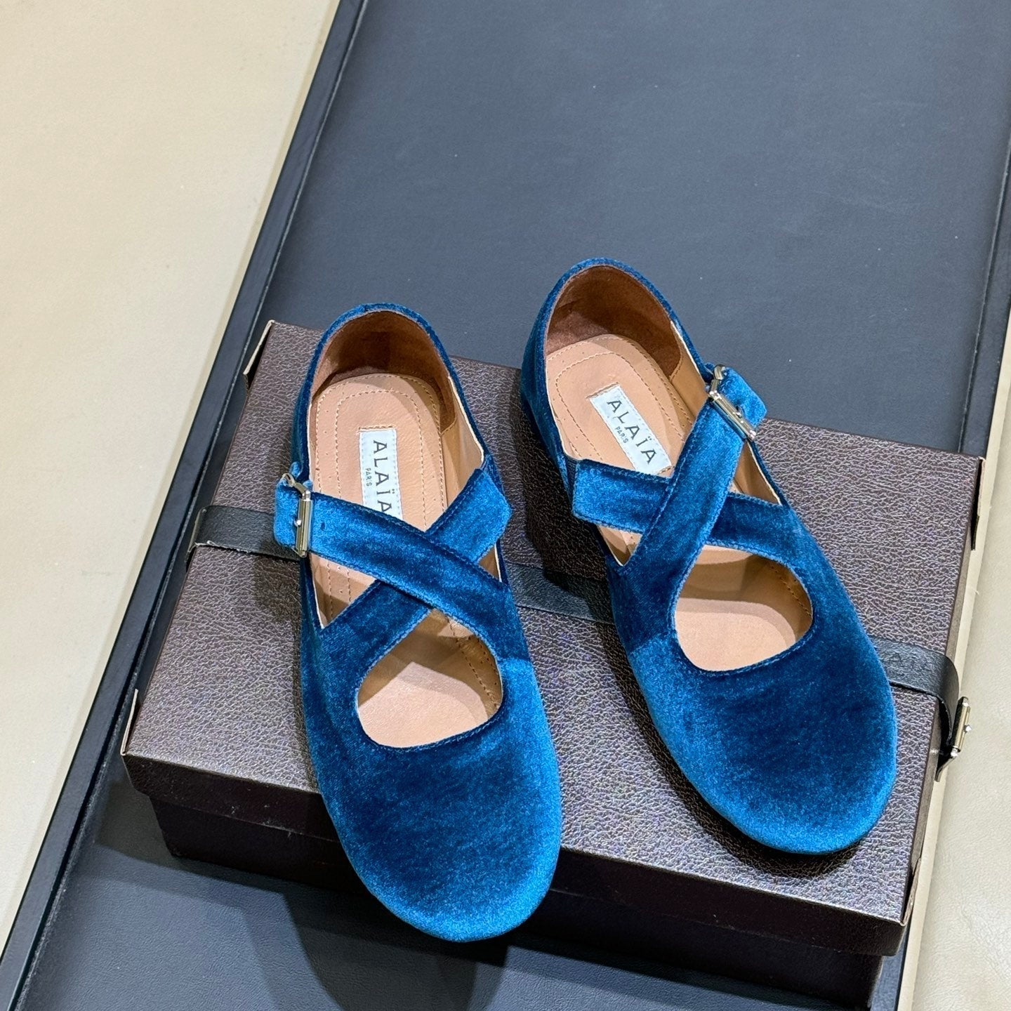 ALAIA 26S MARY JANE BALLET FLATS IN DARK BLUE VELVET