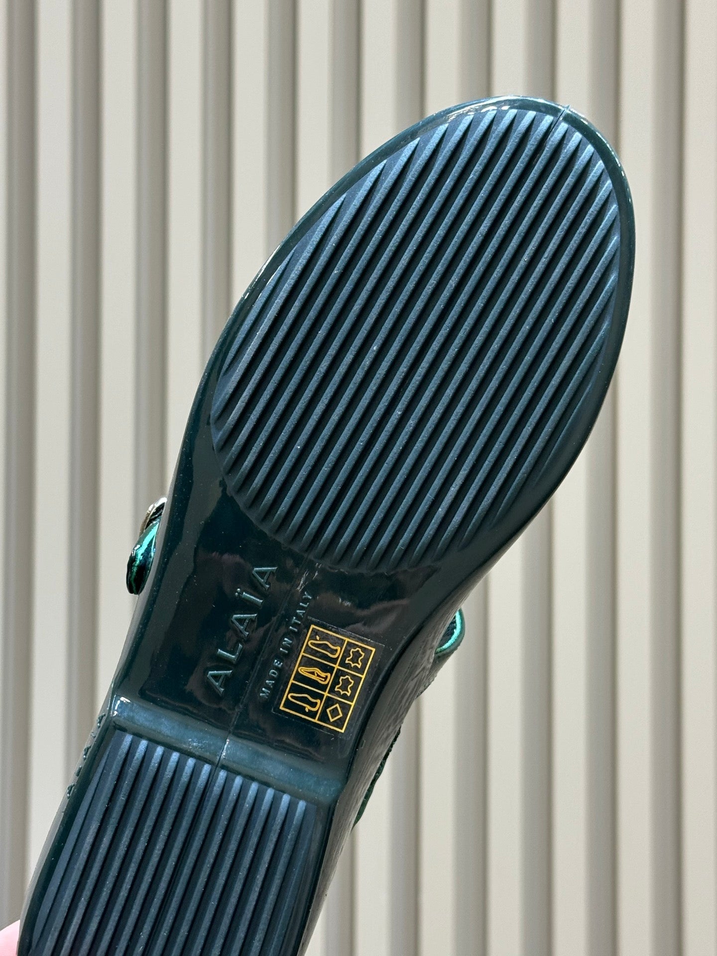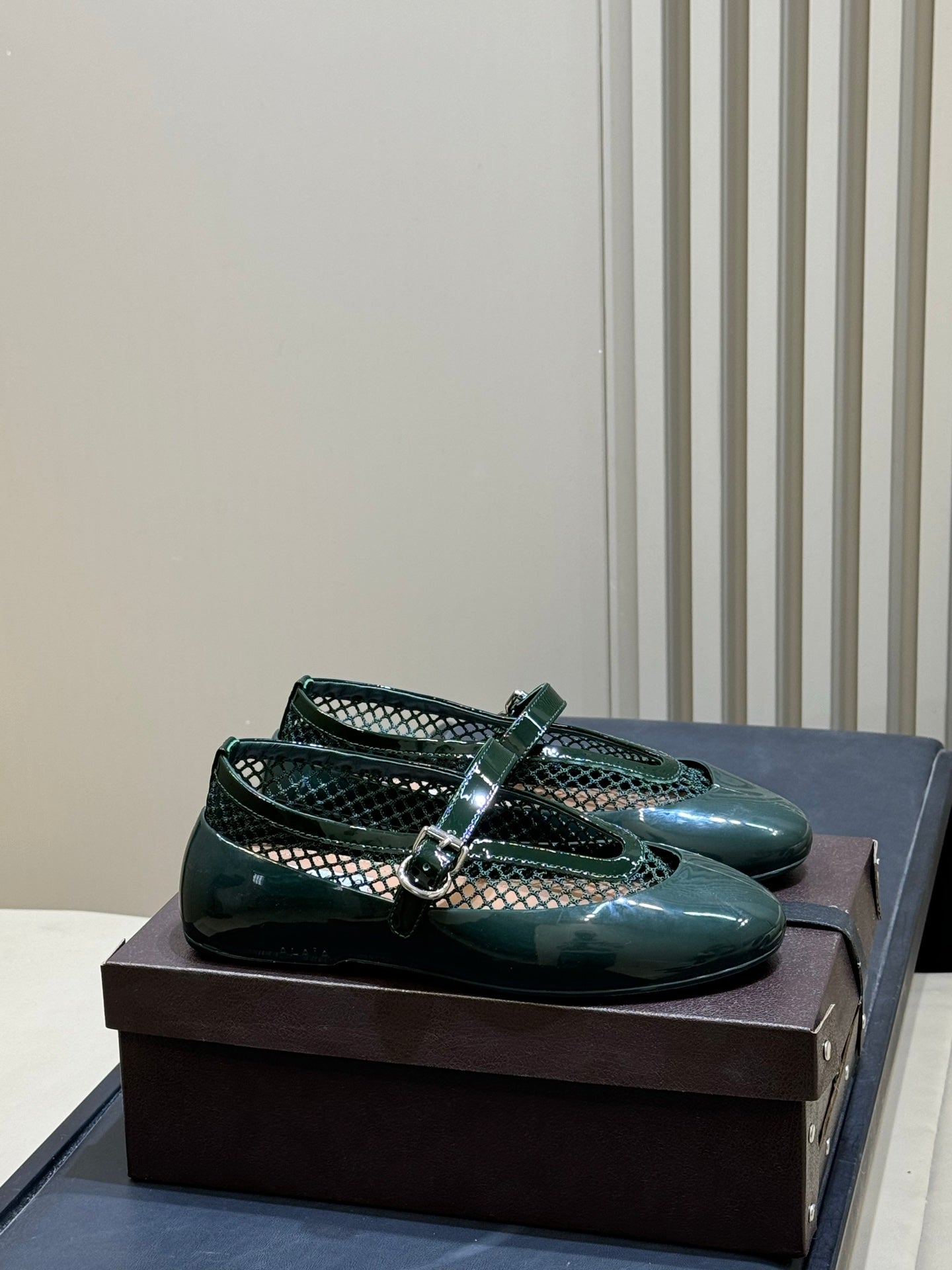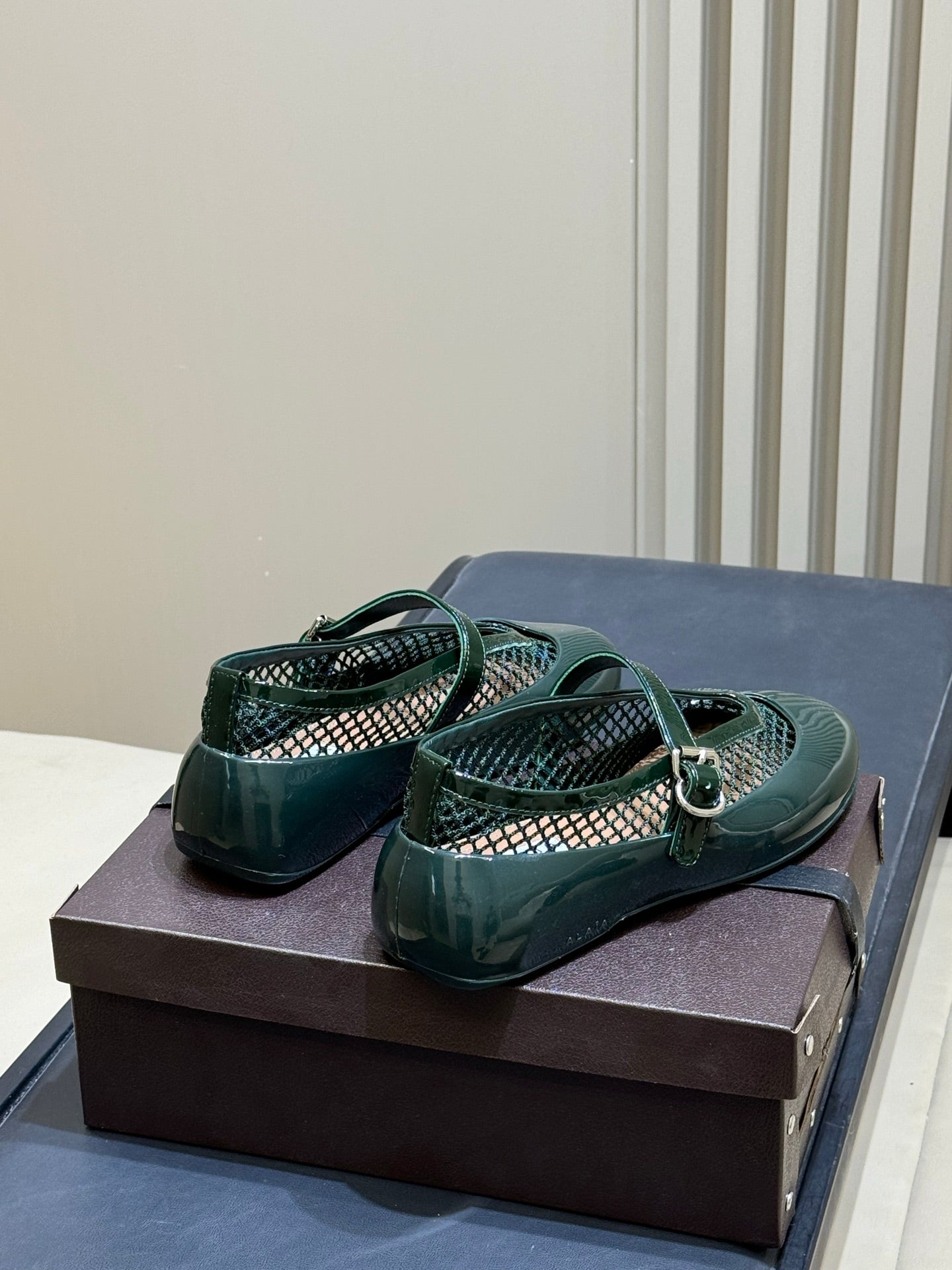 ALAIA 26S MARY JANE BALLET FLATS IN DARK GREEN MESH AND GLOSSY CALFSKIN