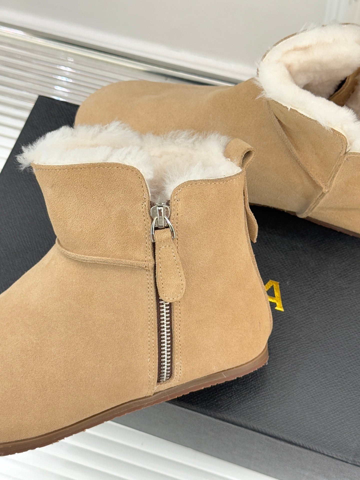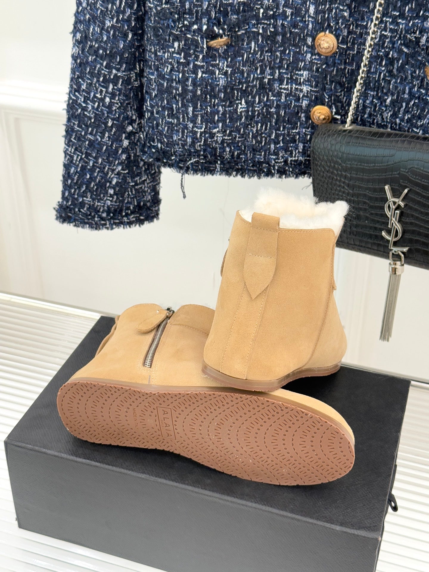 ALAIA 26S SNOW BOOTS IN DARK BEIGE SUEDE AND WOOL