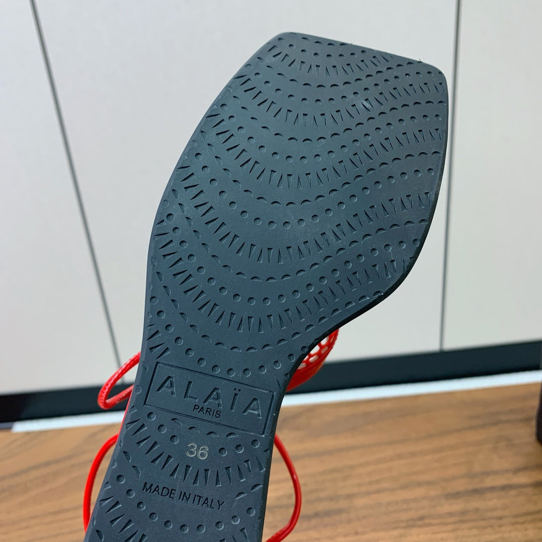 ALAIA BANQUET WEDGE SANDALS IN CHERRY RED LAMBSKIN WITH RED HEART