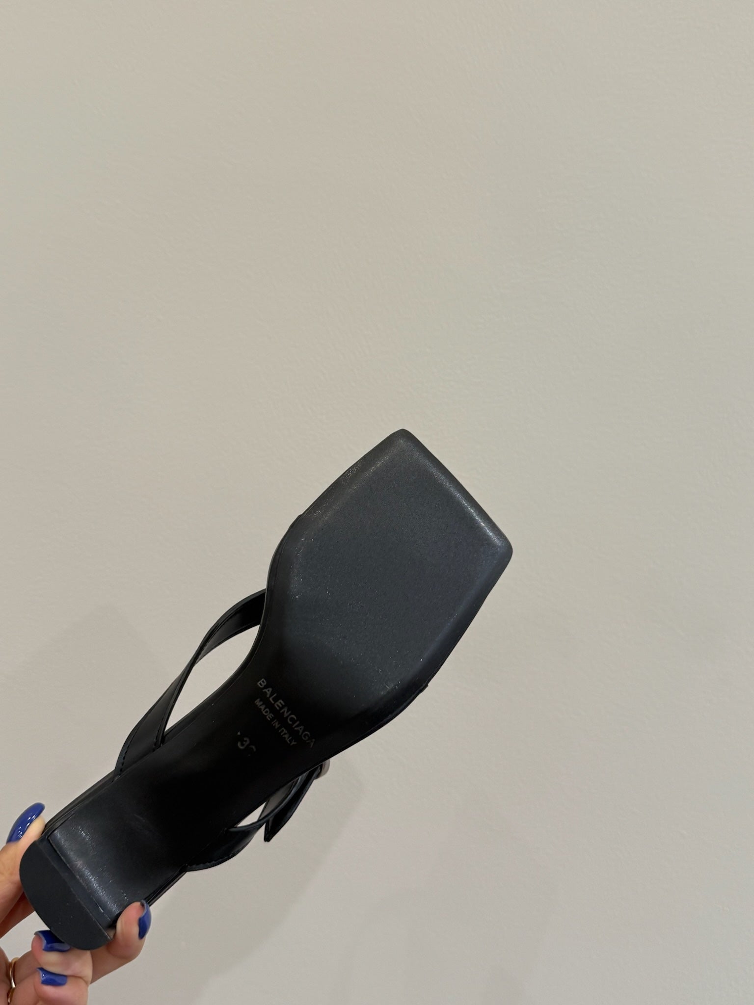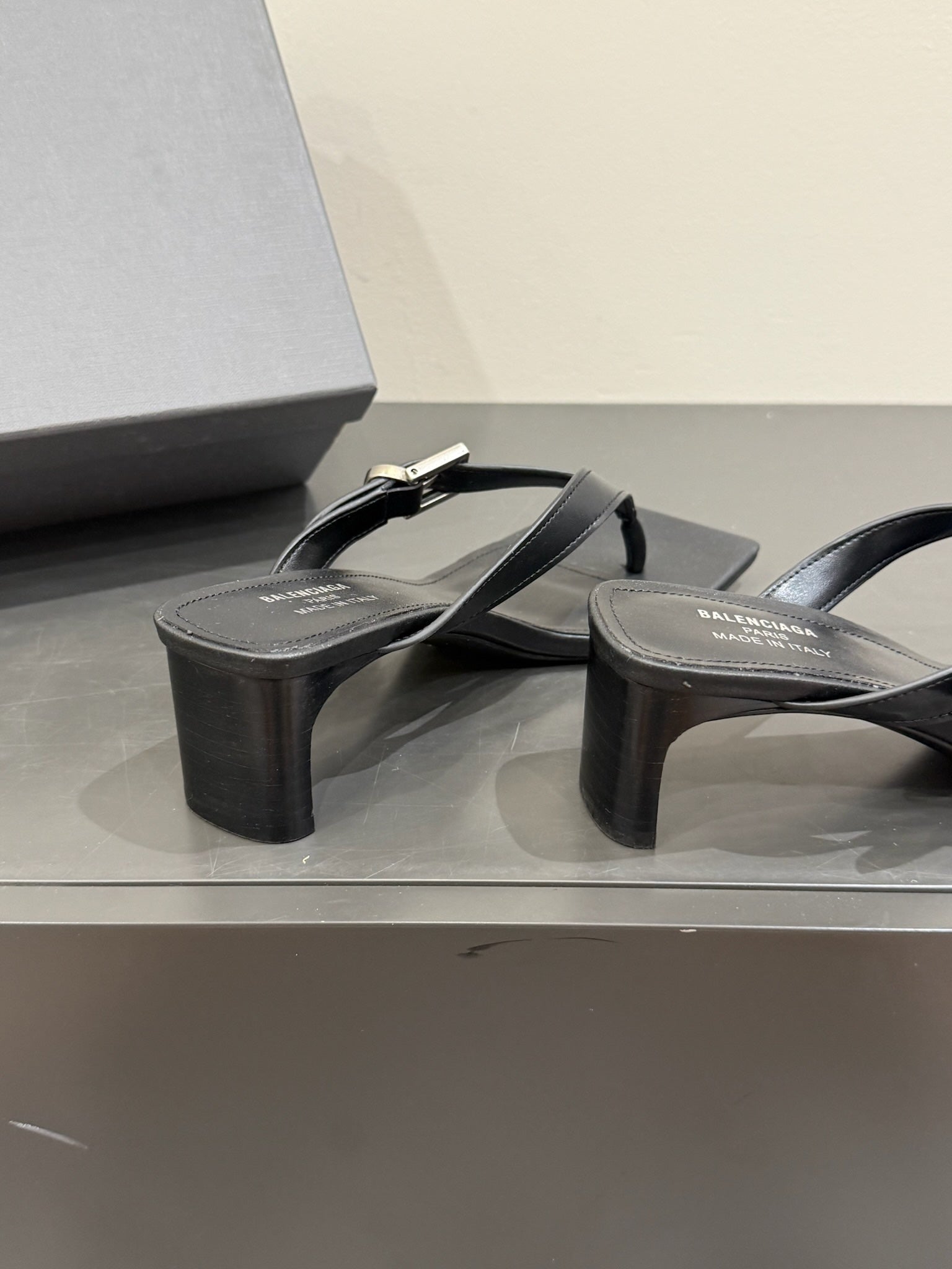 BALENCIAGA 25S HIGH-HEELED FLIP-FLOPS IN BLACK CALFSKIN WITH SILVER HARDWARE