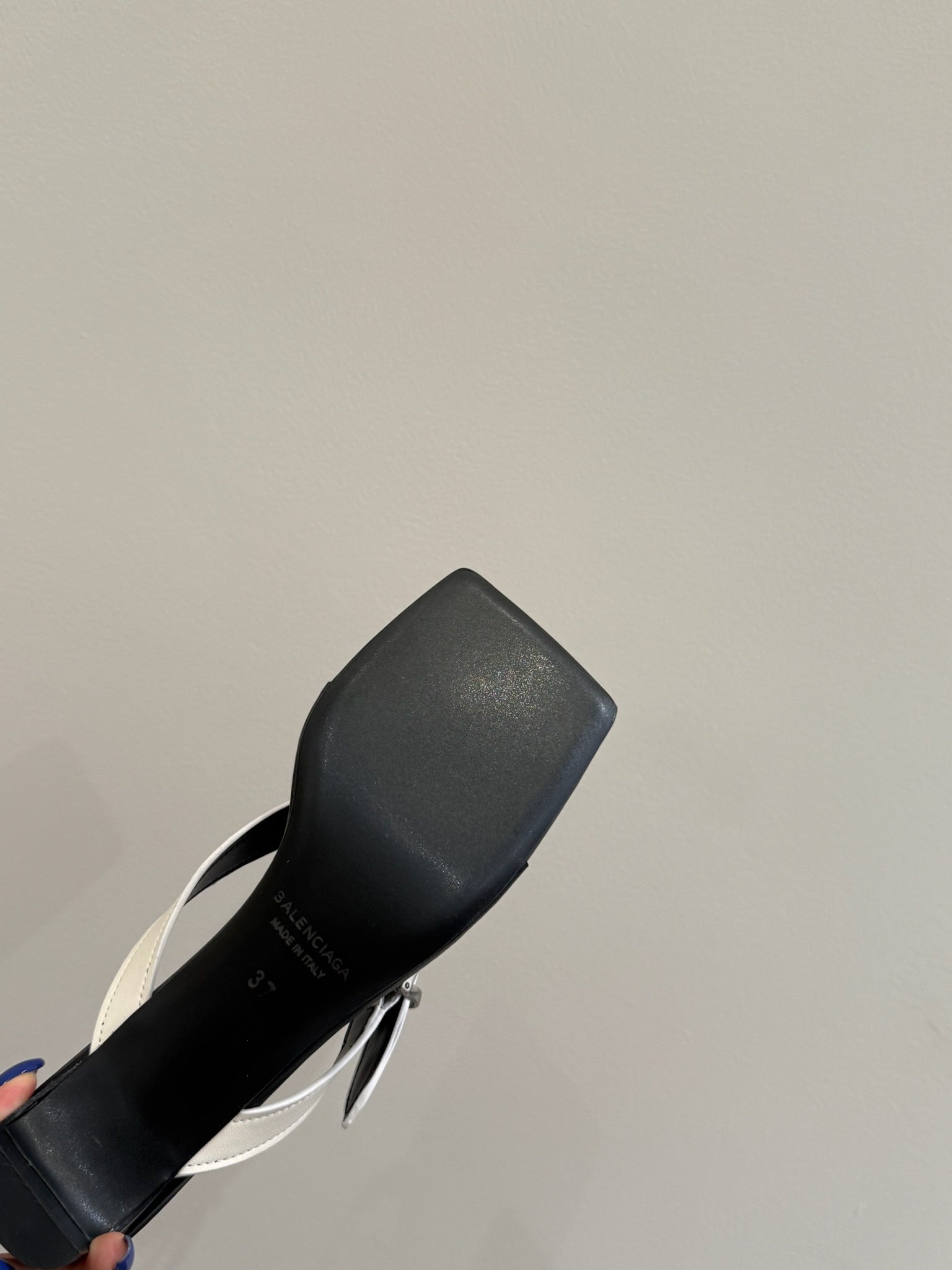BALENCIAGA 25S HIGH-HEELED FLIP-FLOPS IN WHITE MIX BLACK CALFSKIN WITH SILVER HARDWARE