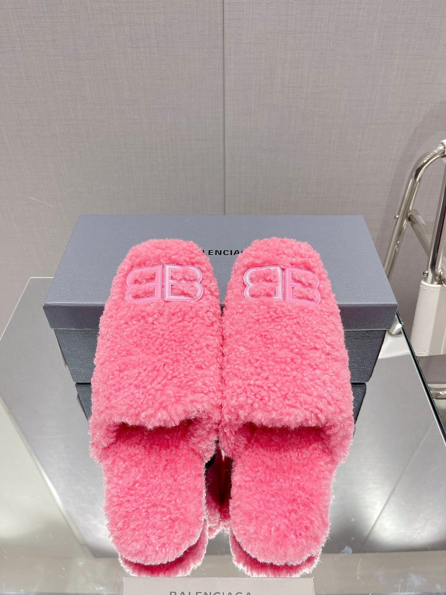 BALENCIAGA 25S MULES IN PINK WOOL WITH LOGO