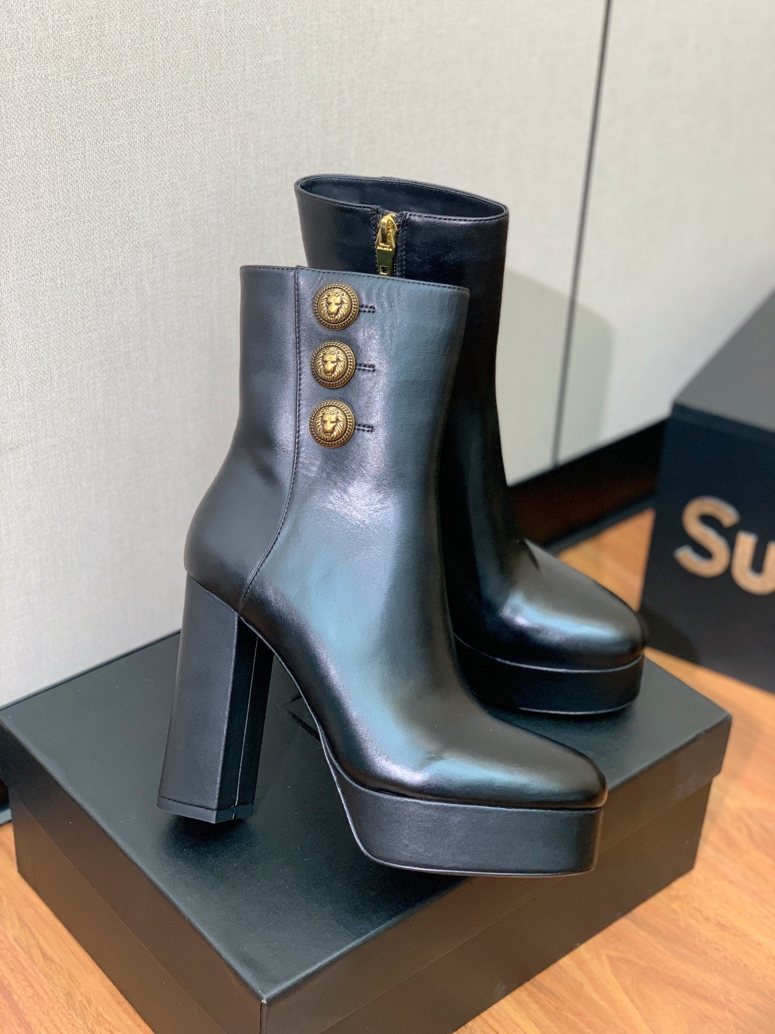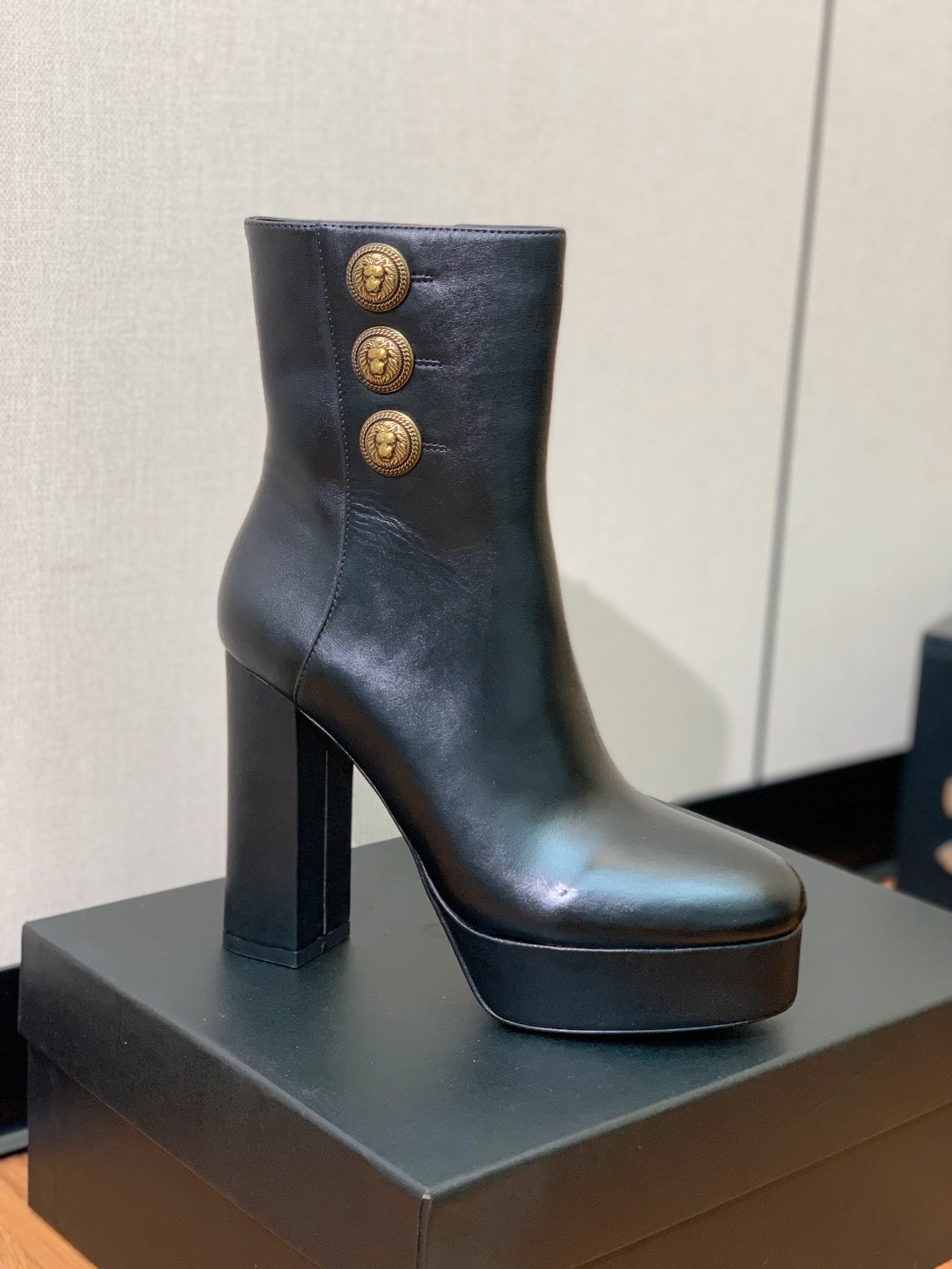 BALMAIN 26S ANKLE BOOTS 100 MM IN BLACK CALFSKIN