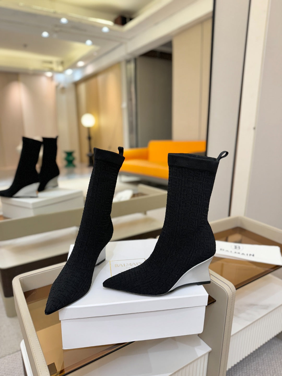 BALMAIN 26S BOOT 75 MM IN BLACK FLYKNIT