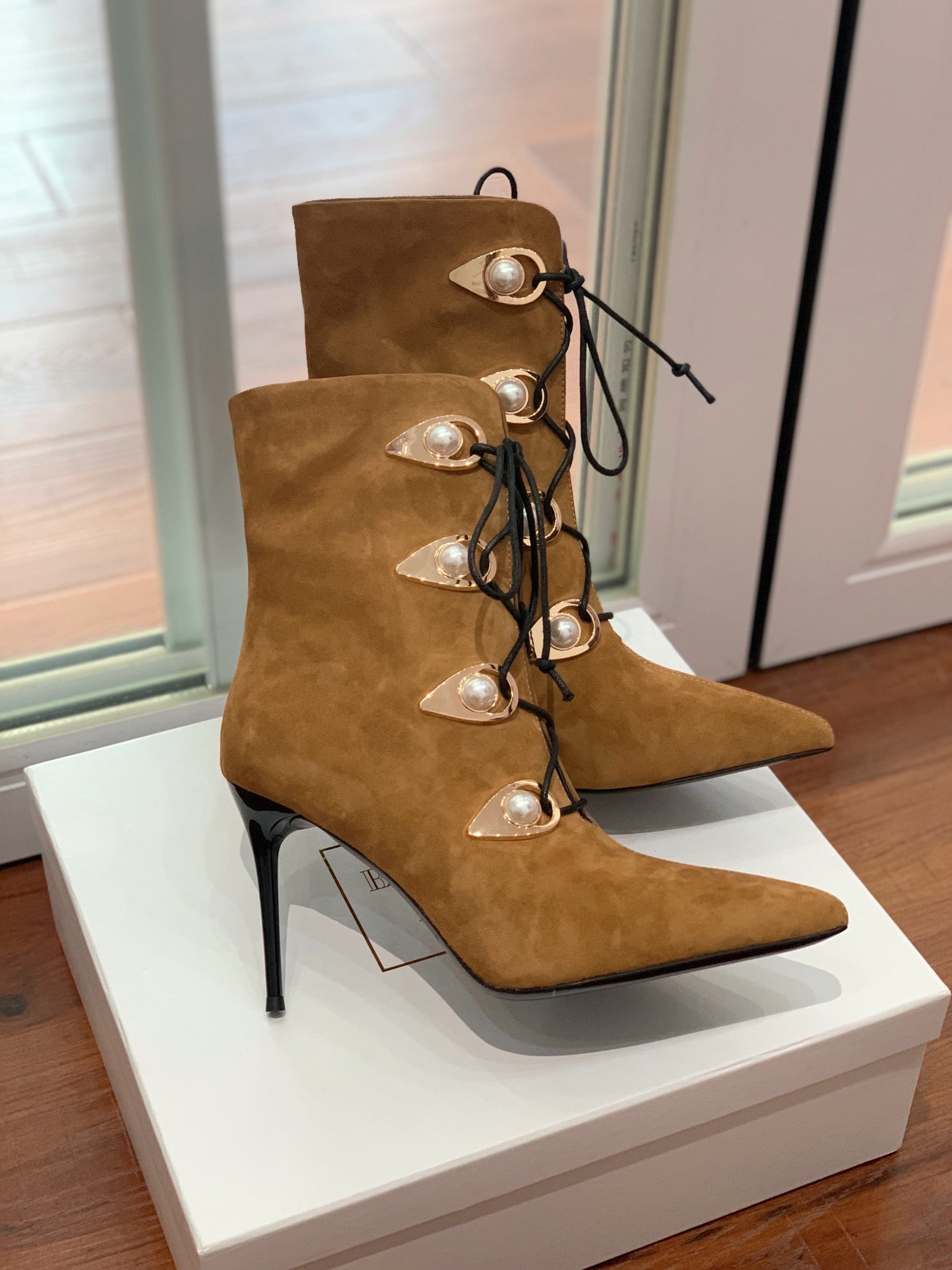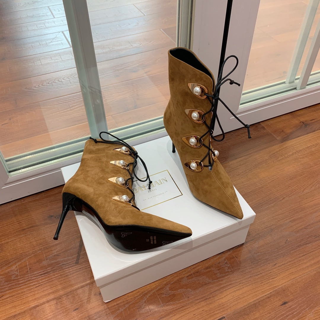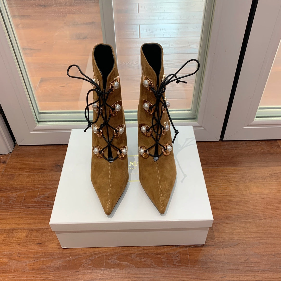 BALMAIN 26S BOOT 95 MM IN BROWN SUEDE PEARL BUTTON