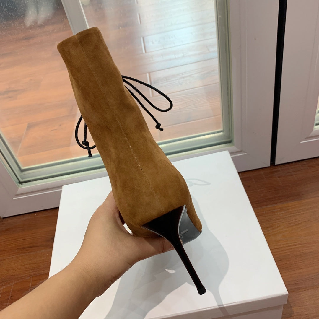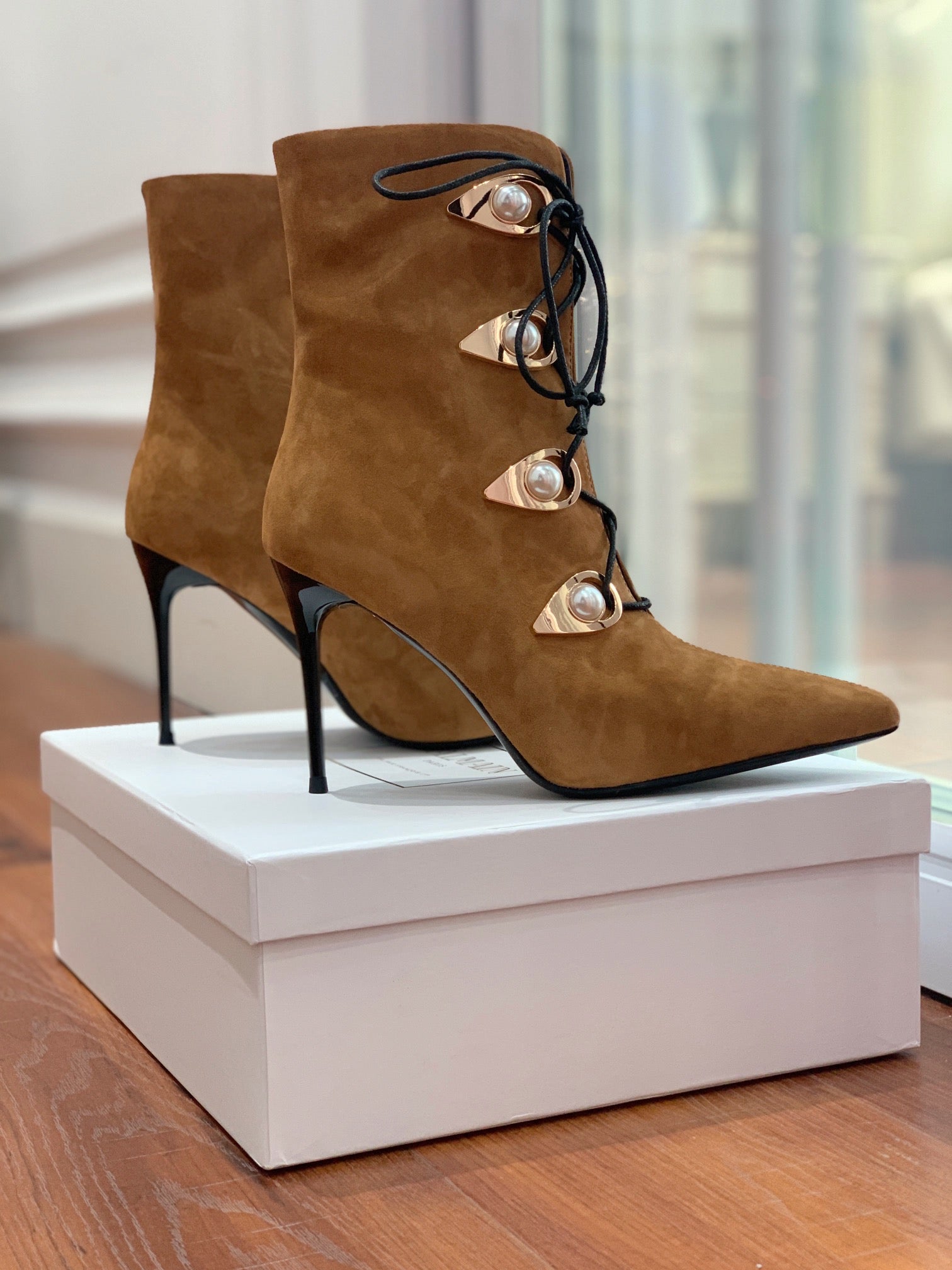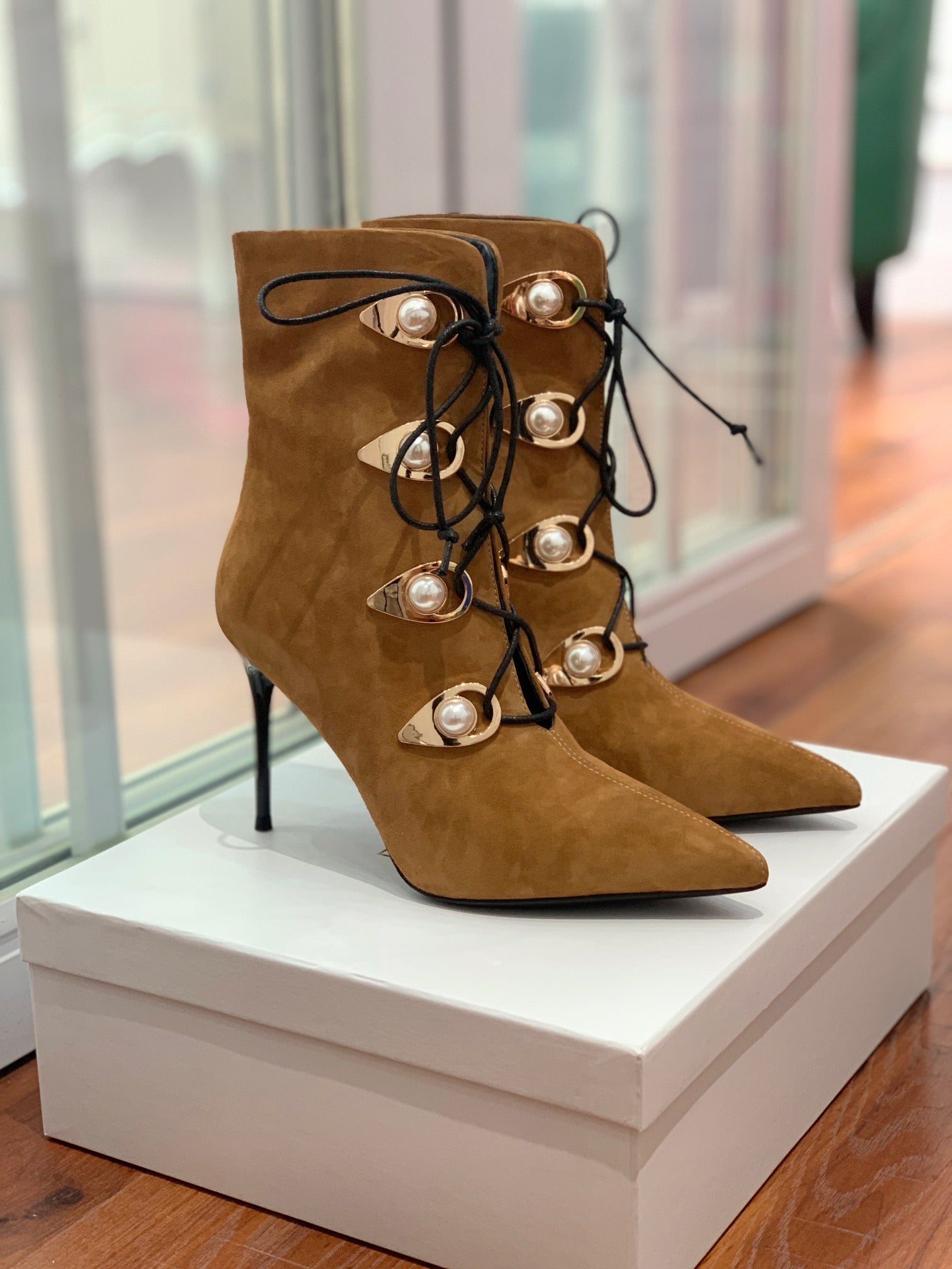 BALMAIN 26S BOOT 95 MM IN BROWN SUEDE PEARL BUTTON