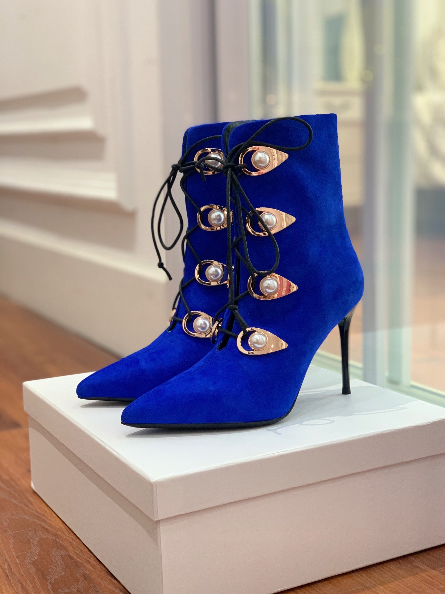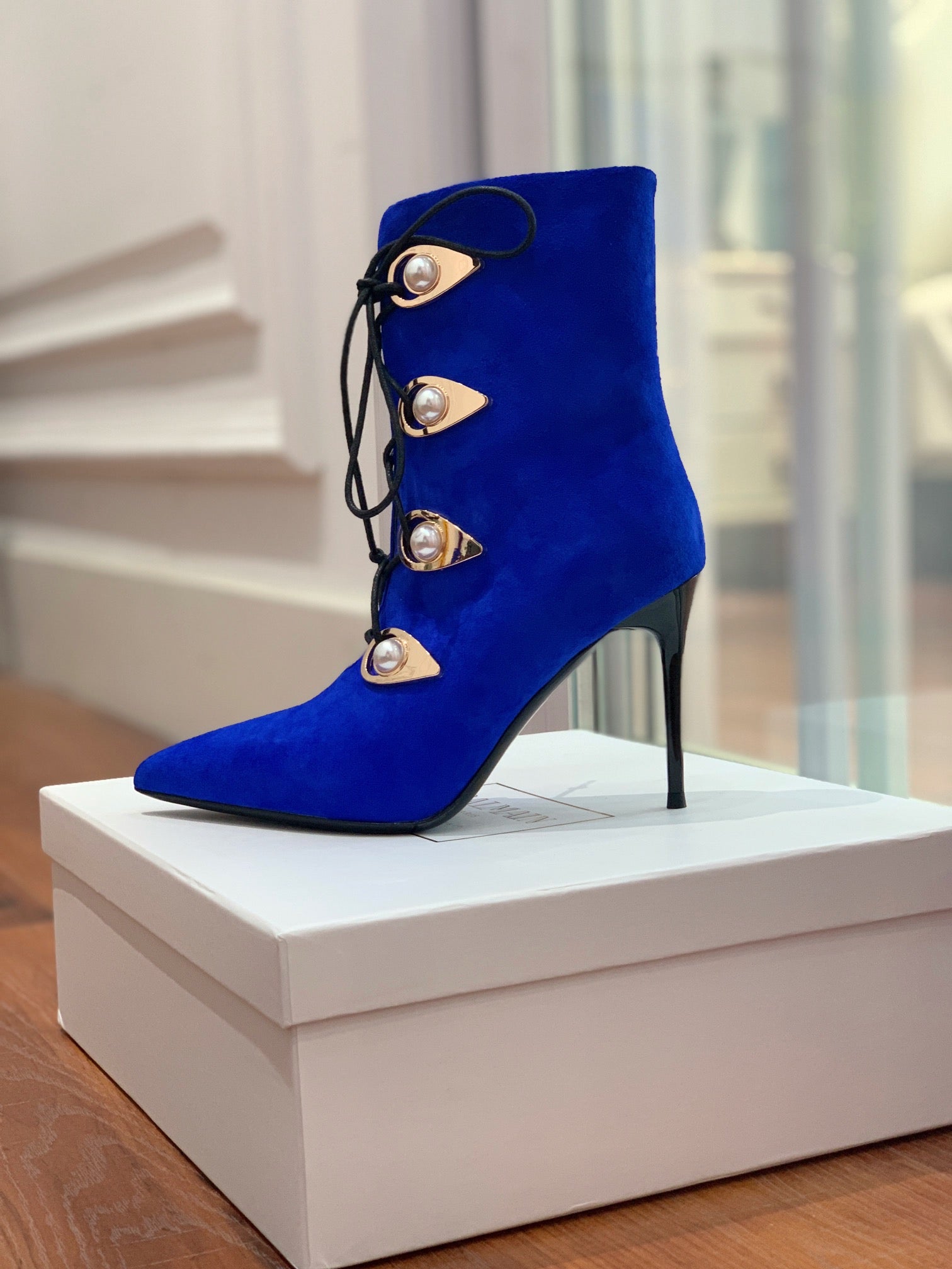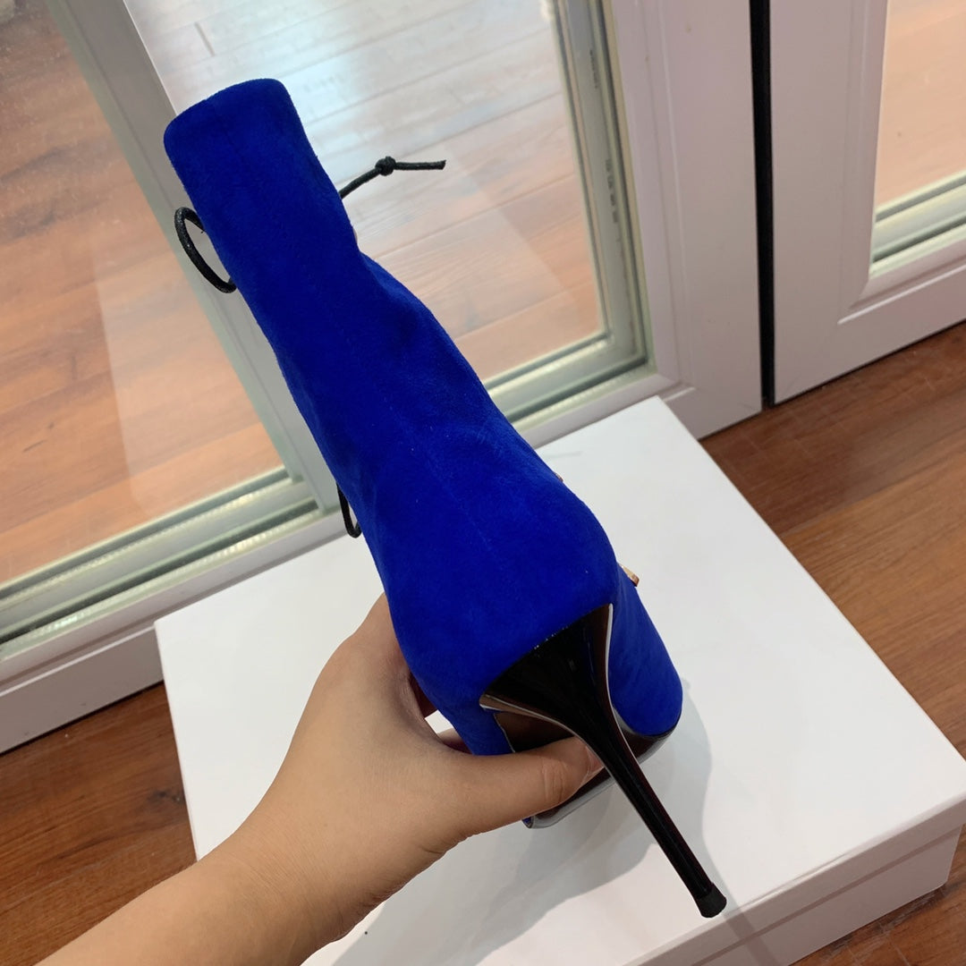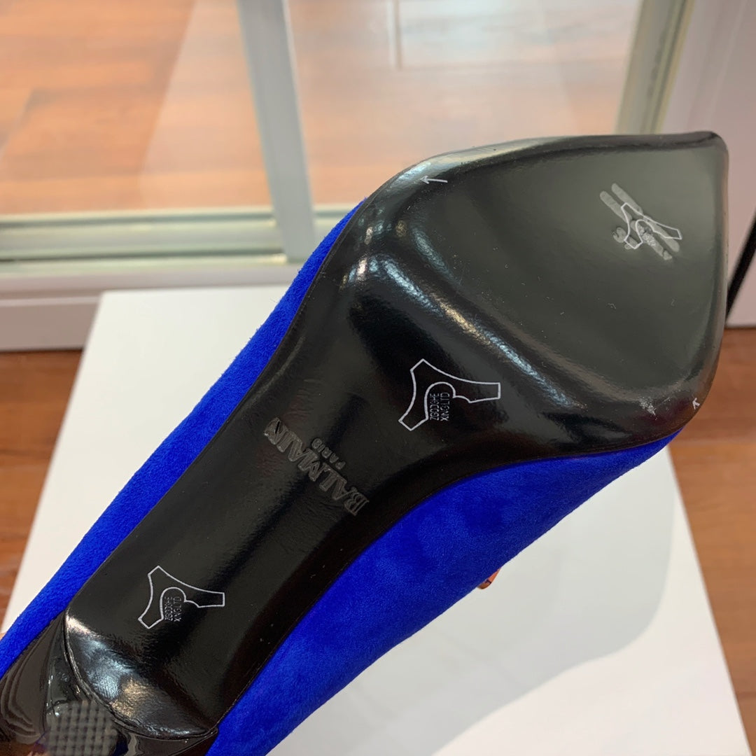 BALMAIN 26S BOOT 95 MM IN DARK BLUE SUEDE PEARL BUTTON