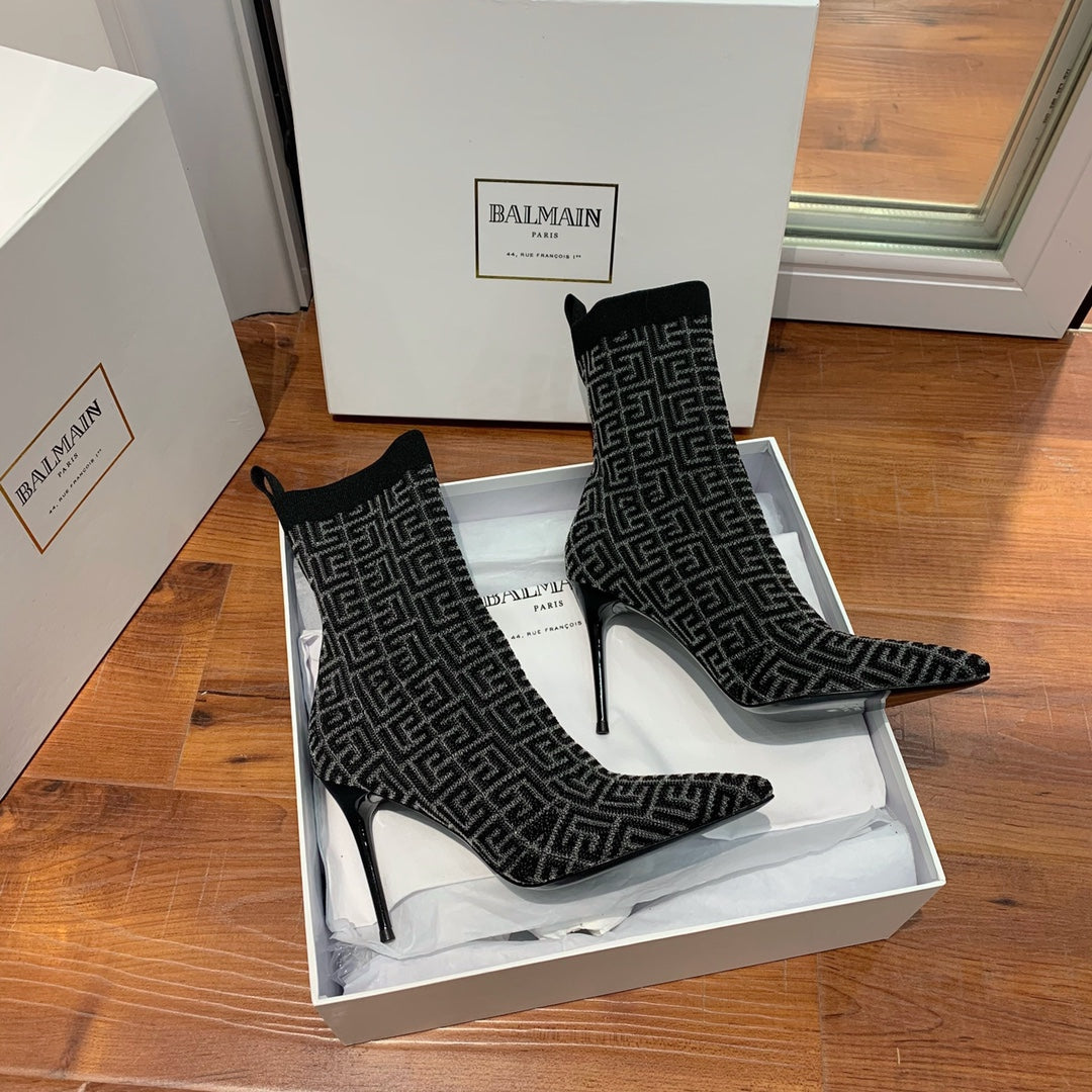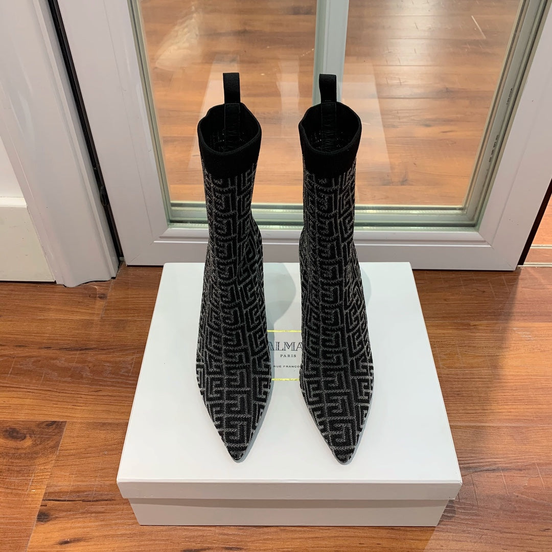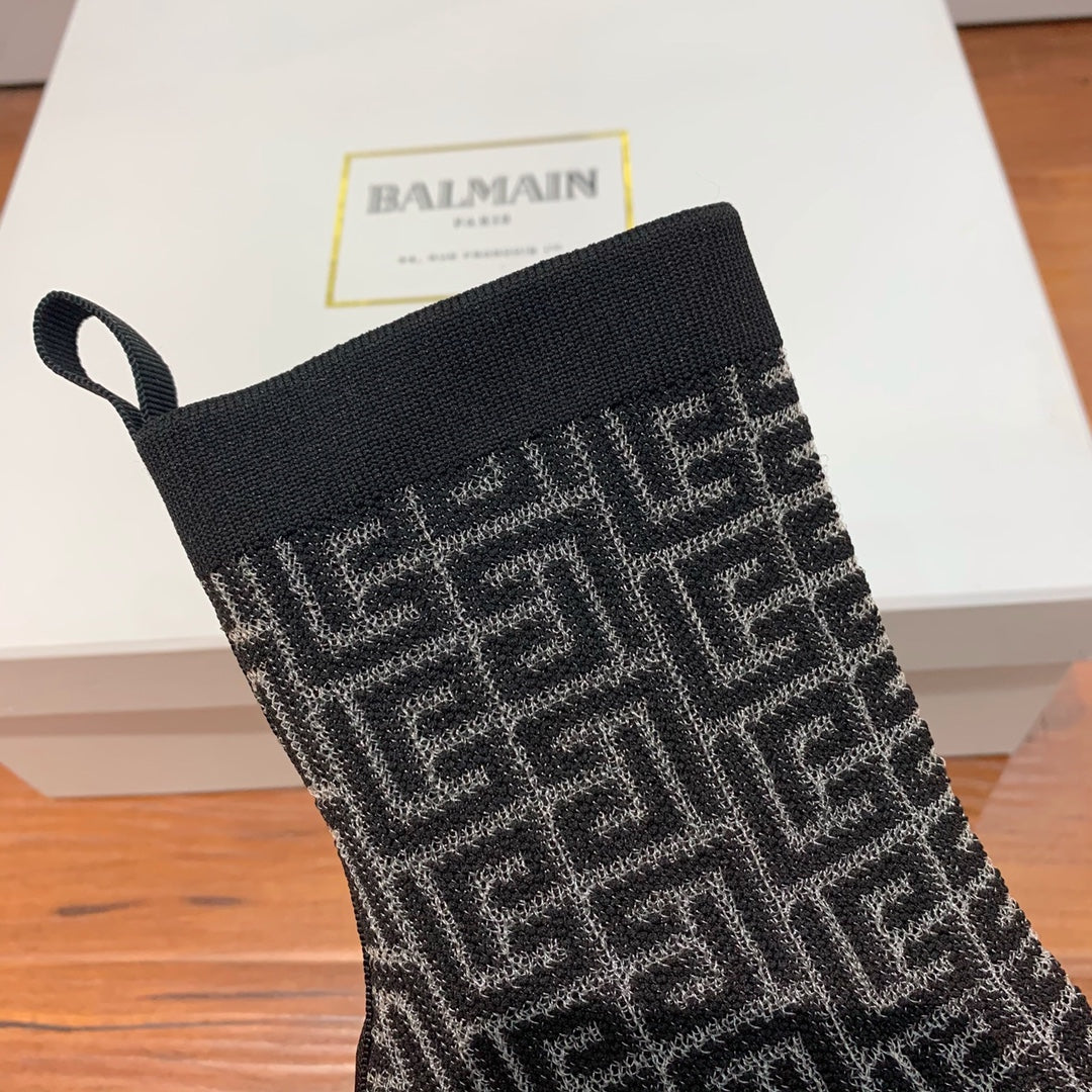 BALMAIN 26S BOOTS 105 MM IN BLACK FLYKNIT STYLE 19