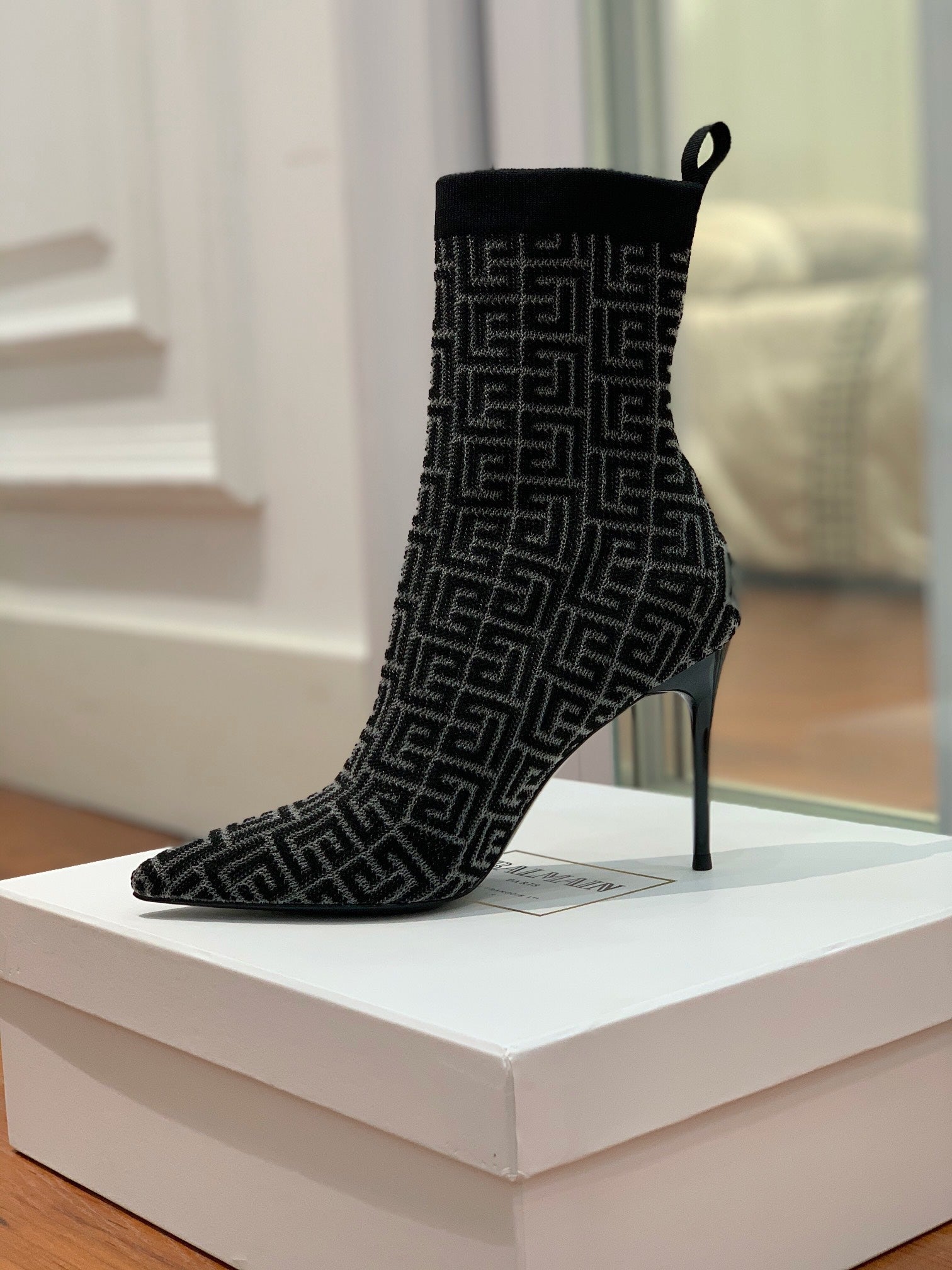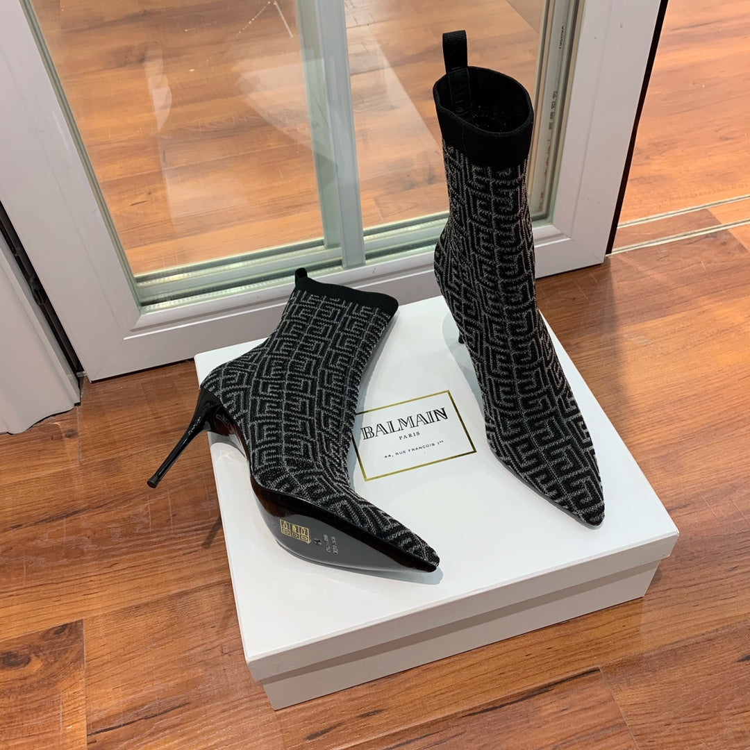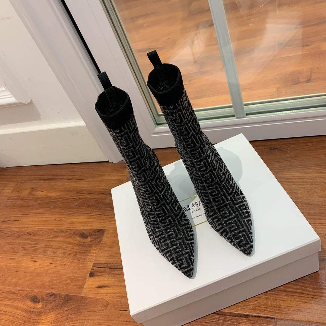 BALMAIN 26S BOOTS 105 MM IN BLACK FLYKNIT STYLE 19