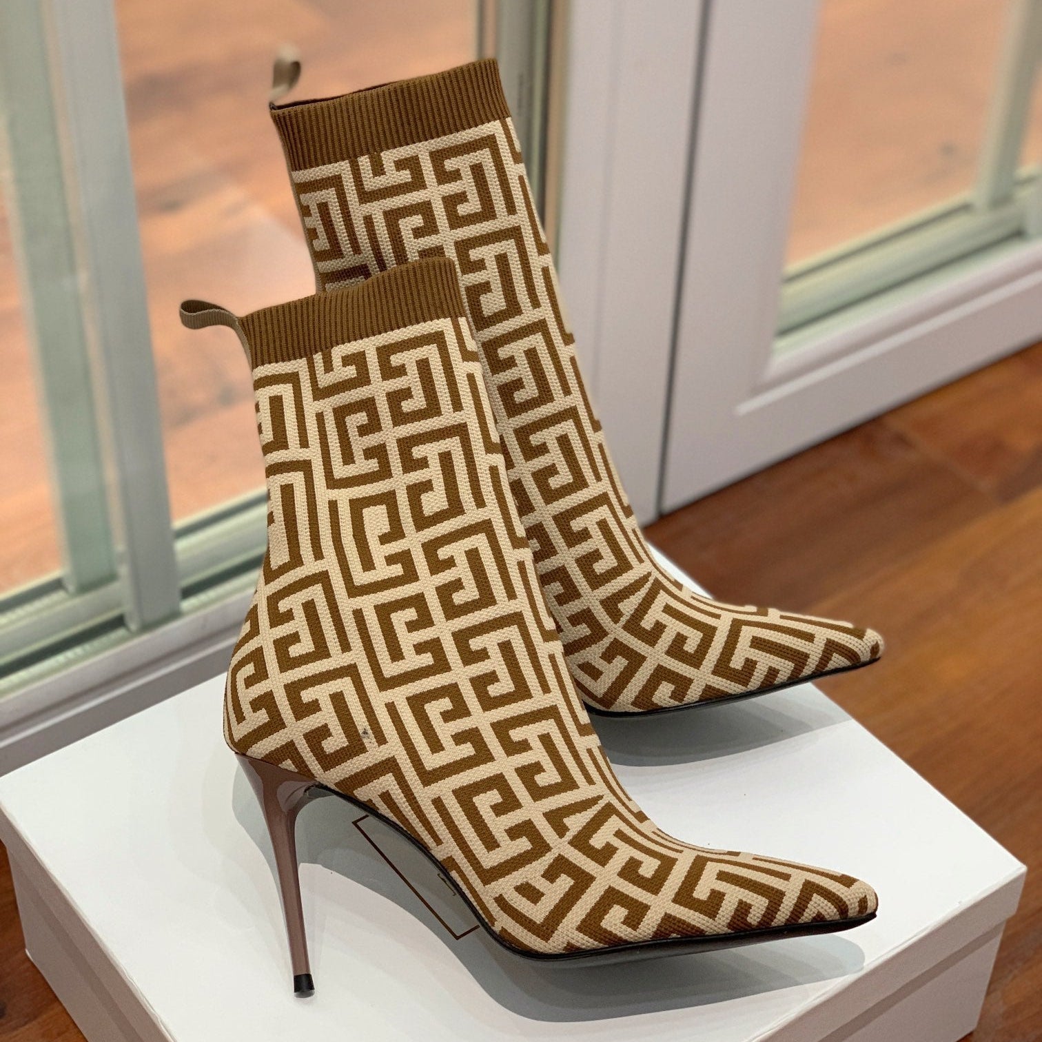 BALMAIN 26S BOOTS 105 MM IN BROWN AND BEIGE FLYKNIT STYLE 10