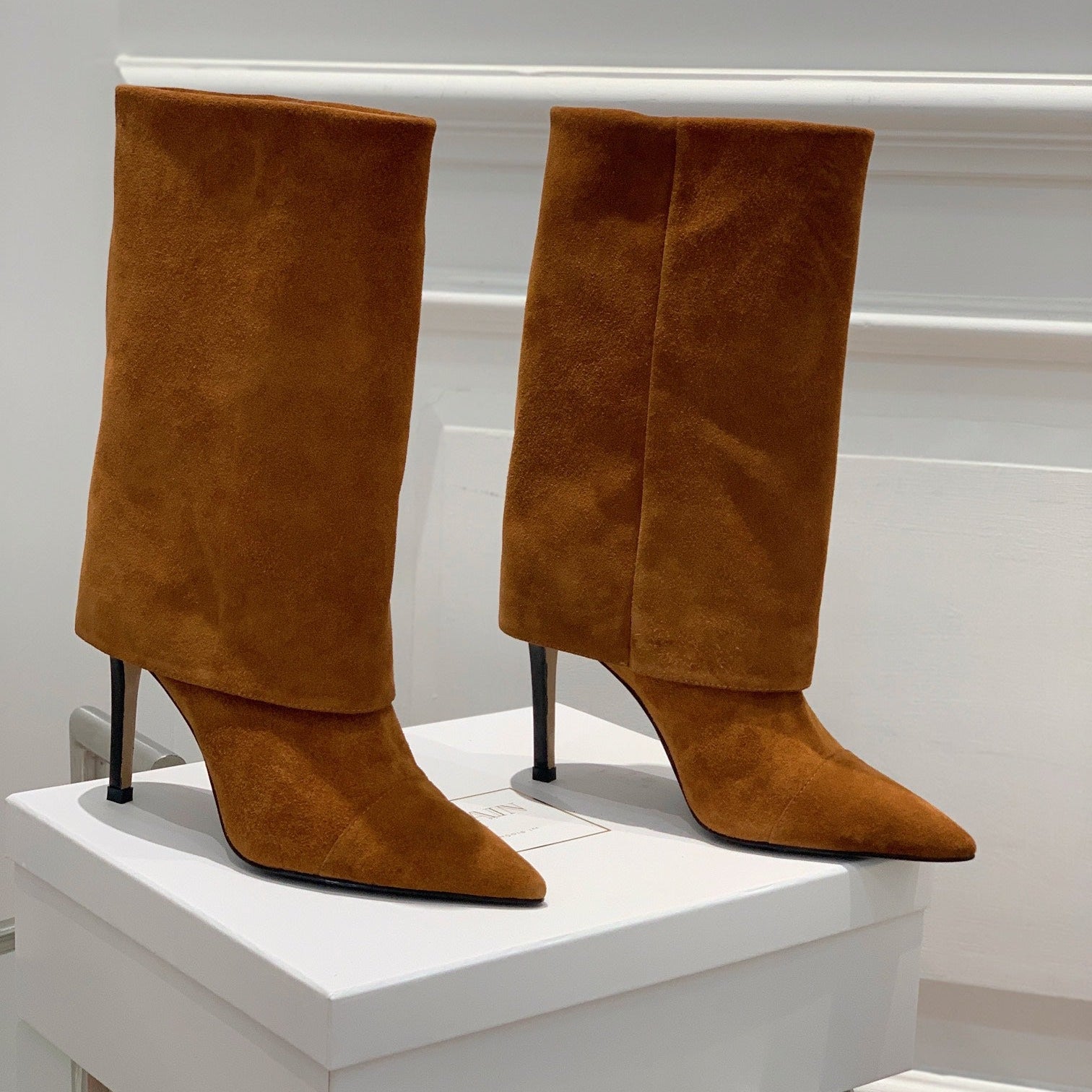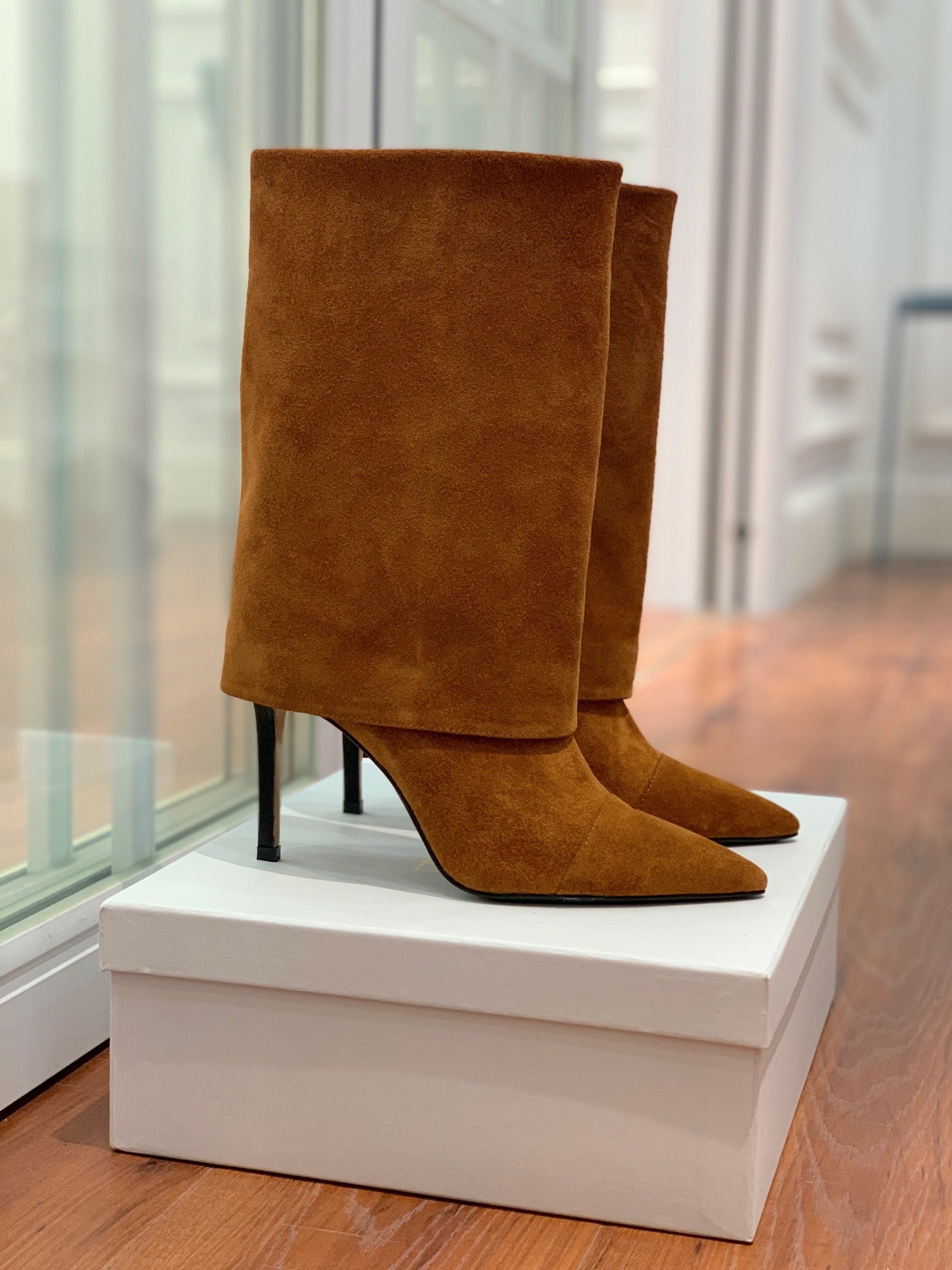 BALMAIN 26S BOOTS 105 MM IN BROWN SUEDE