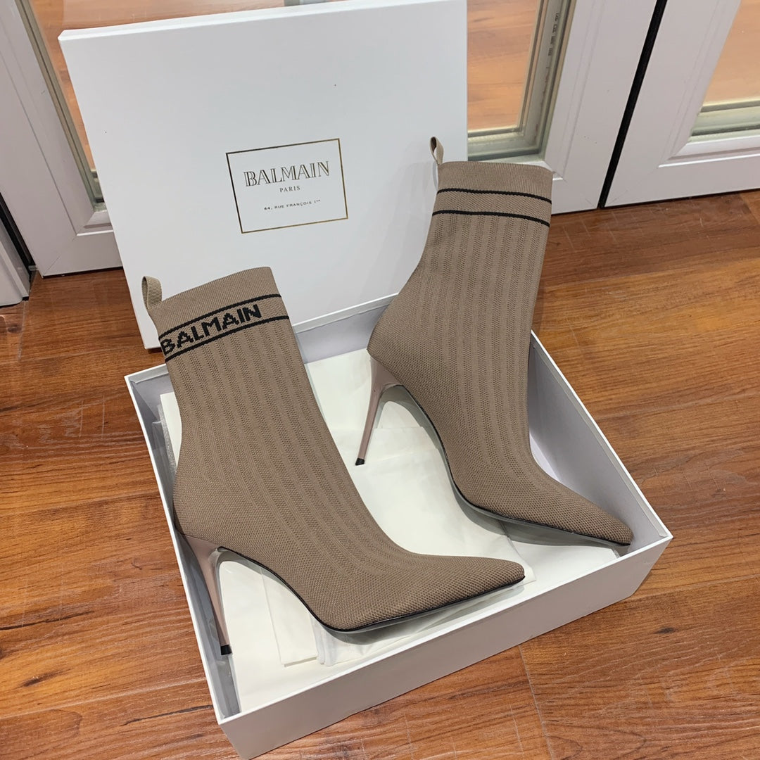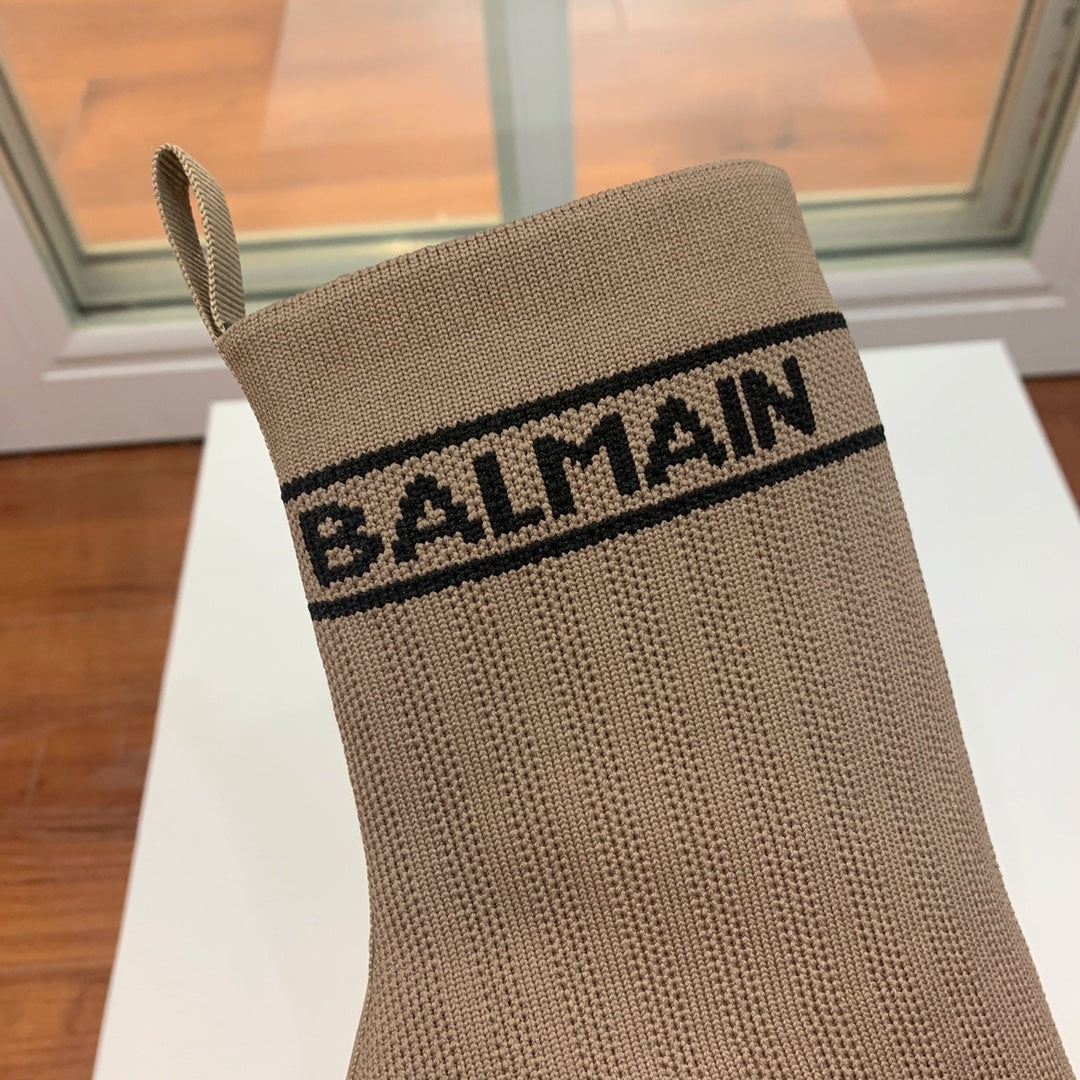 BALMAIN 26S BOOTS 105 MM IN TAUPE BROWN FLYKNIT STYLE 17
