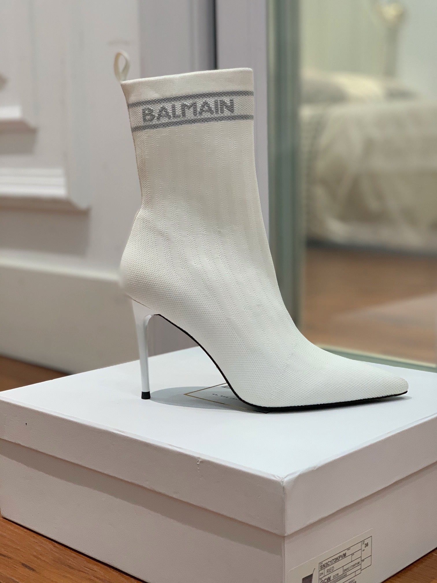 BALMAIN 26S BOOTS 105 MM IN WHITE FLYKNIT STYLE 15