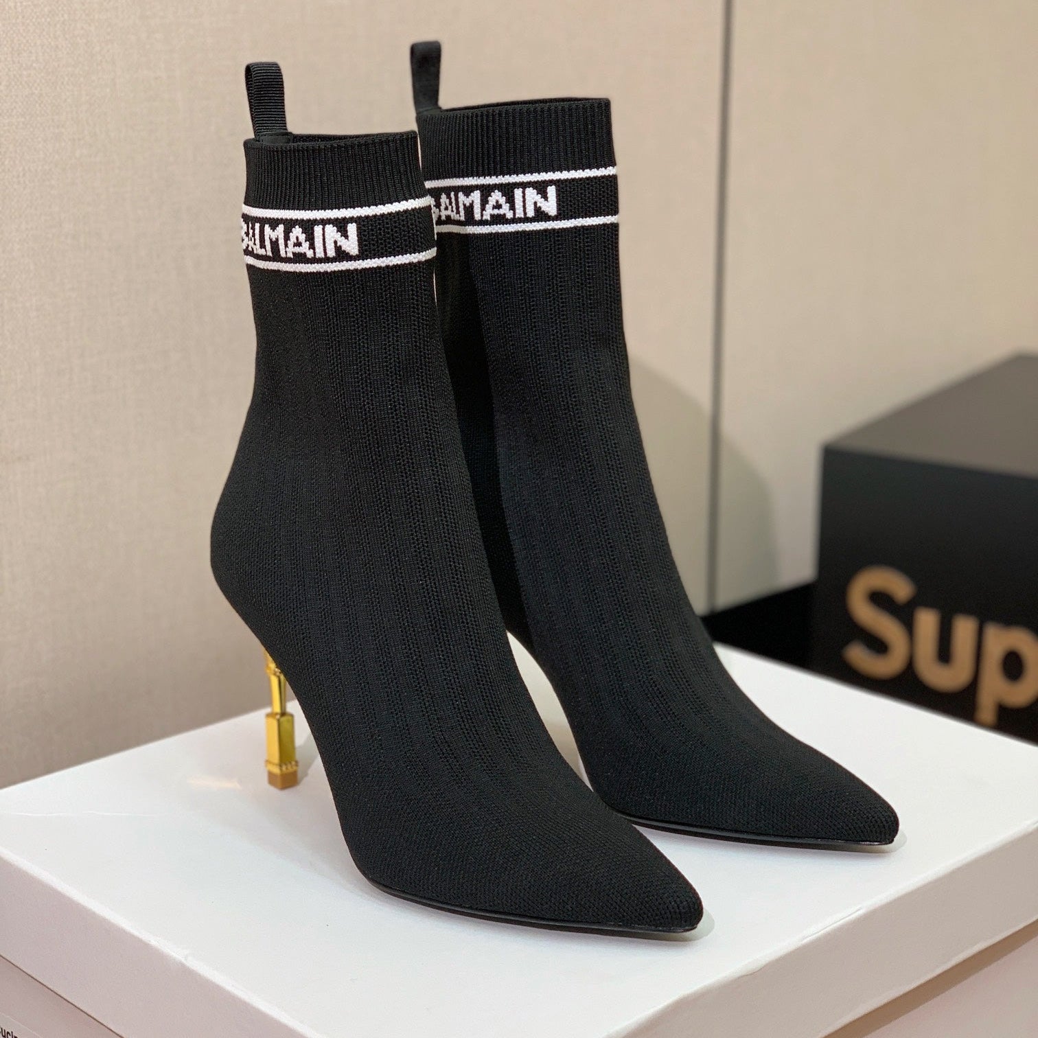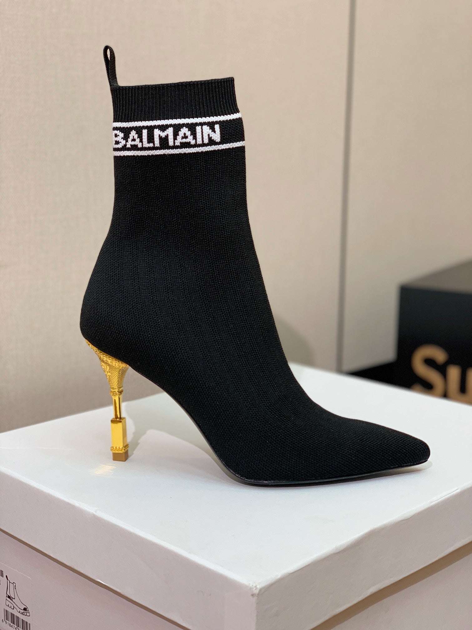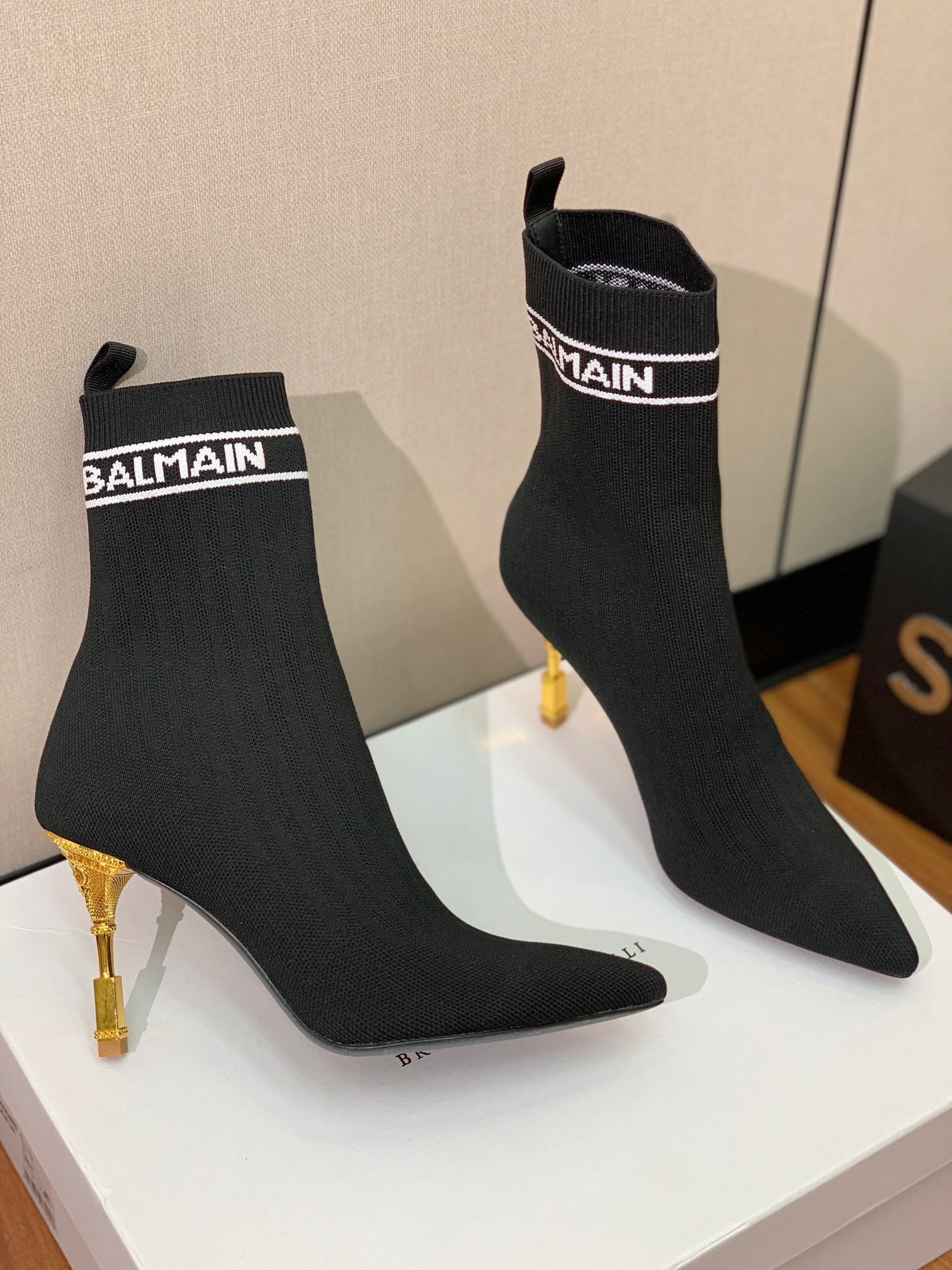 BALMAIN 26S BOOTS 95 MM IN BLACK FLYKNIT STYLE 5