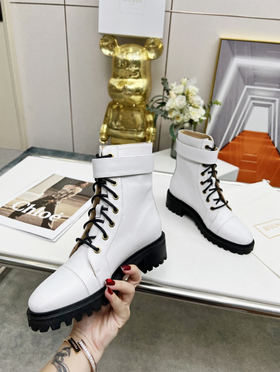 BALMAIN 26S BOOTS IN WHITE CALFSKIN