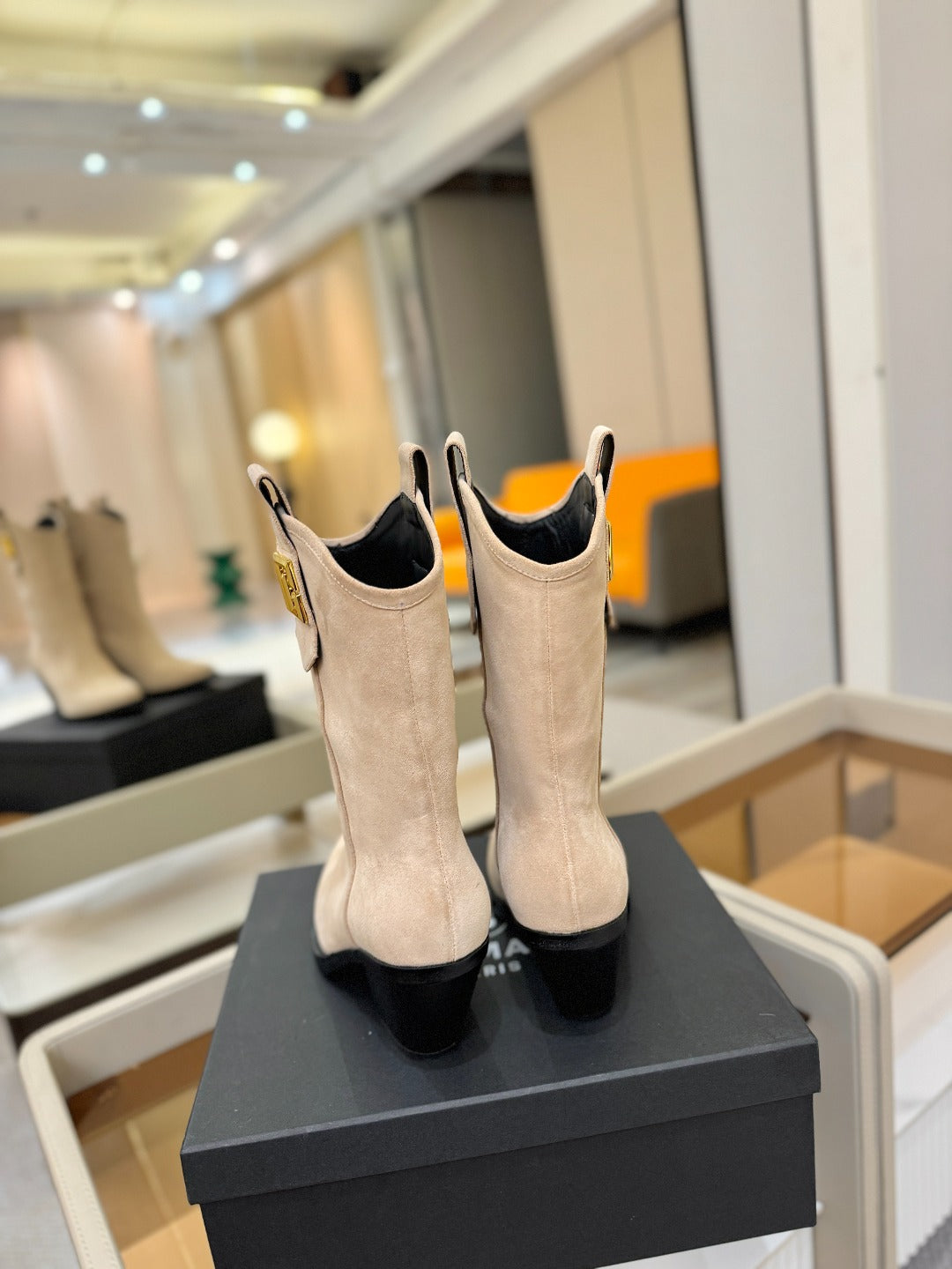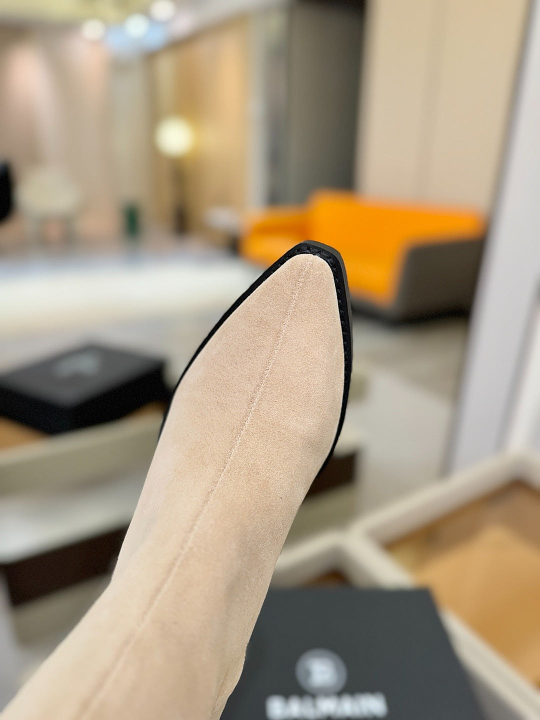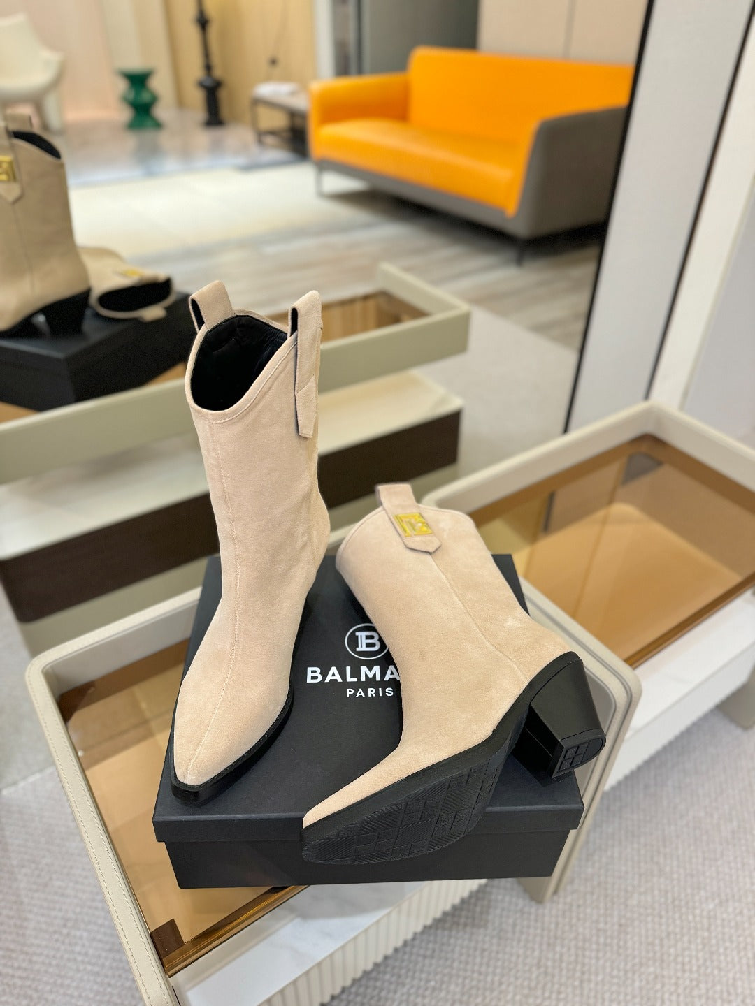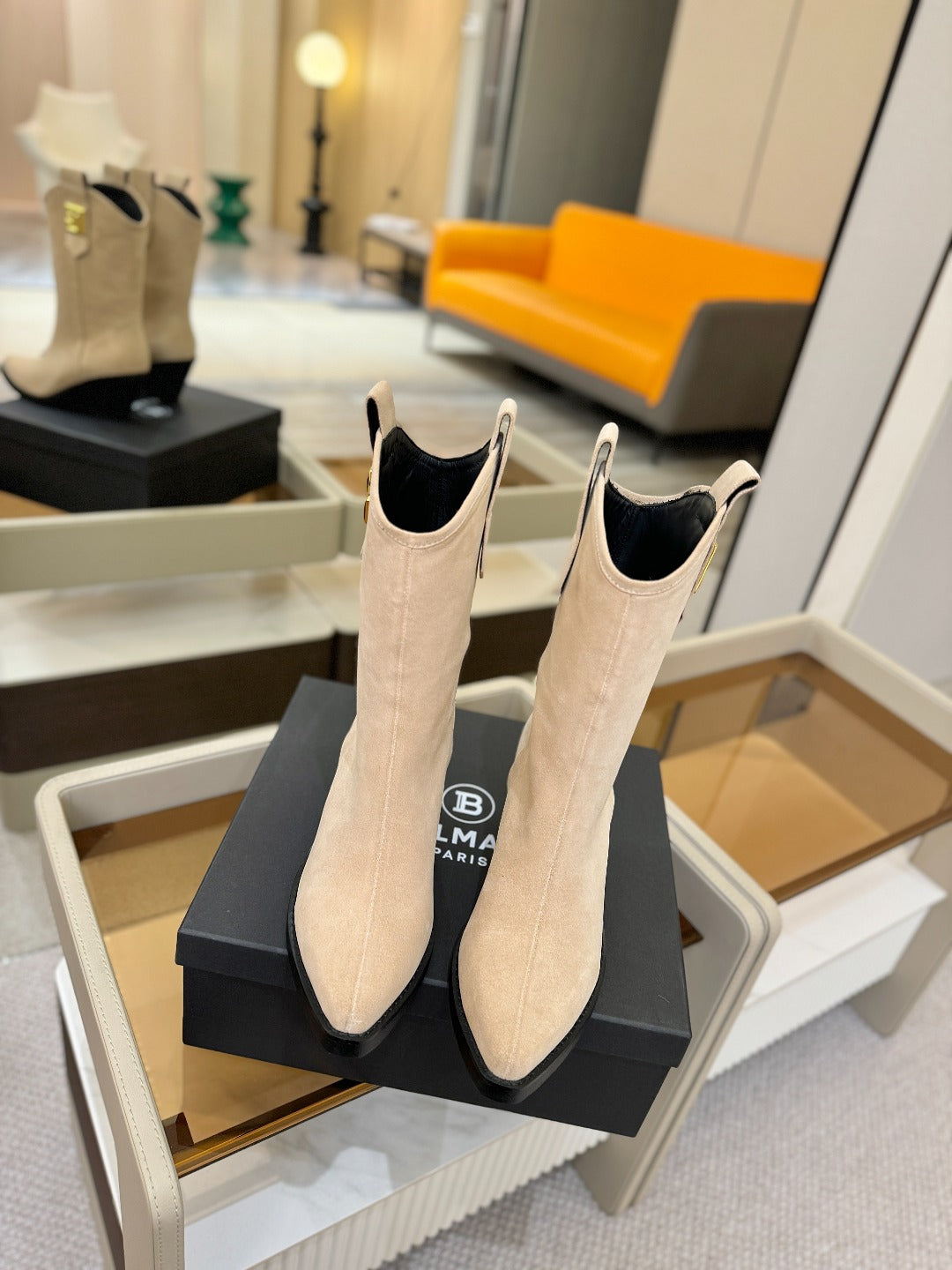 BALMAIN 26S COWBOY ANKLE BOOTS 65 MM IN BEIGE SUEDE
