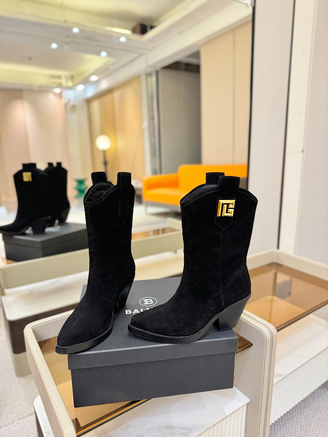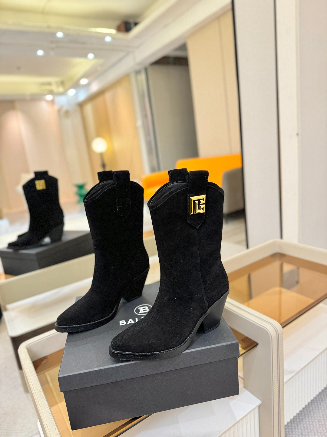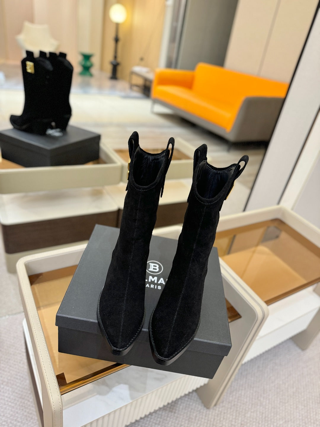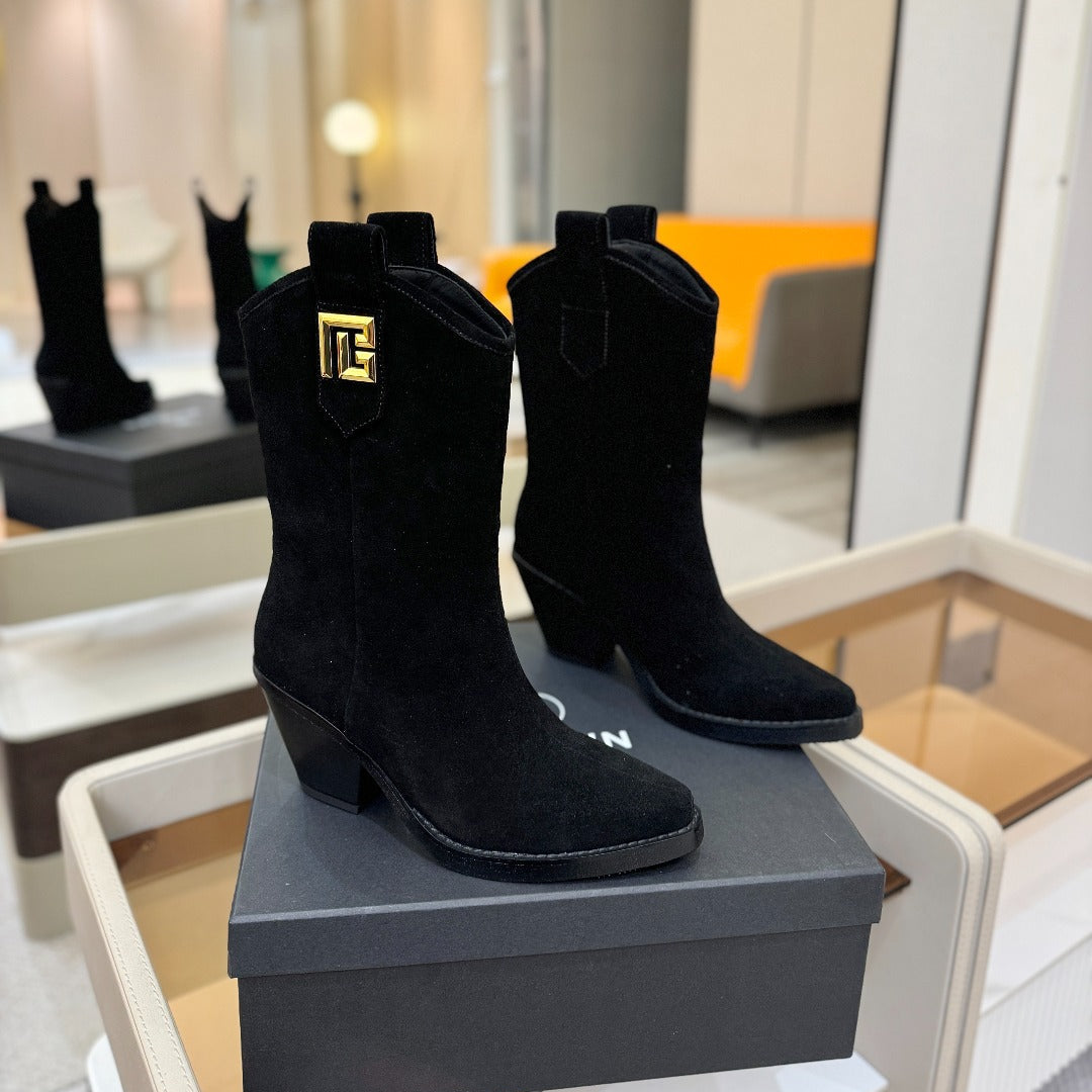 BALMAIN 26S COWBOY ANKLE BOOTS 65 MM IN BLACK SUEDE