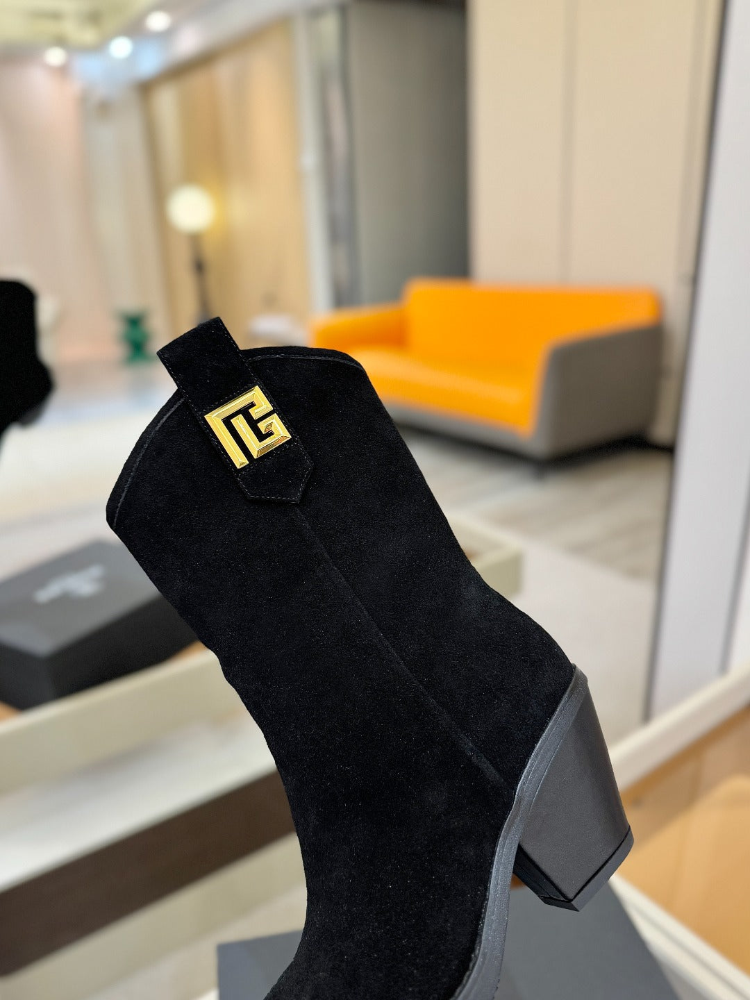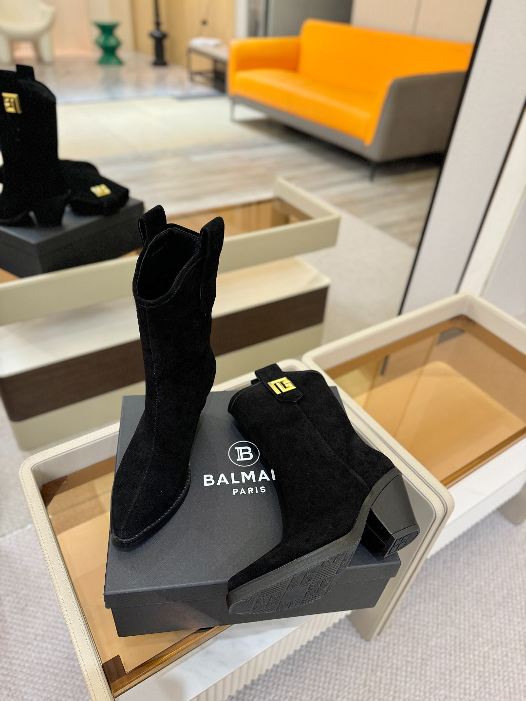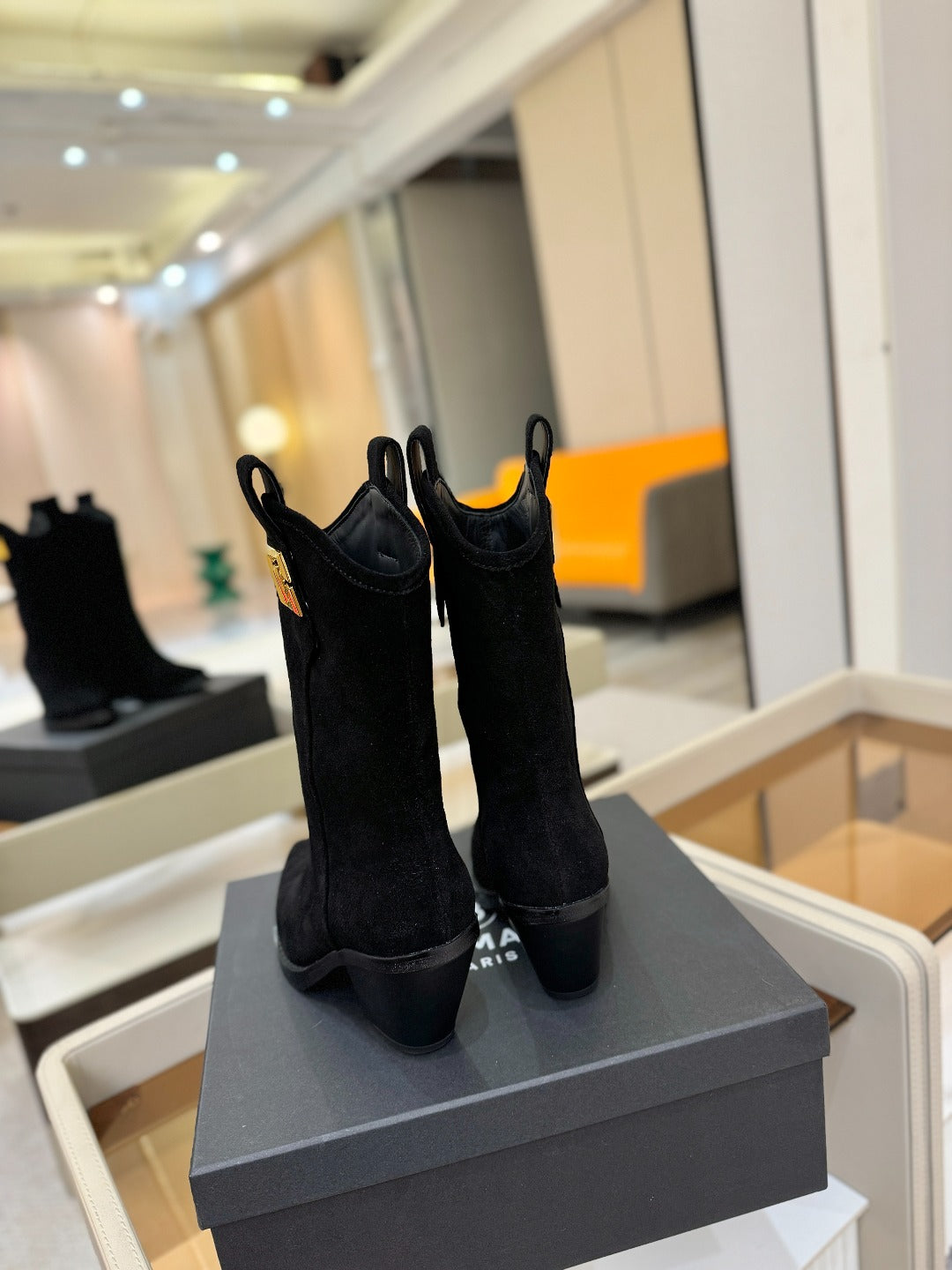 BALMAIN 26S COWBOY ANKLE BOOTS 65 MM IN BLACK SUEDE