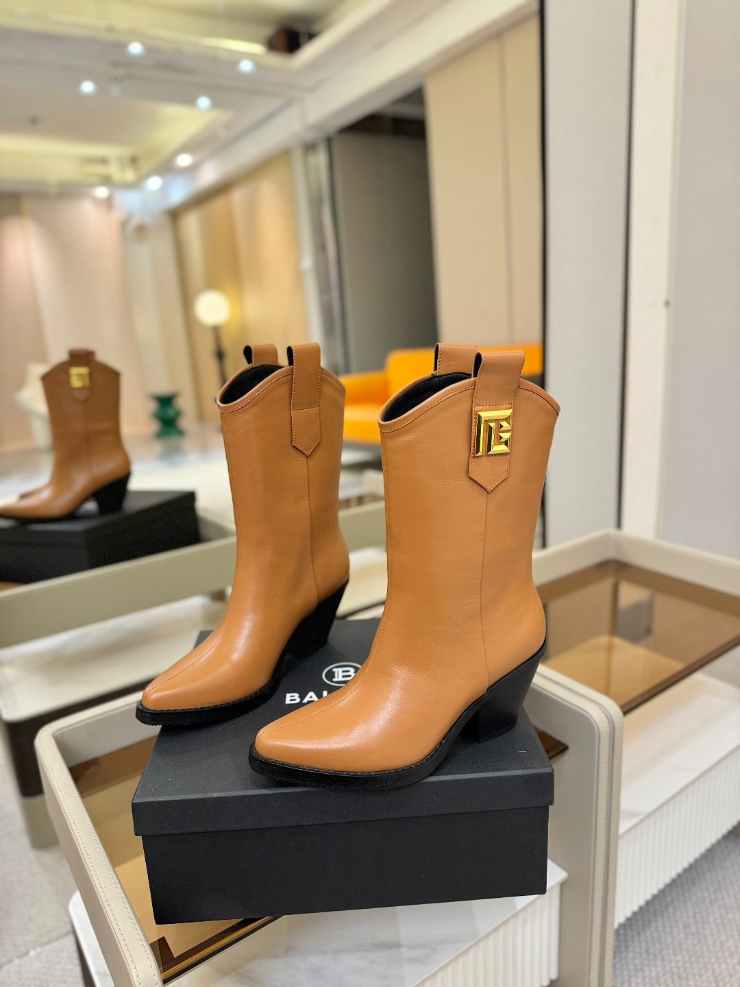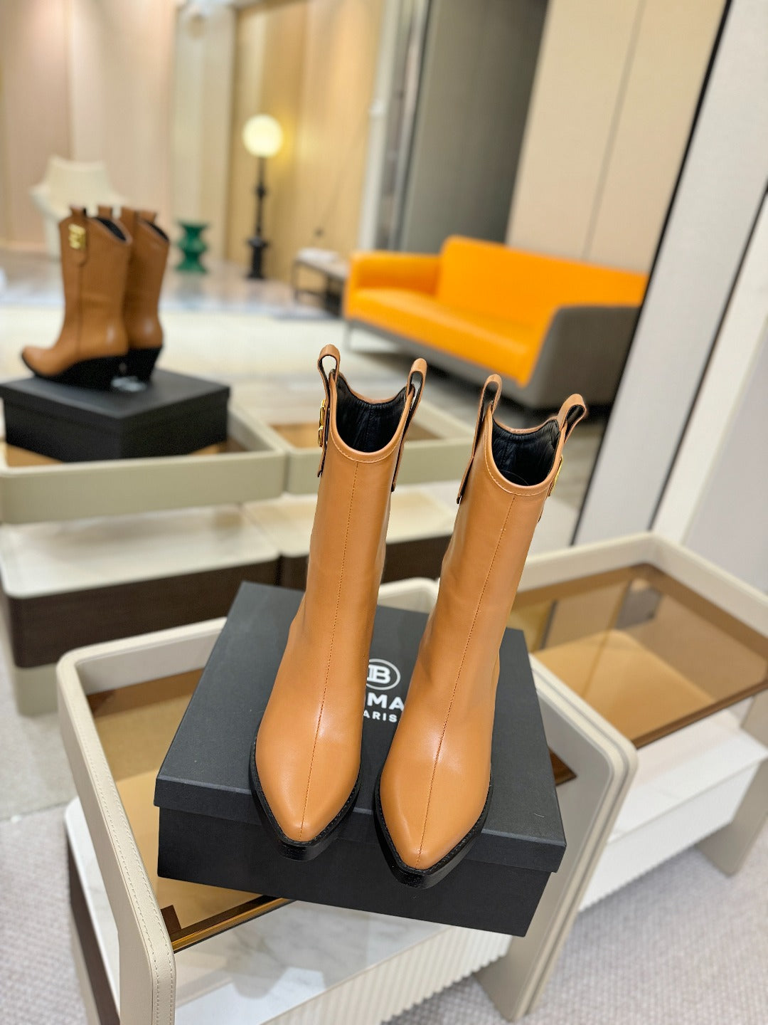 BALMAIN 26S COWBOY ANKLE BOOTS 65 MM IN BROWN CALFSKIN