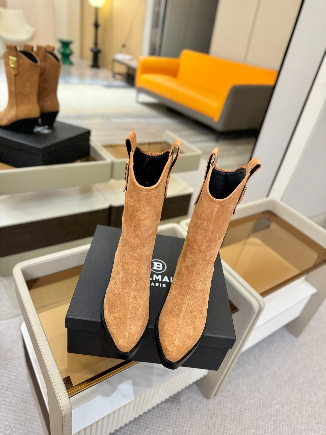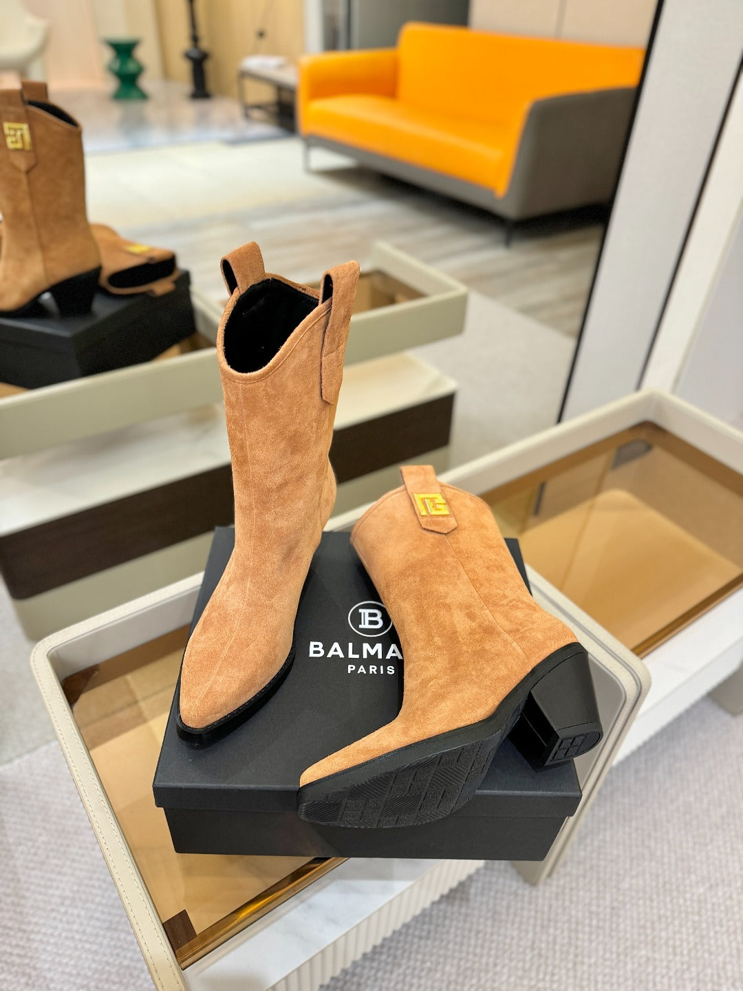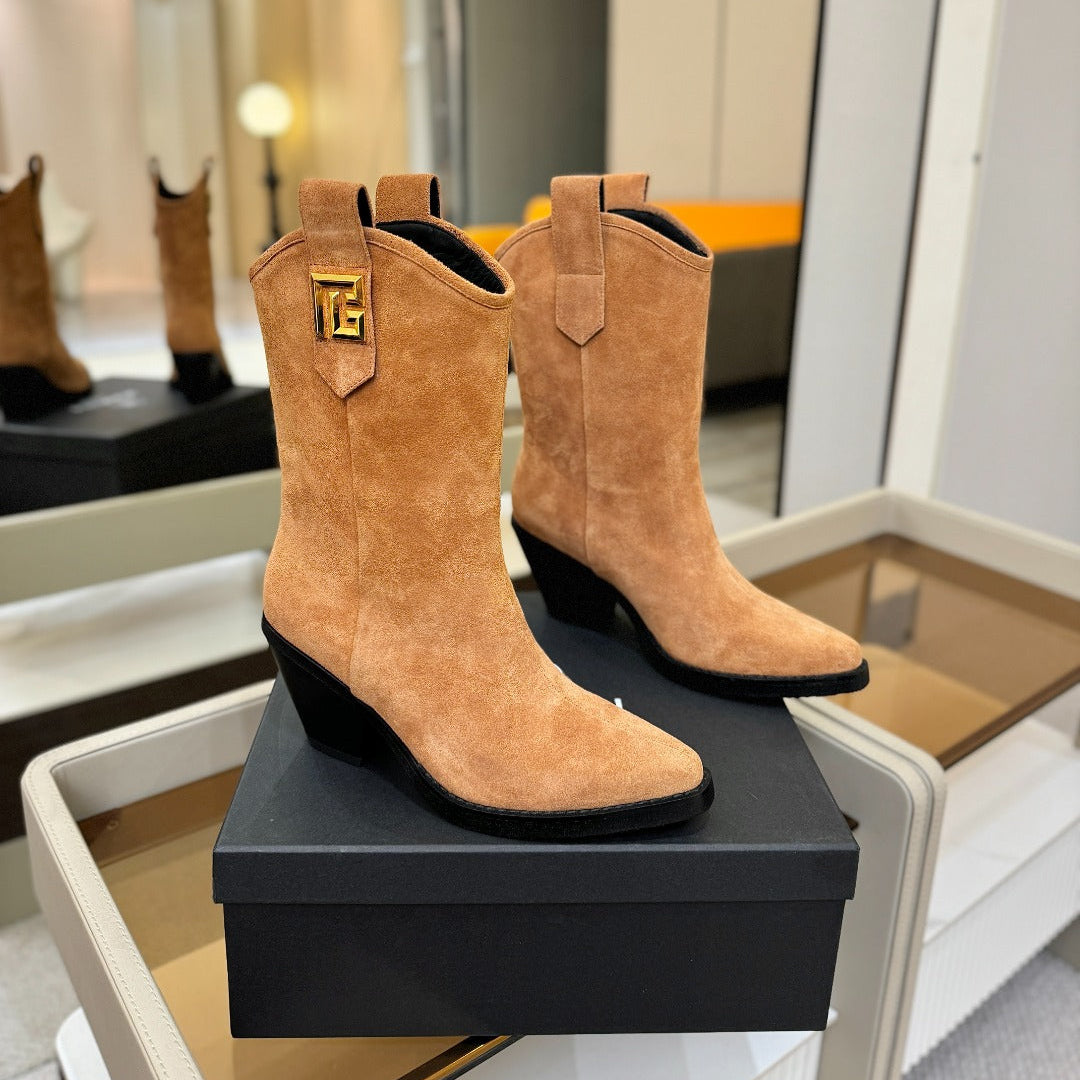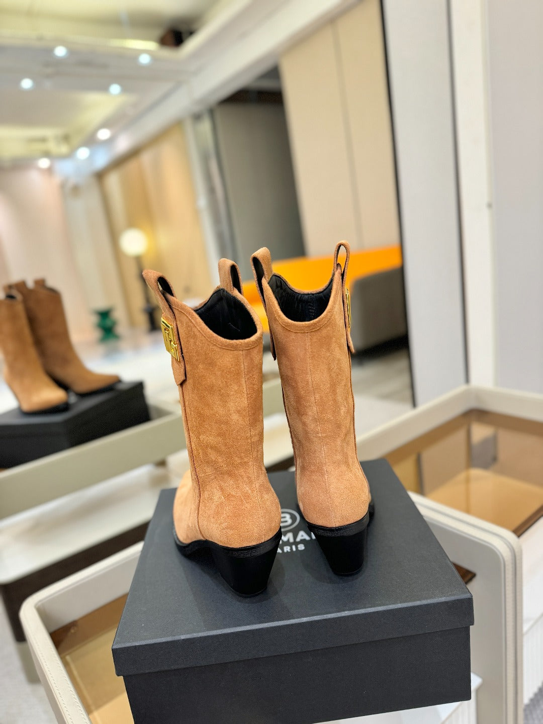 BALMAIN 26S COWBOY ANKLE BOOTS 65 MM IN BROWN SUEDE