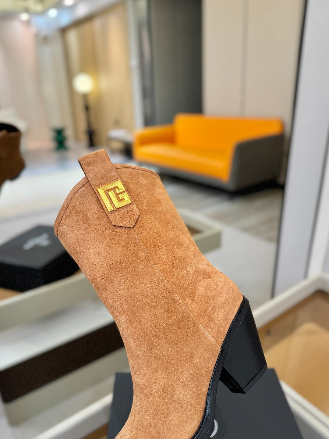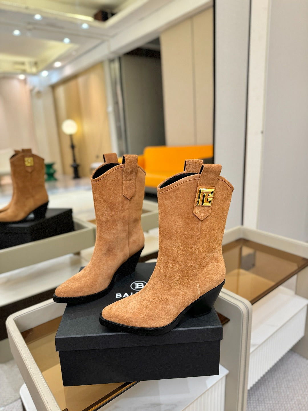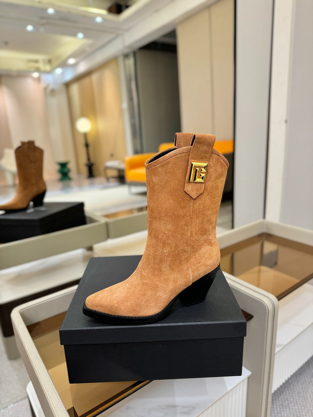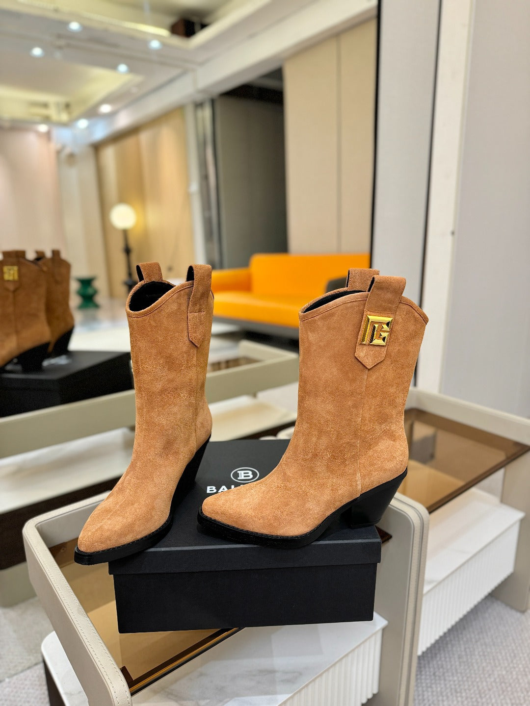 BALMAIN 26S COWBOY ANKLE BOOTS 65 MM IN BROWN SUEDE