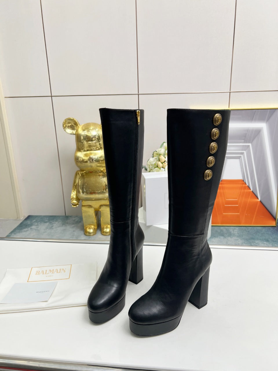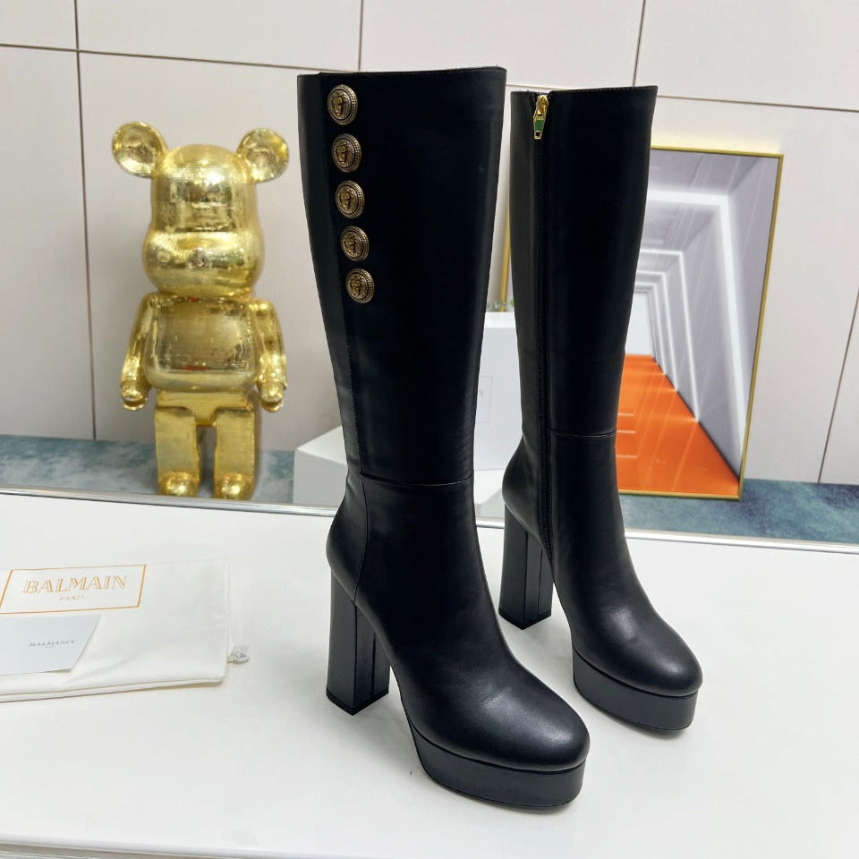 BALMAIN 26S HIGH BOOTS 115 MM IN BLACK CALFSKIN