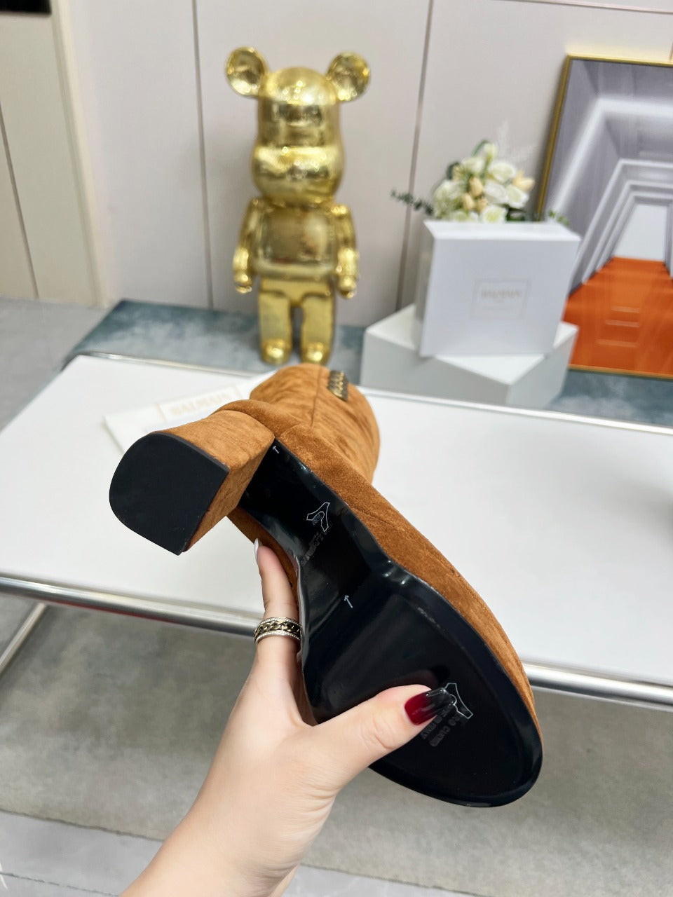BALMAIN 26S HIGH BOOTS 115 MM IN BROWN SUEDE
