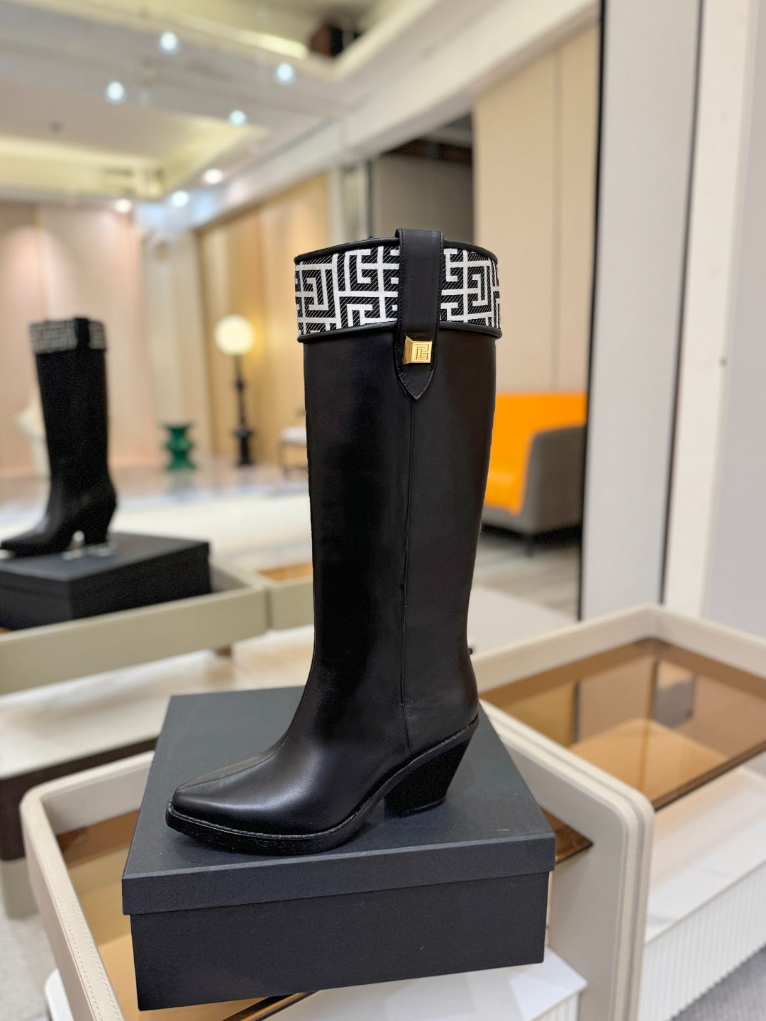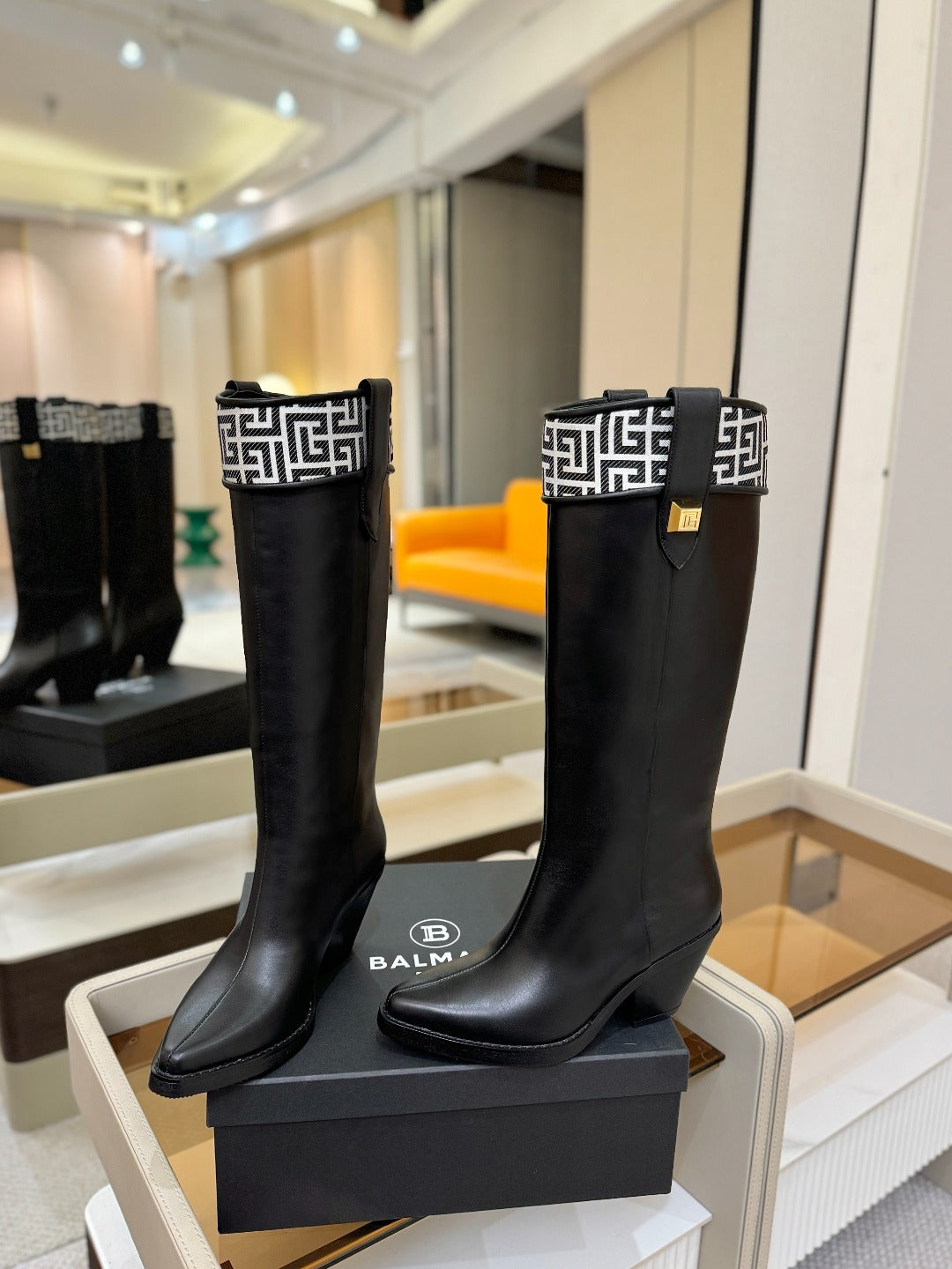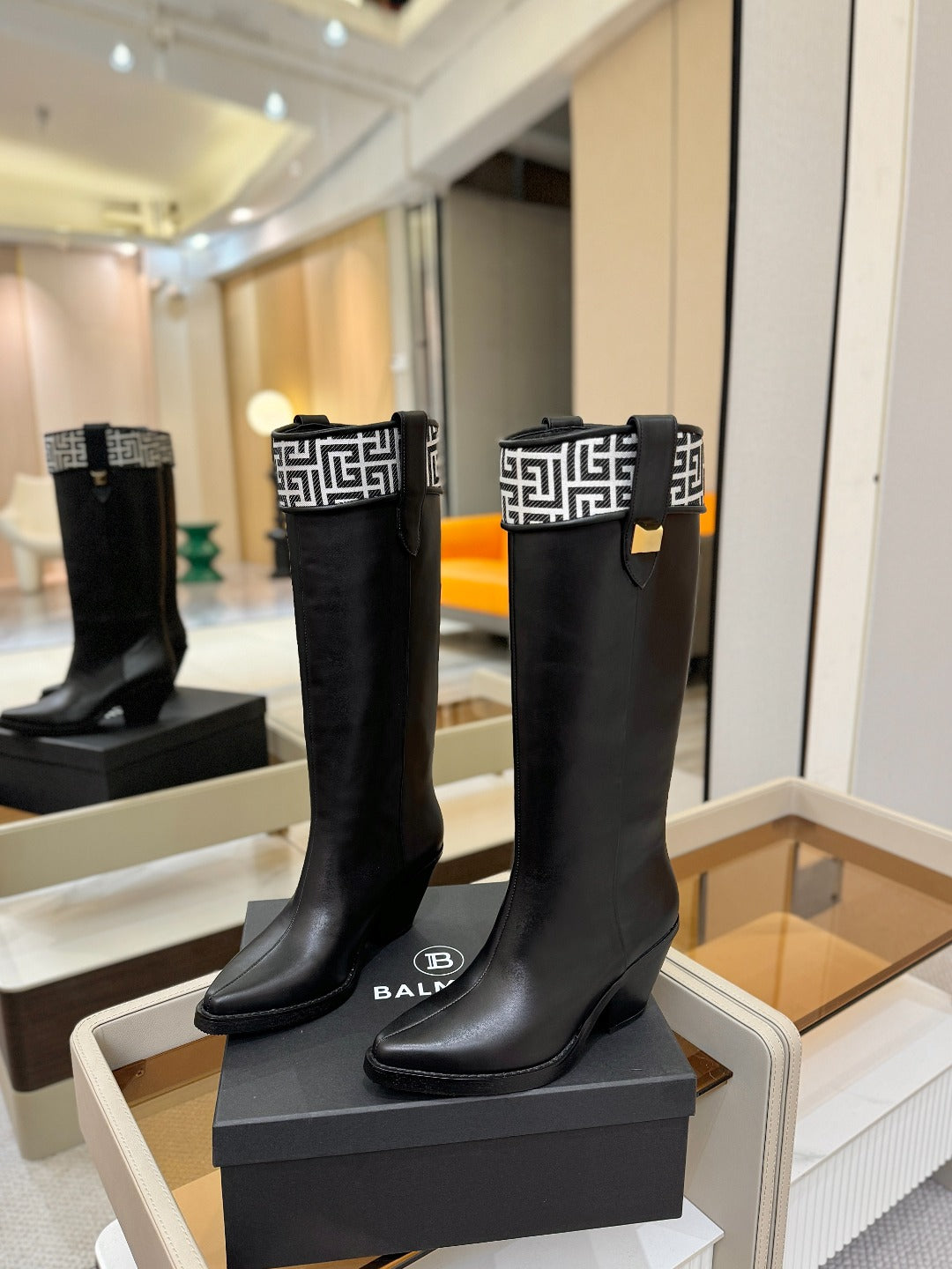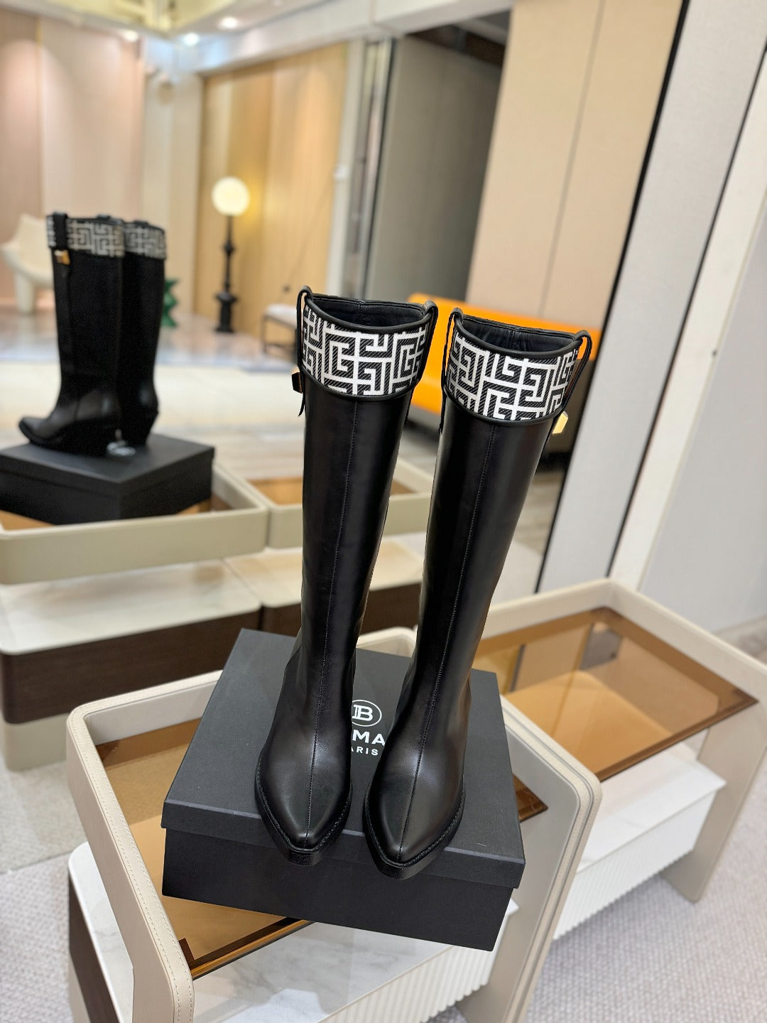 BALMAIN 26S HIGH BOOTS 65 MM IN BLACK CALFSKIN
