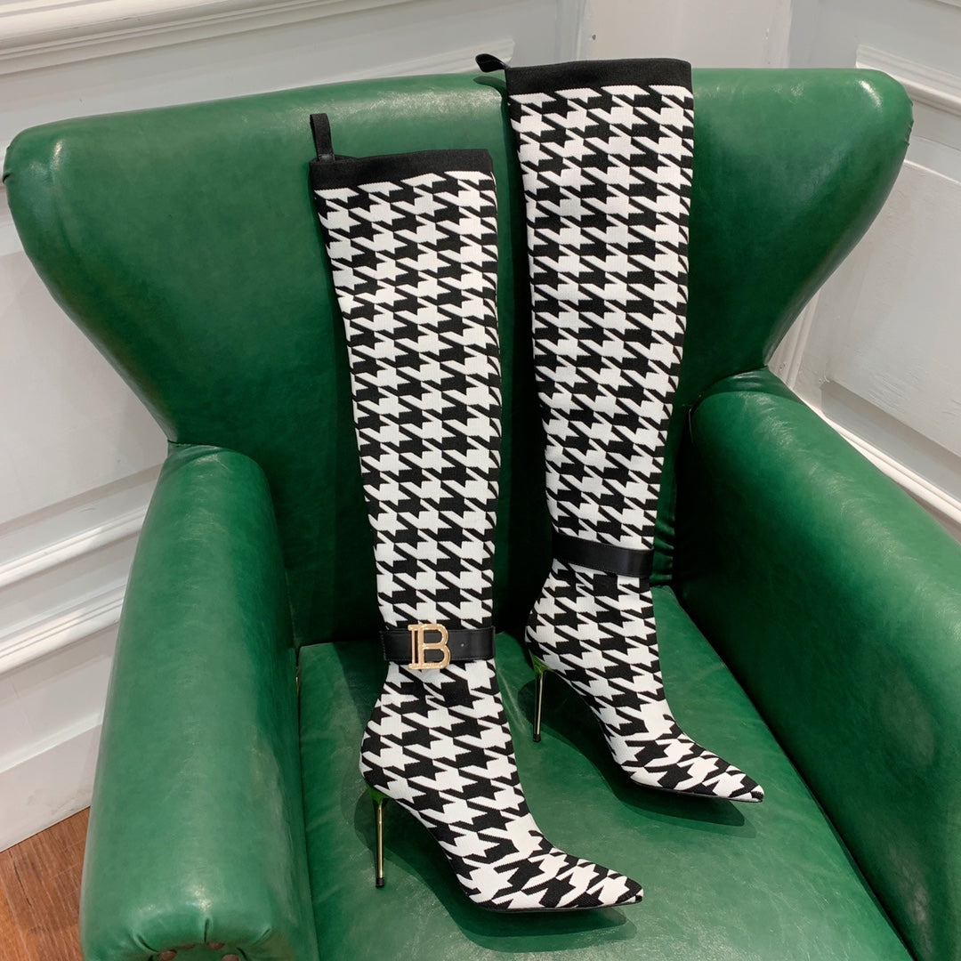 BALMAIN 26S HIGH-TOP BOOTS 105 MM IN BLACK AND WHITE FLYKNIT STYLE 3