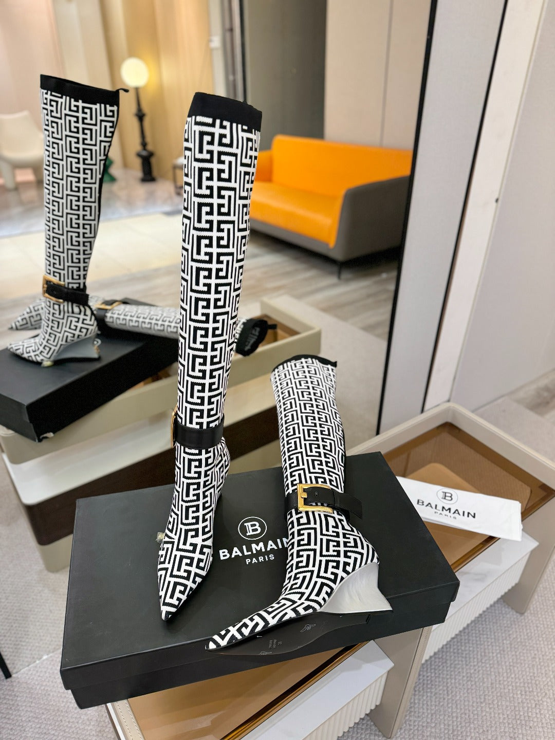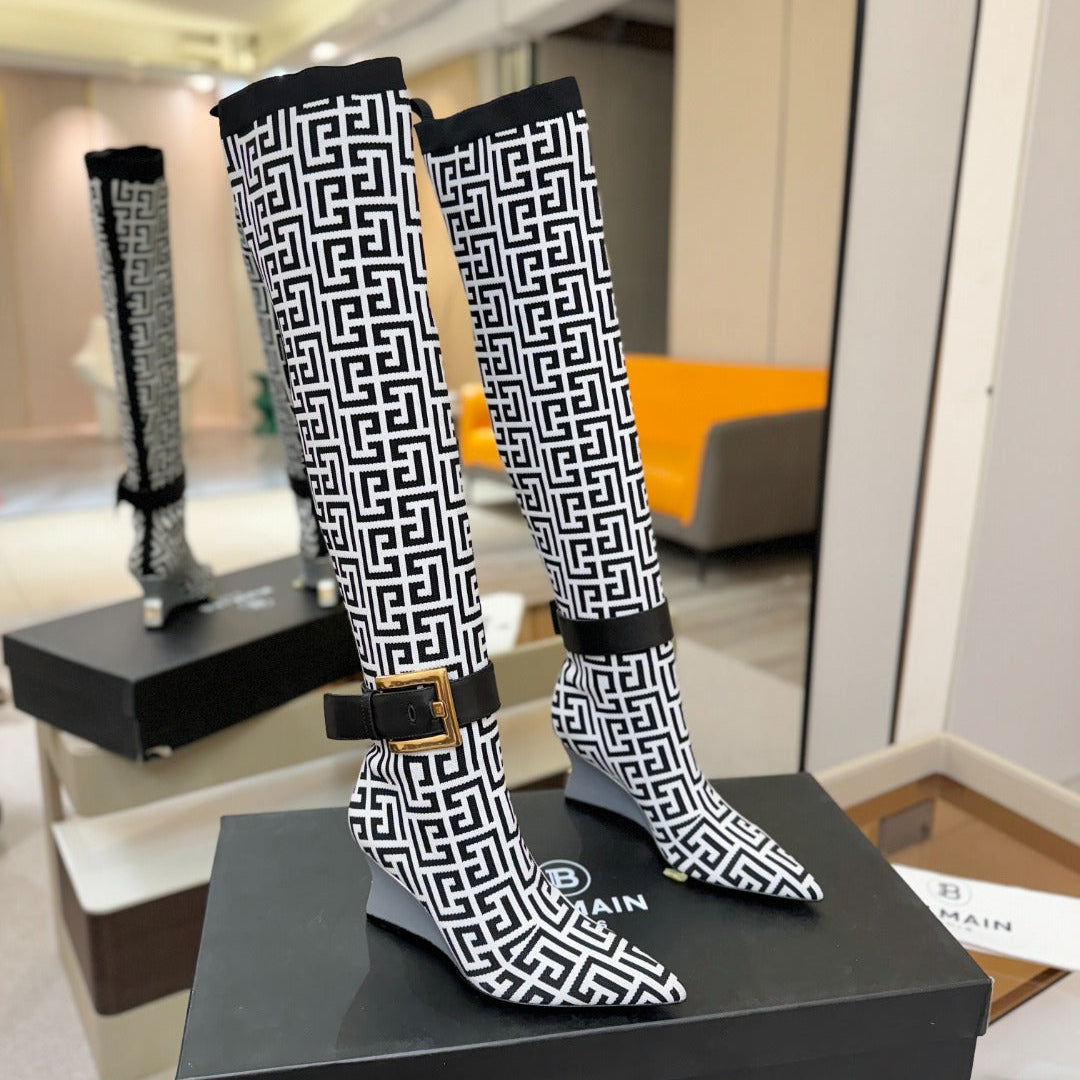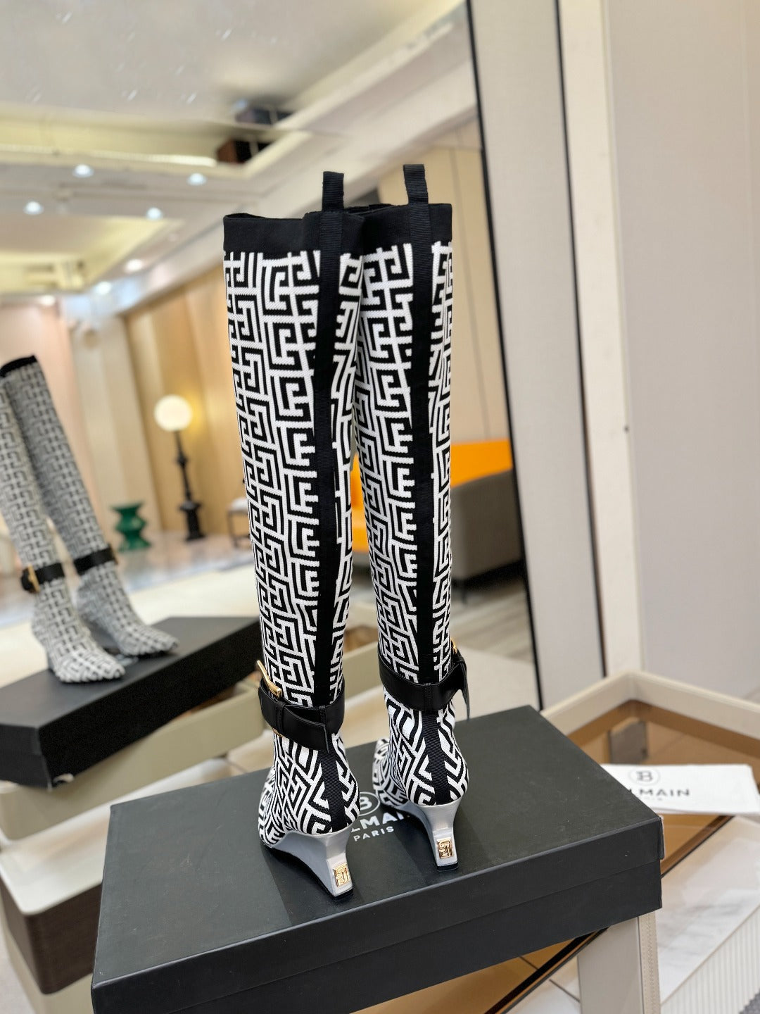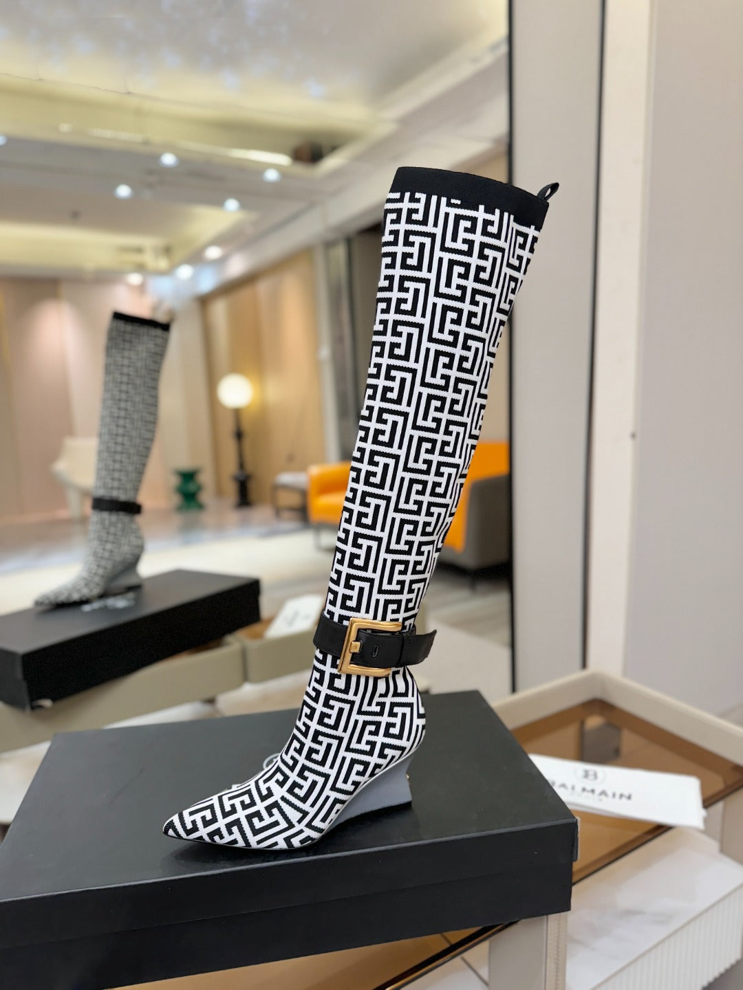 BALMAIN 26S HIGH-TOP BOOTS 75 MM IN BLACK AND WHITE FLYKNIT