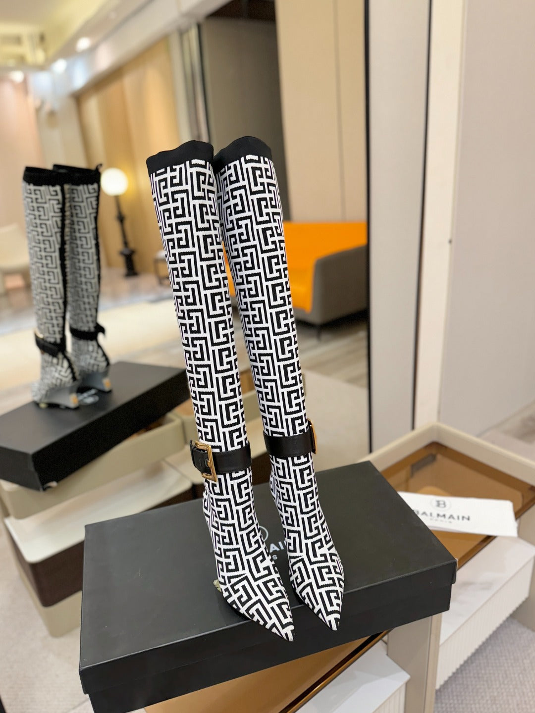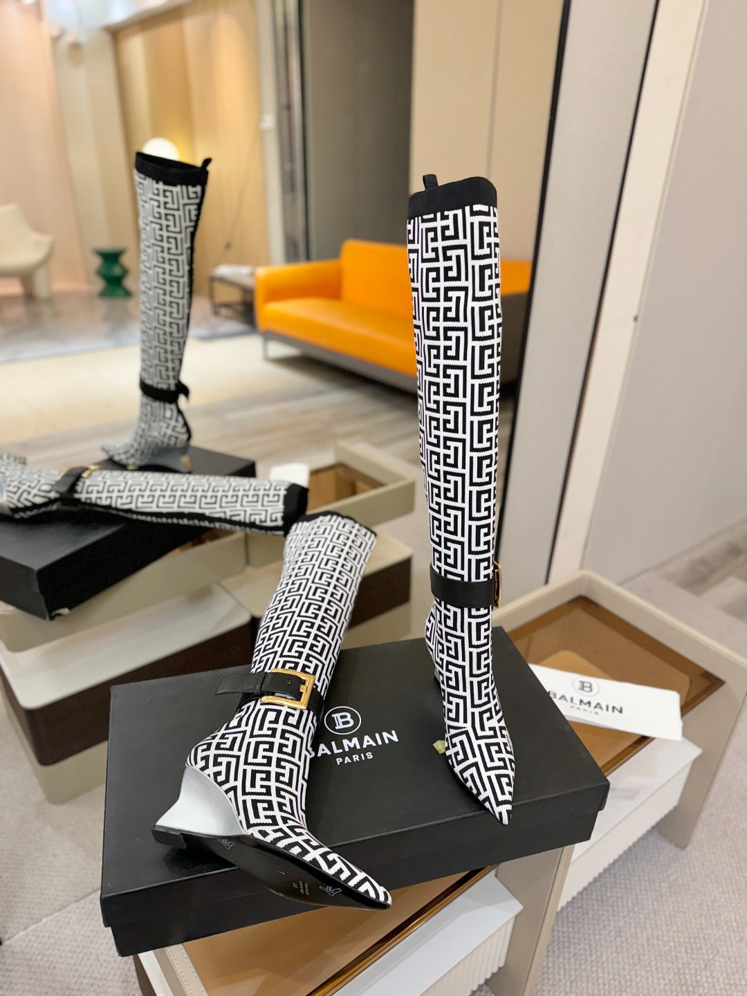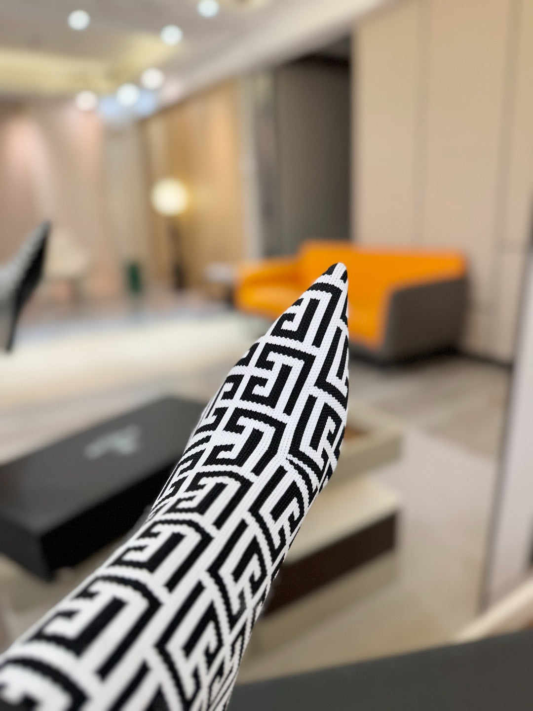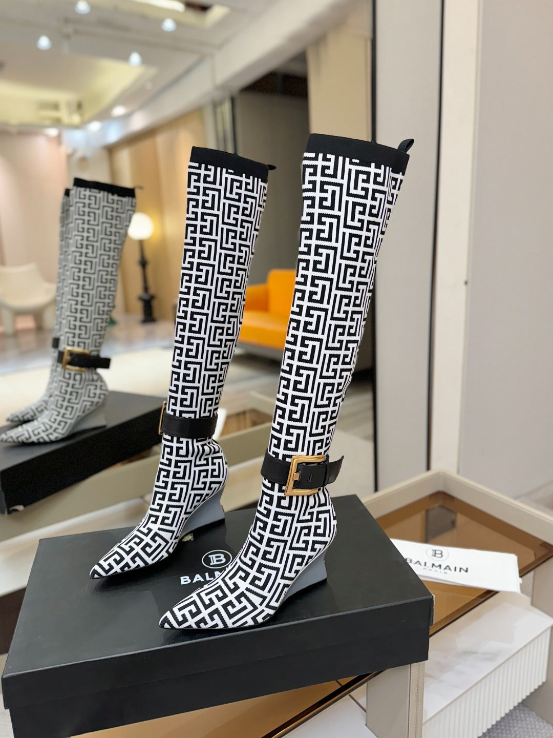 BALMAIN 26S HIGH-TOP BOOTS 75 MM IN BLACK AND WHITE FLYKNIT