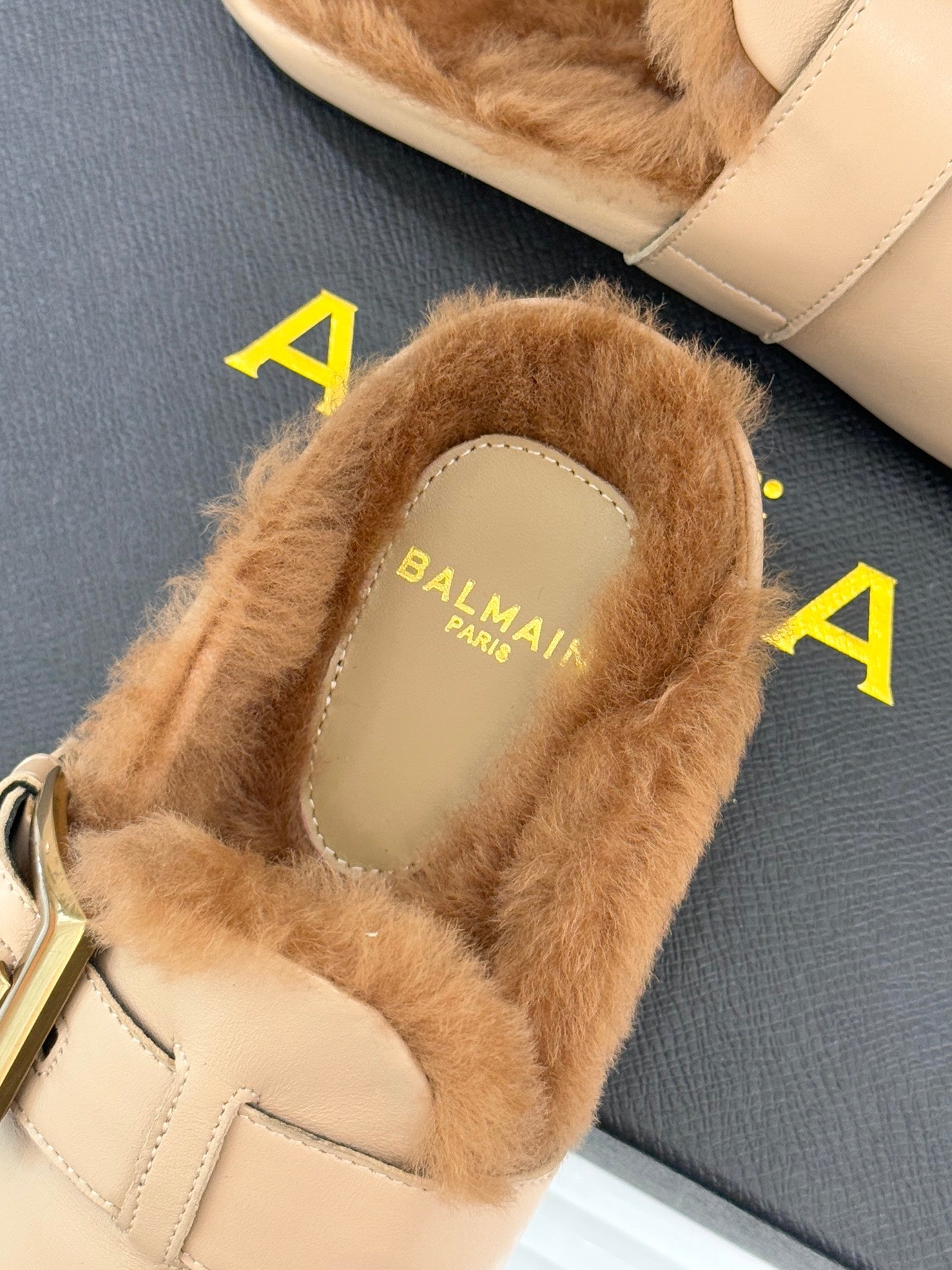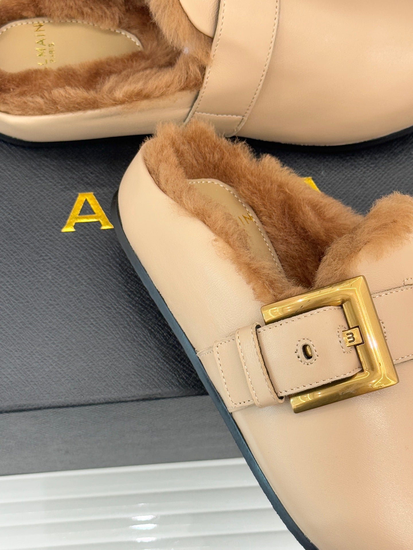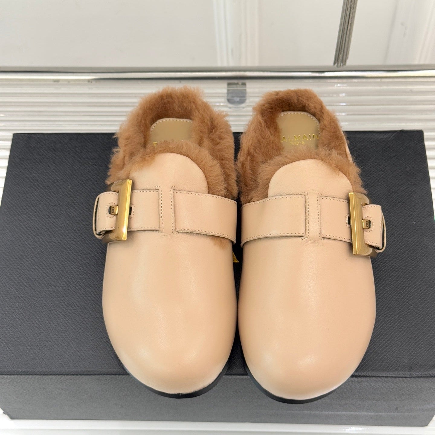 BALMAIN 26S ANTHEM MULES IN BEIGE CALFSKIN