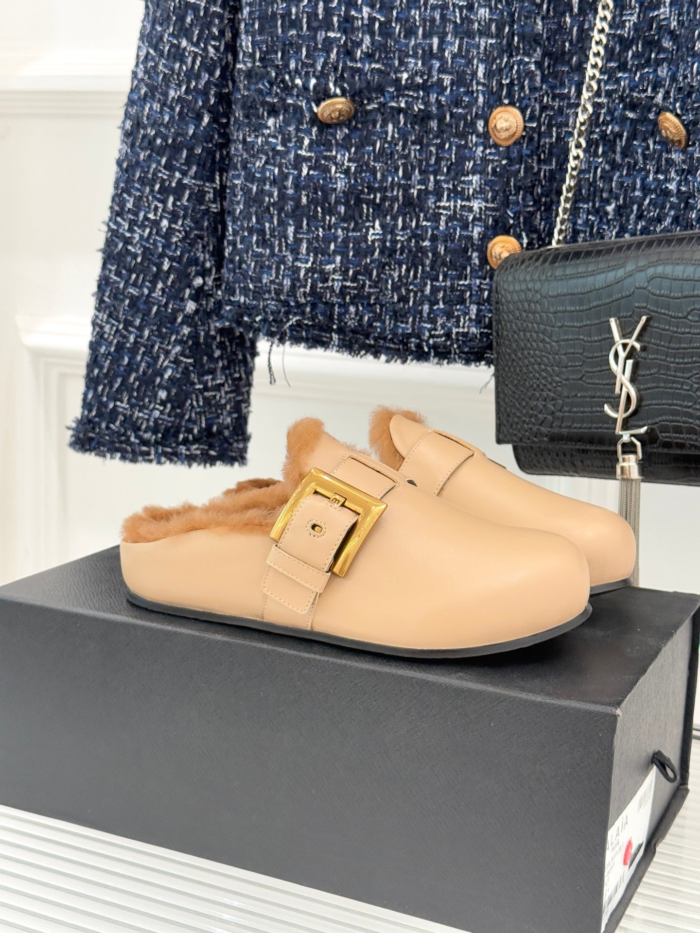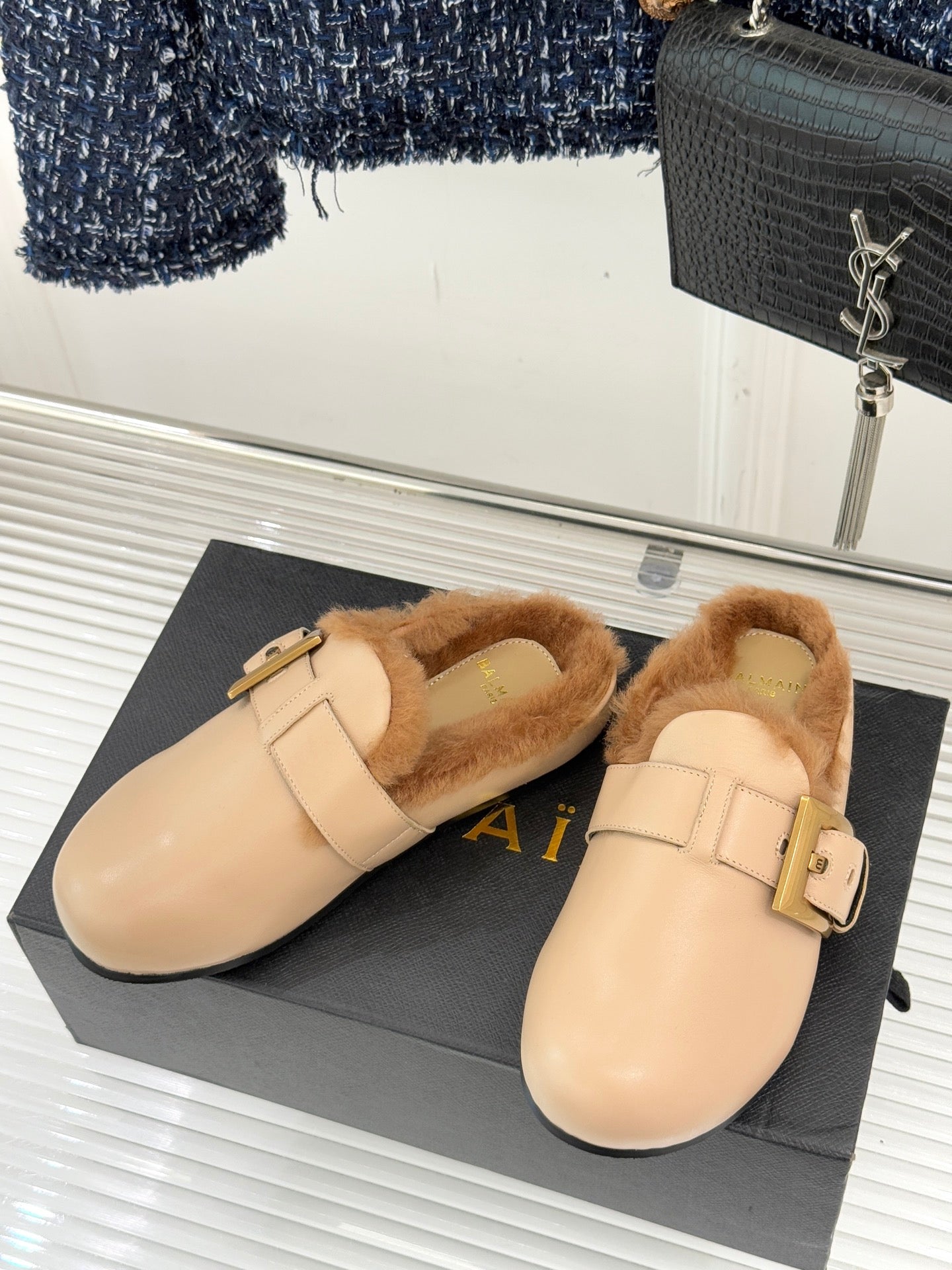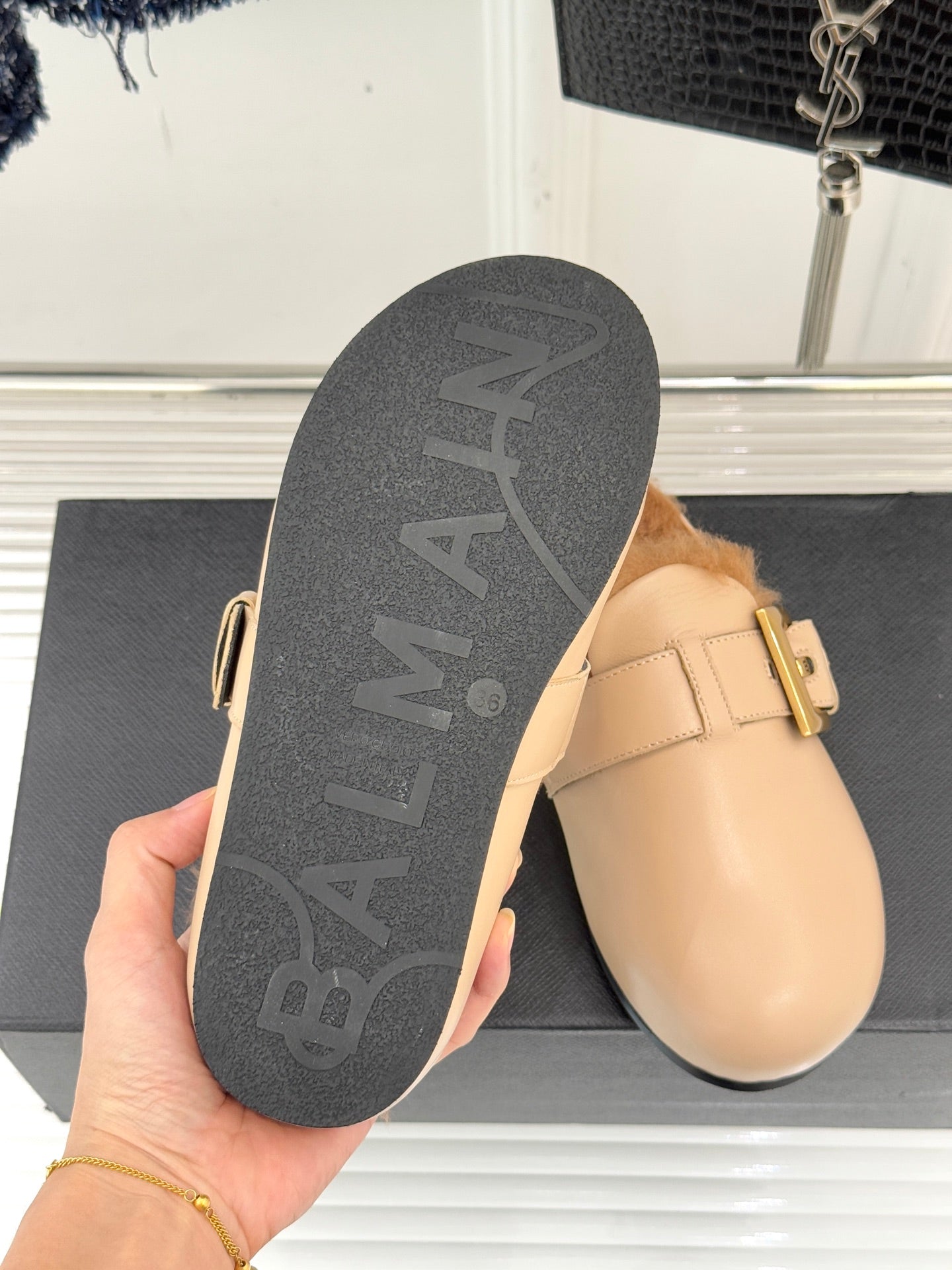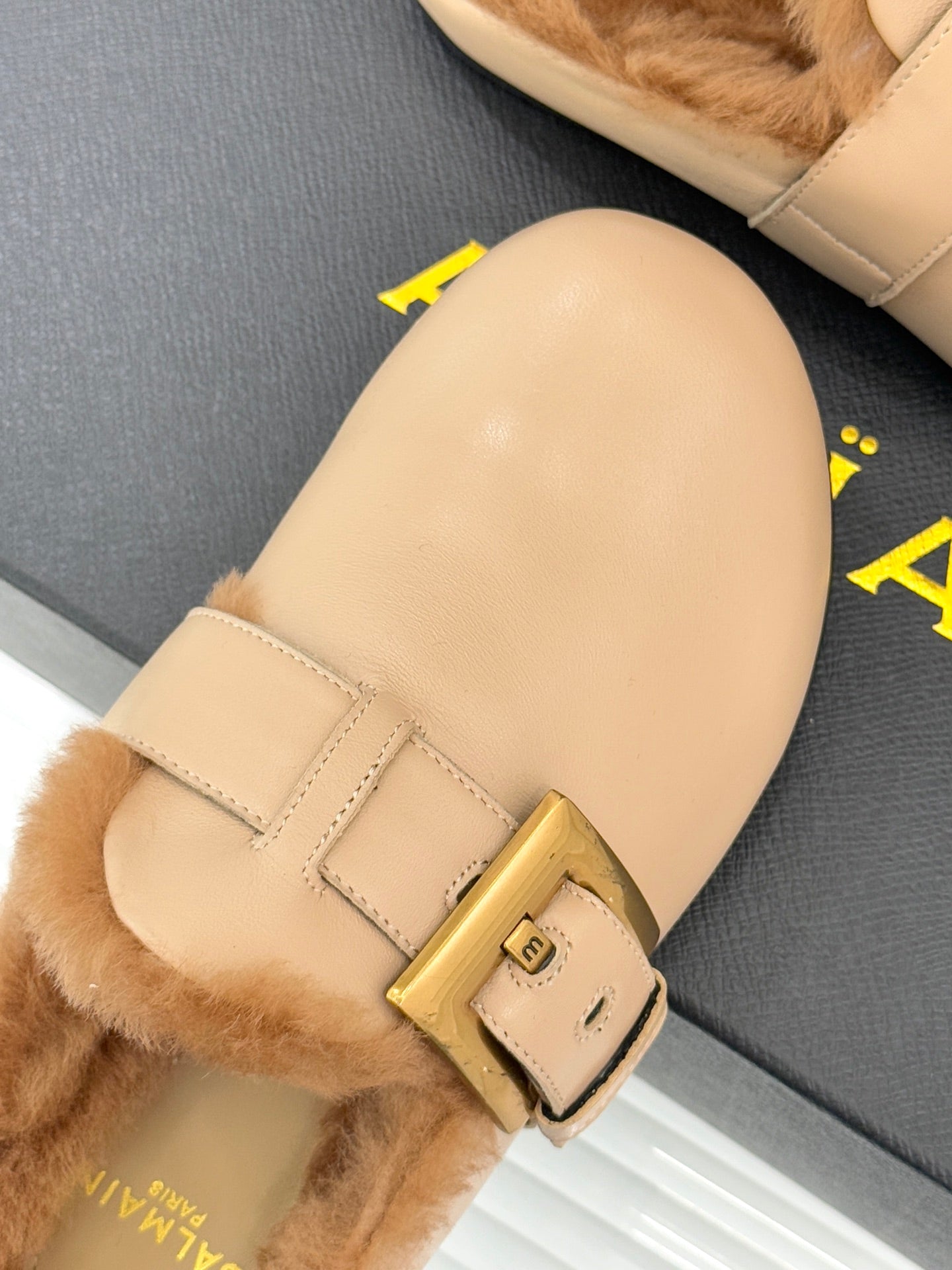 BALMAIN 26S ANTHEM MULES IN BEIGE CALFSKIN