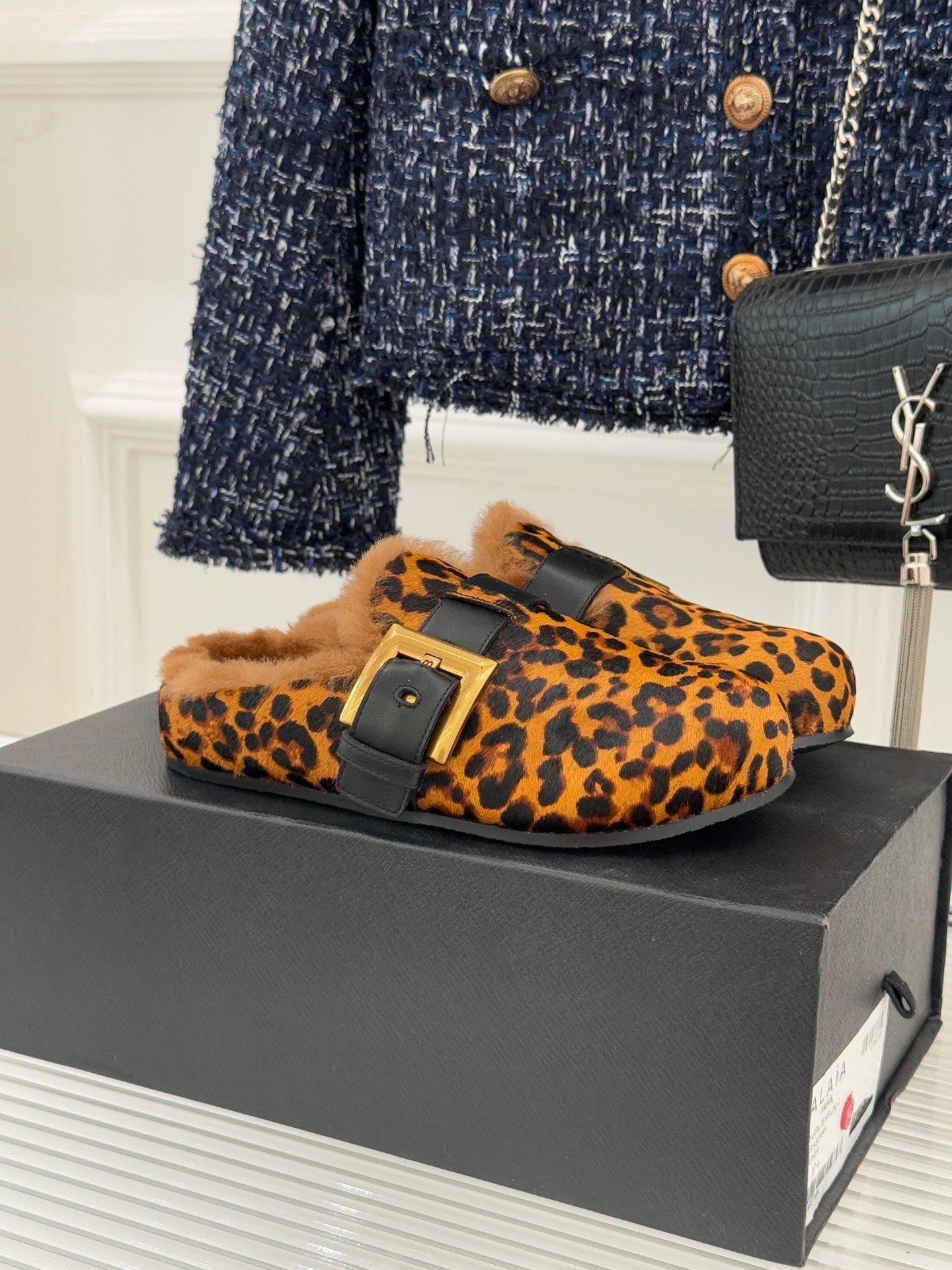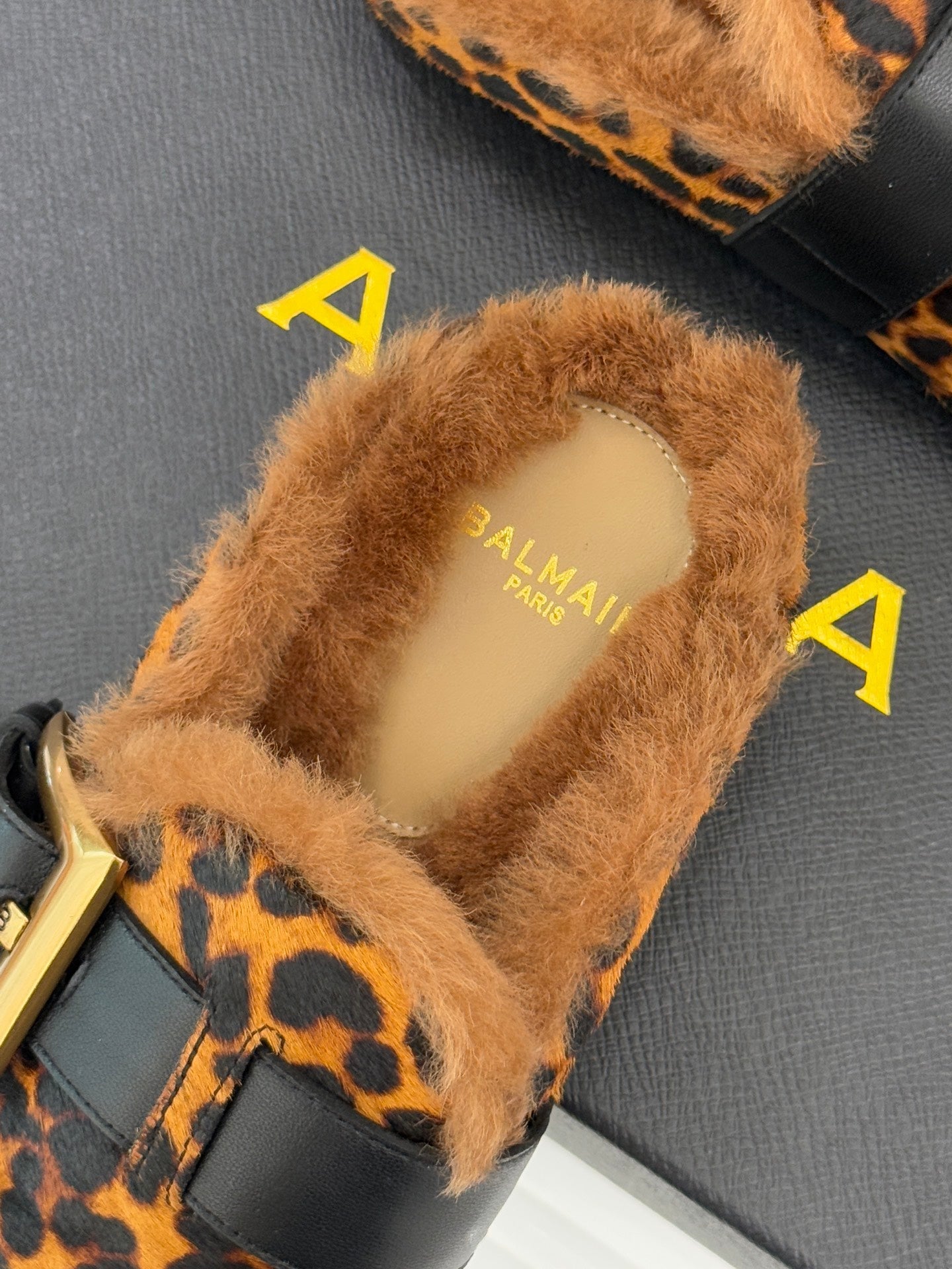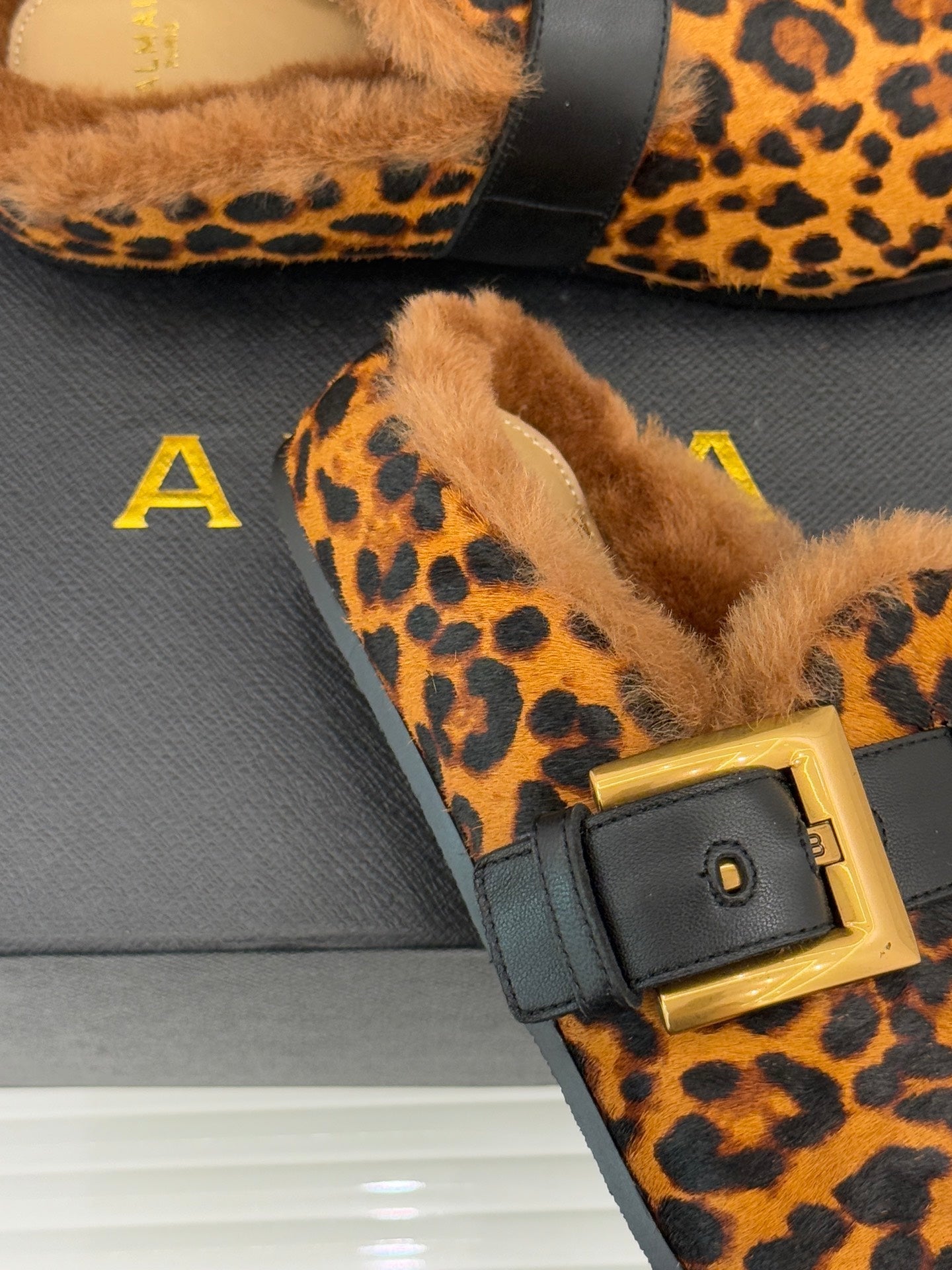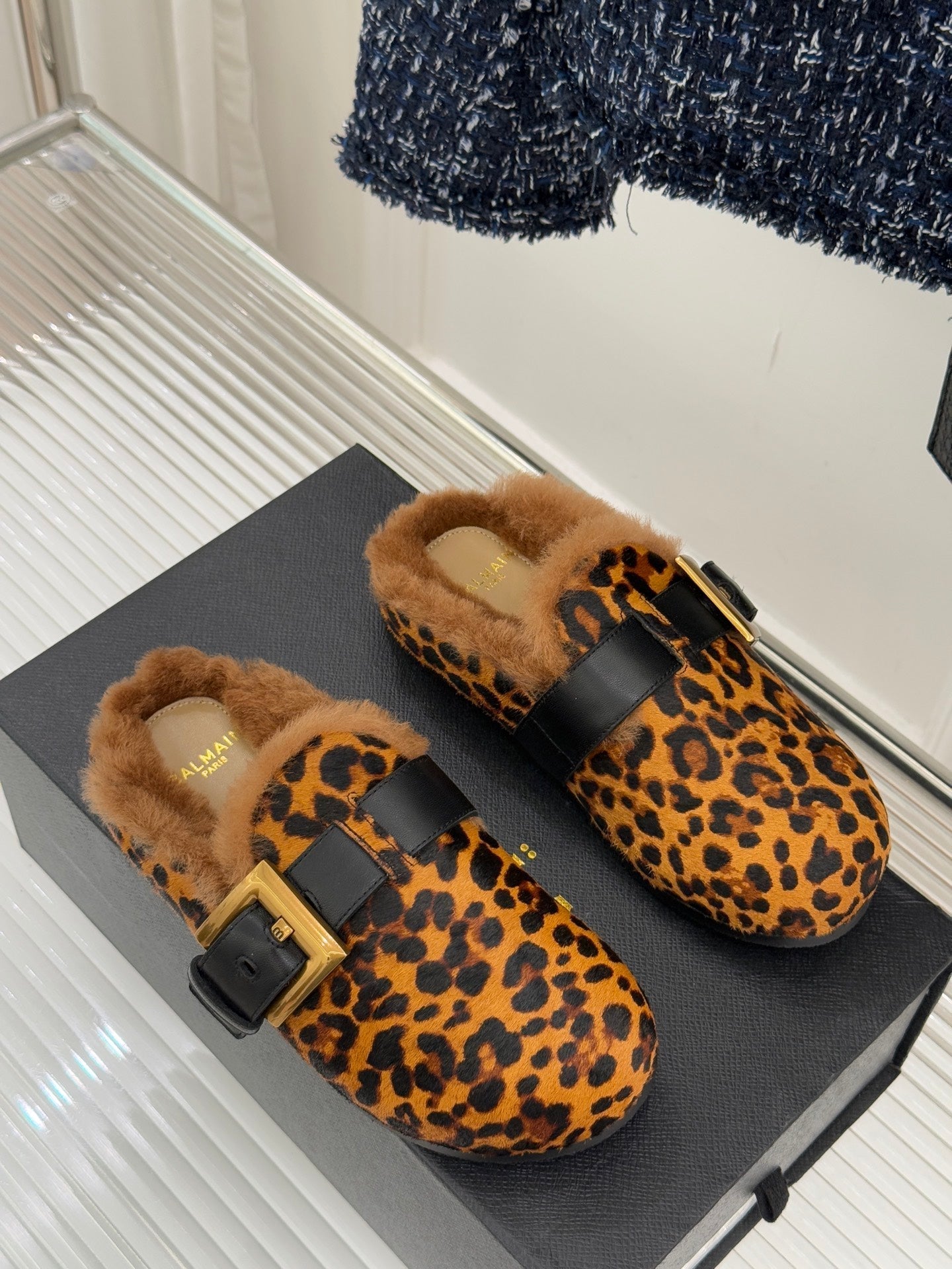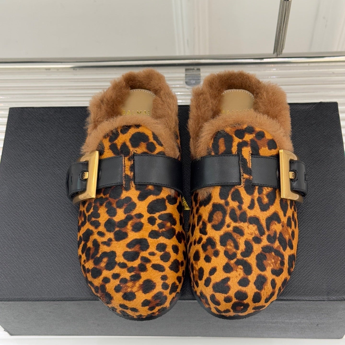 BALMAIN 26S ANTHEM MULES IN LEOPARD PRINT PONY HAIR