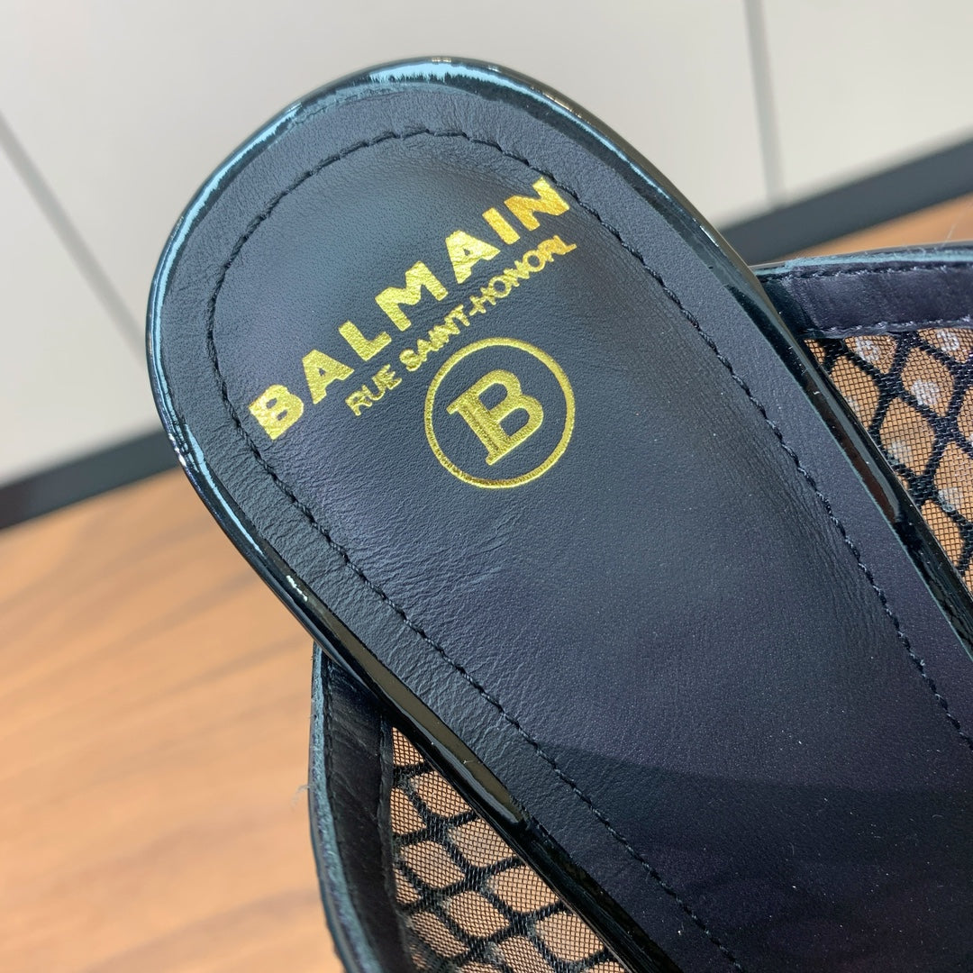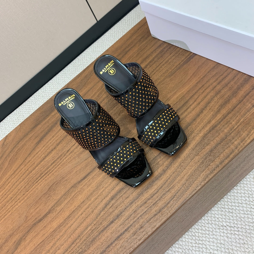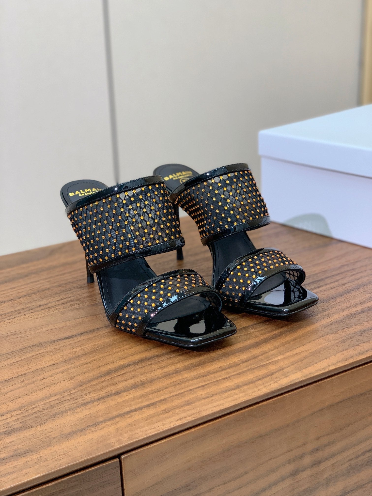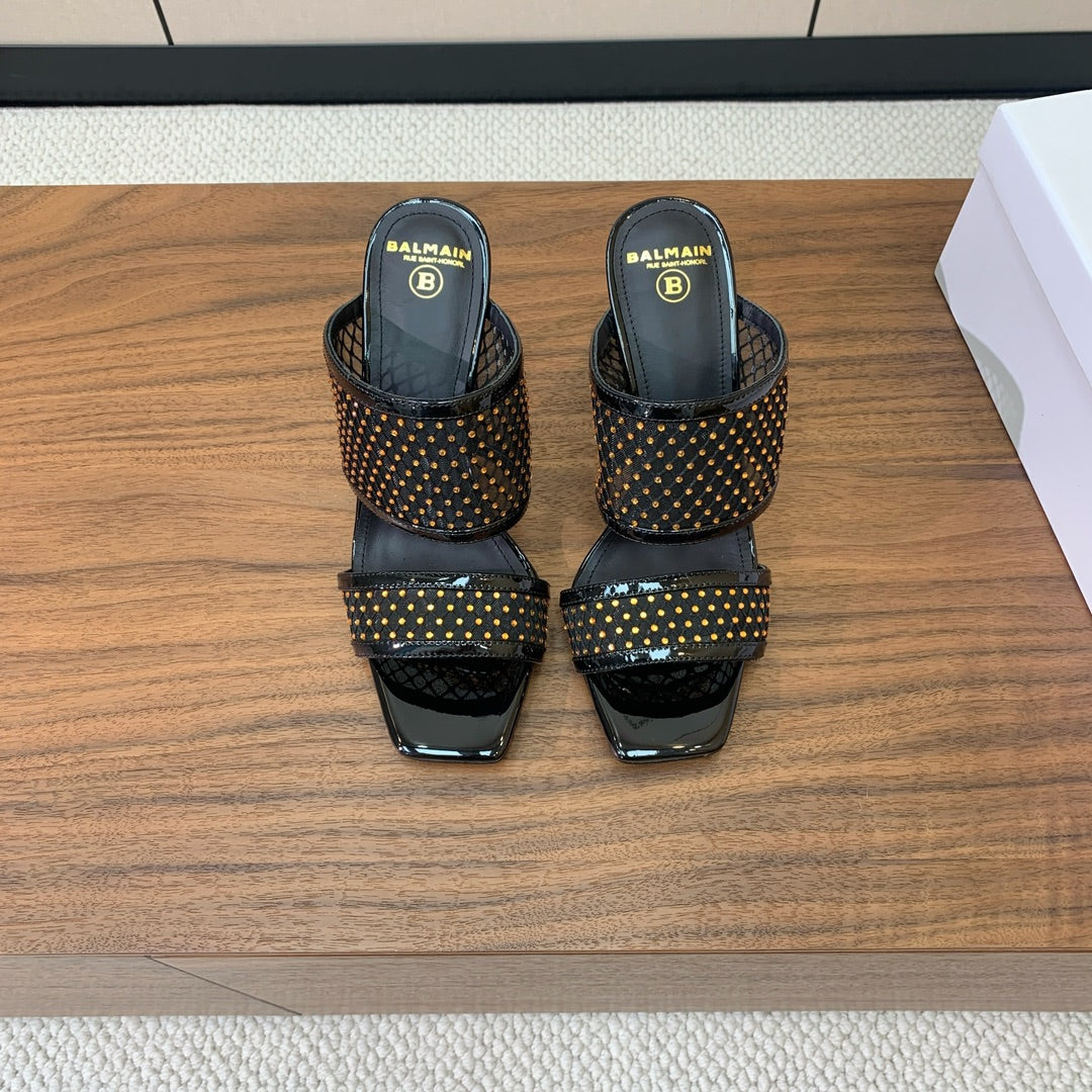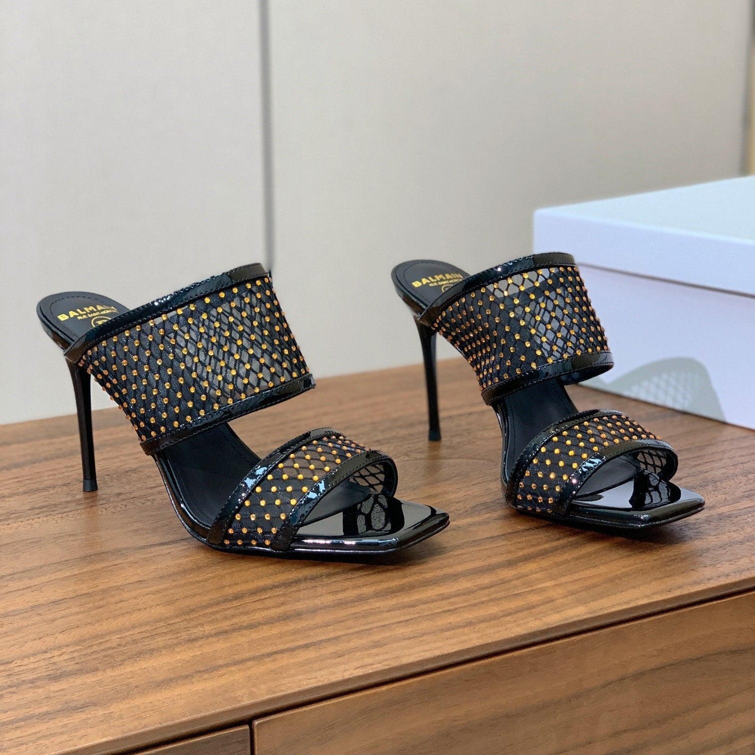 BALMAIN 26S HEEL SANDALS 95 MM IN BLACK MESH FABRIC WITH CRYSTAL EMBELLISHMENT STYLE 1