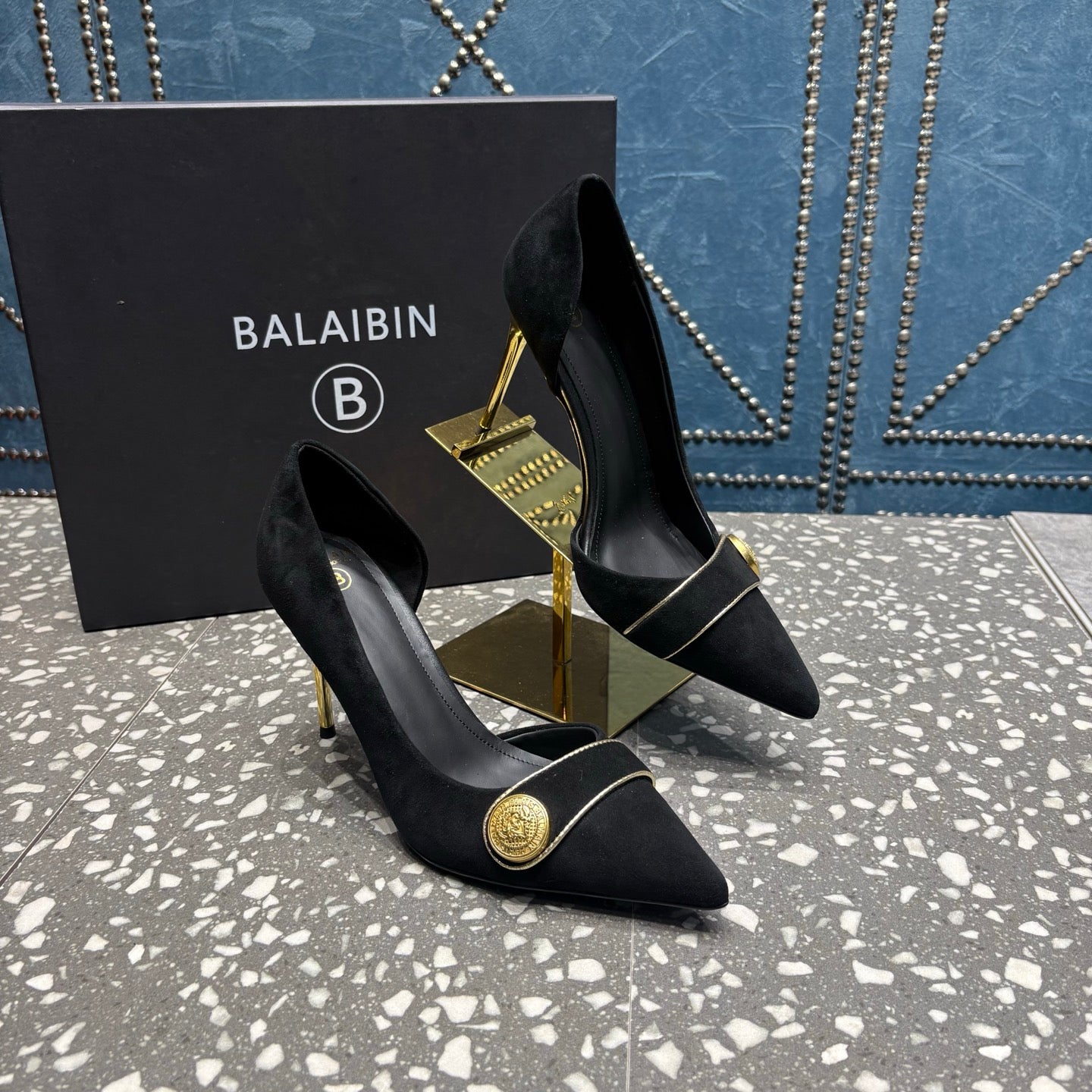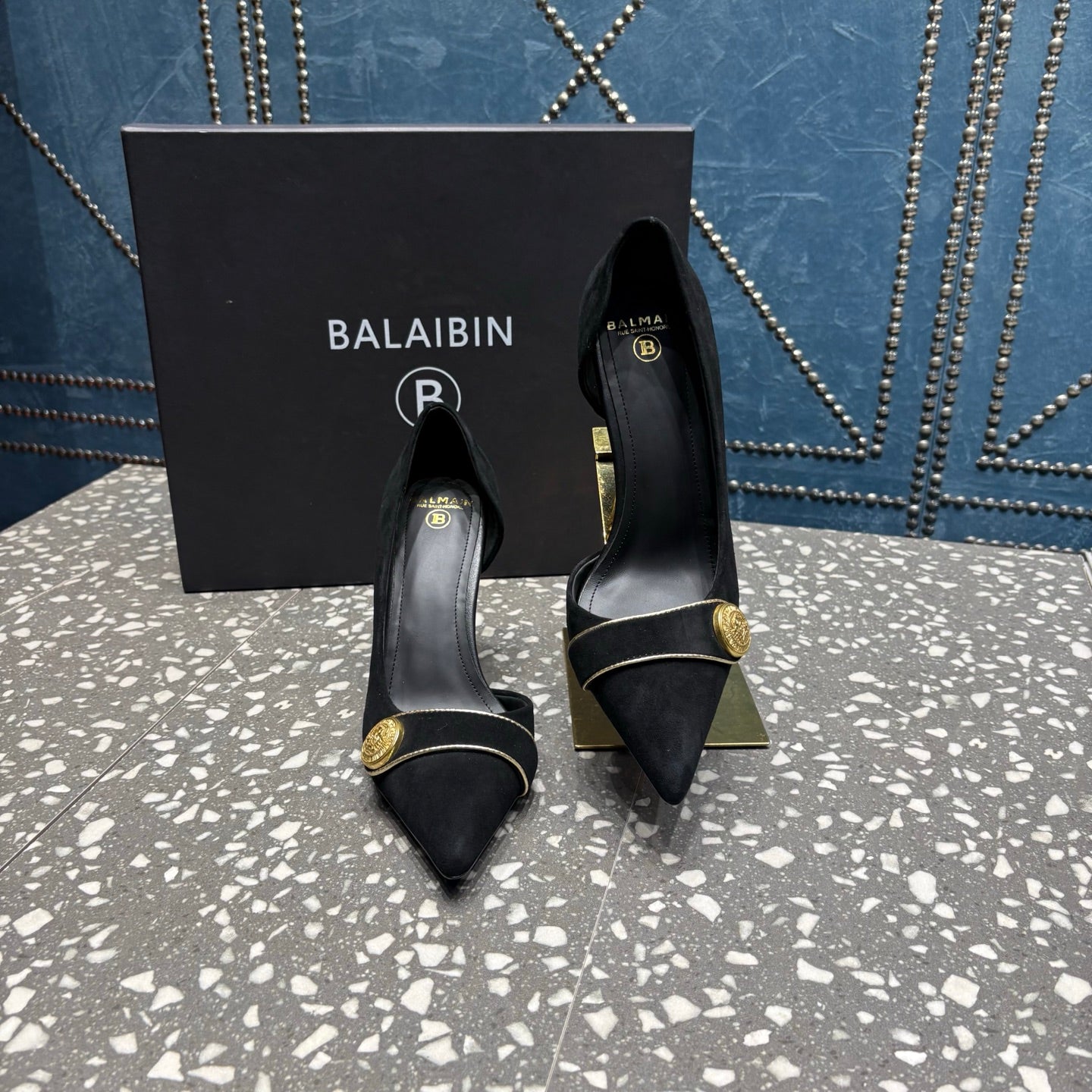 BALMAIN 26S HIGH-HEEL SHOES 95 MM IN BLACK SUEDE
