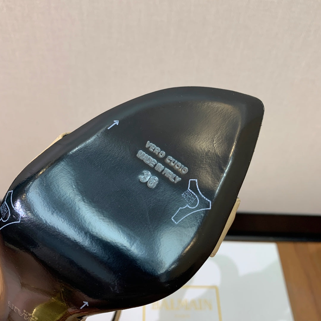 BALMAIN 26S METAL-HEEL SANDALS 105 MM IN DARK BEIGE CALFSKIN