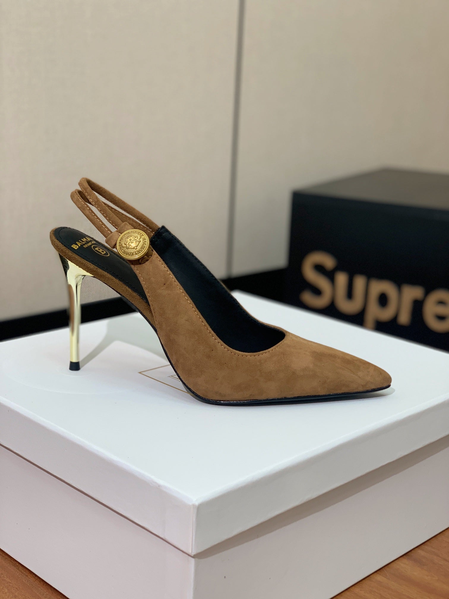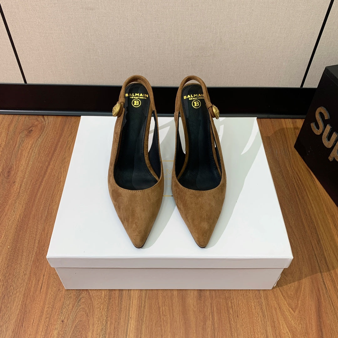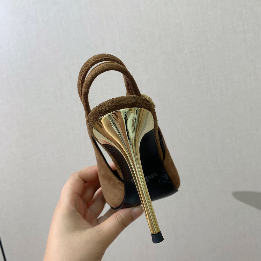 BALMAIN 26S SLINGBACK 95 MM IN BROWN SUEDE