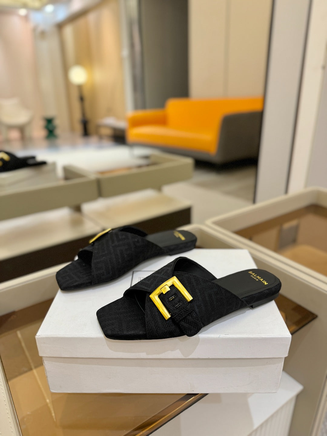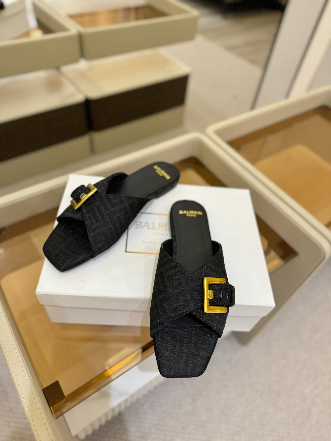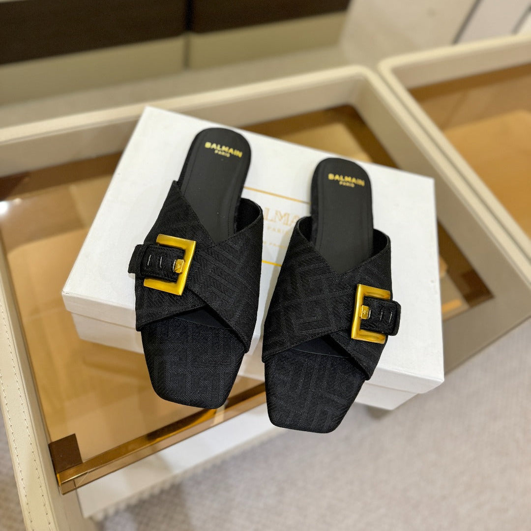 BALMAIN 26S SANDALS IN BLACK CANVAS
