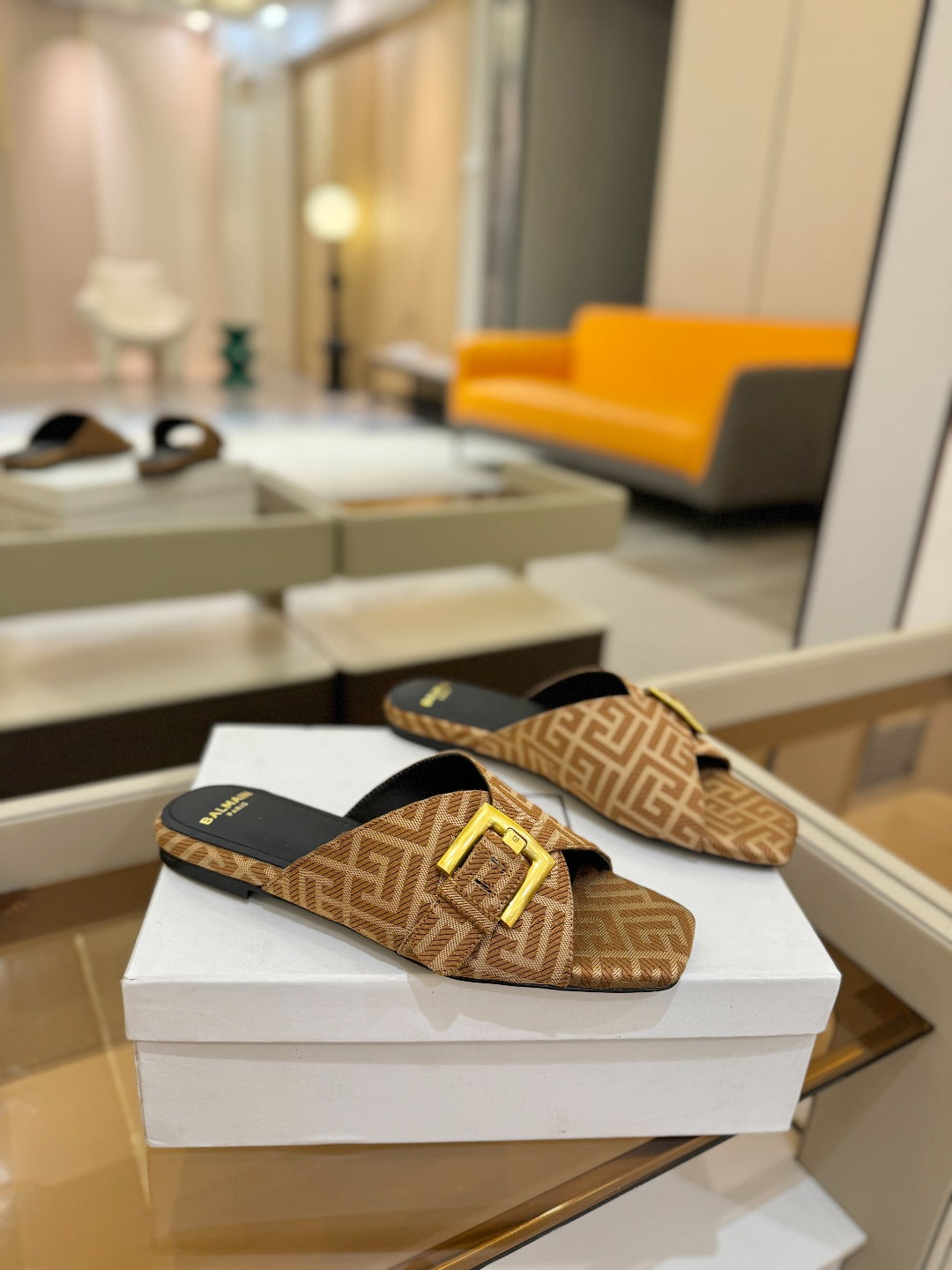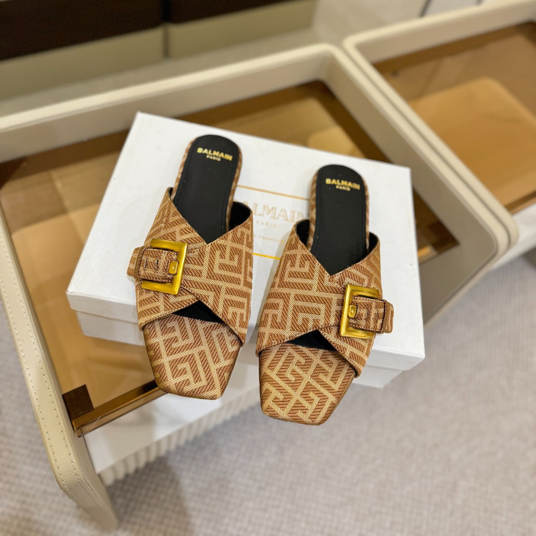 BALMAIN 26S SANDALS IN BROWN CANVAS